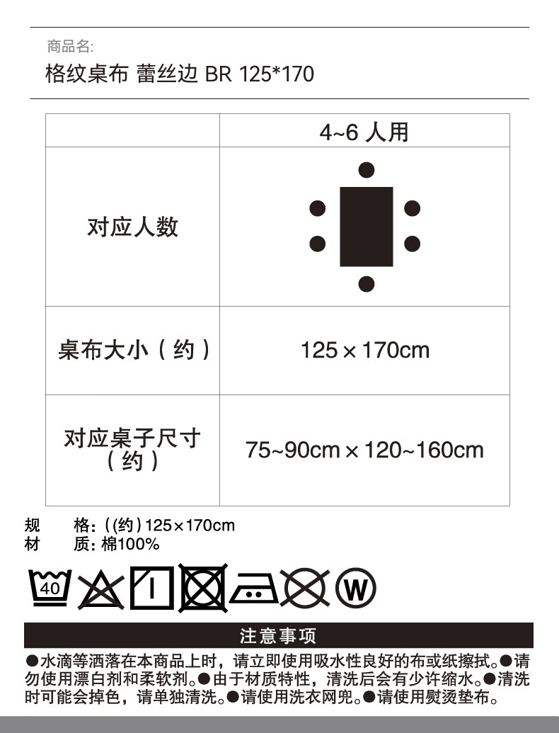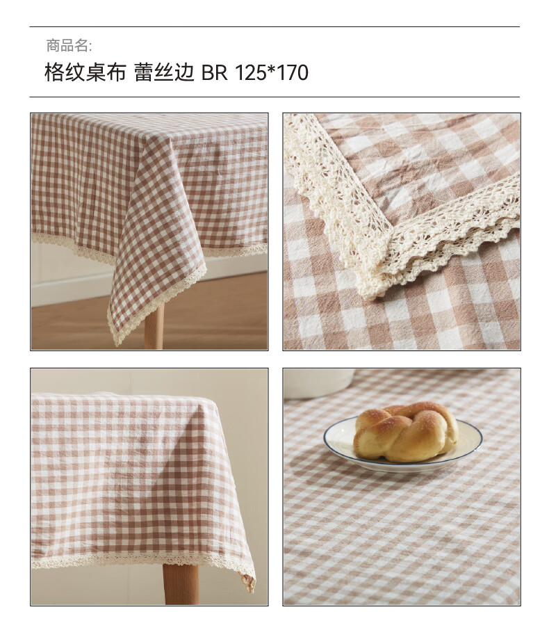 NITORI宜得利家居 格纹桌布 蕾丝边 BR 125*170
