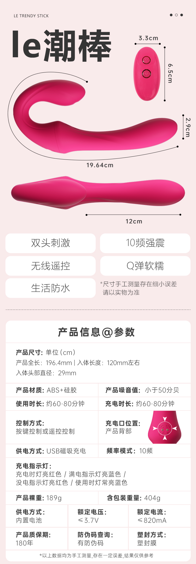 【女用器具】谜姬 le潮双头棒 无线遥控 双头震动 les 女同 多种玩法