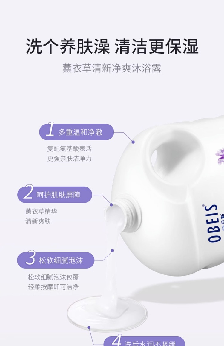 欧贝斯薰衣草清新净爽沐浴露1L