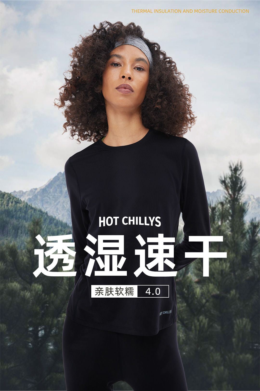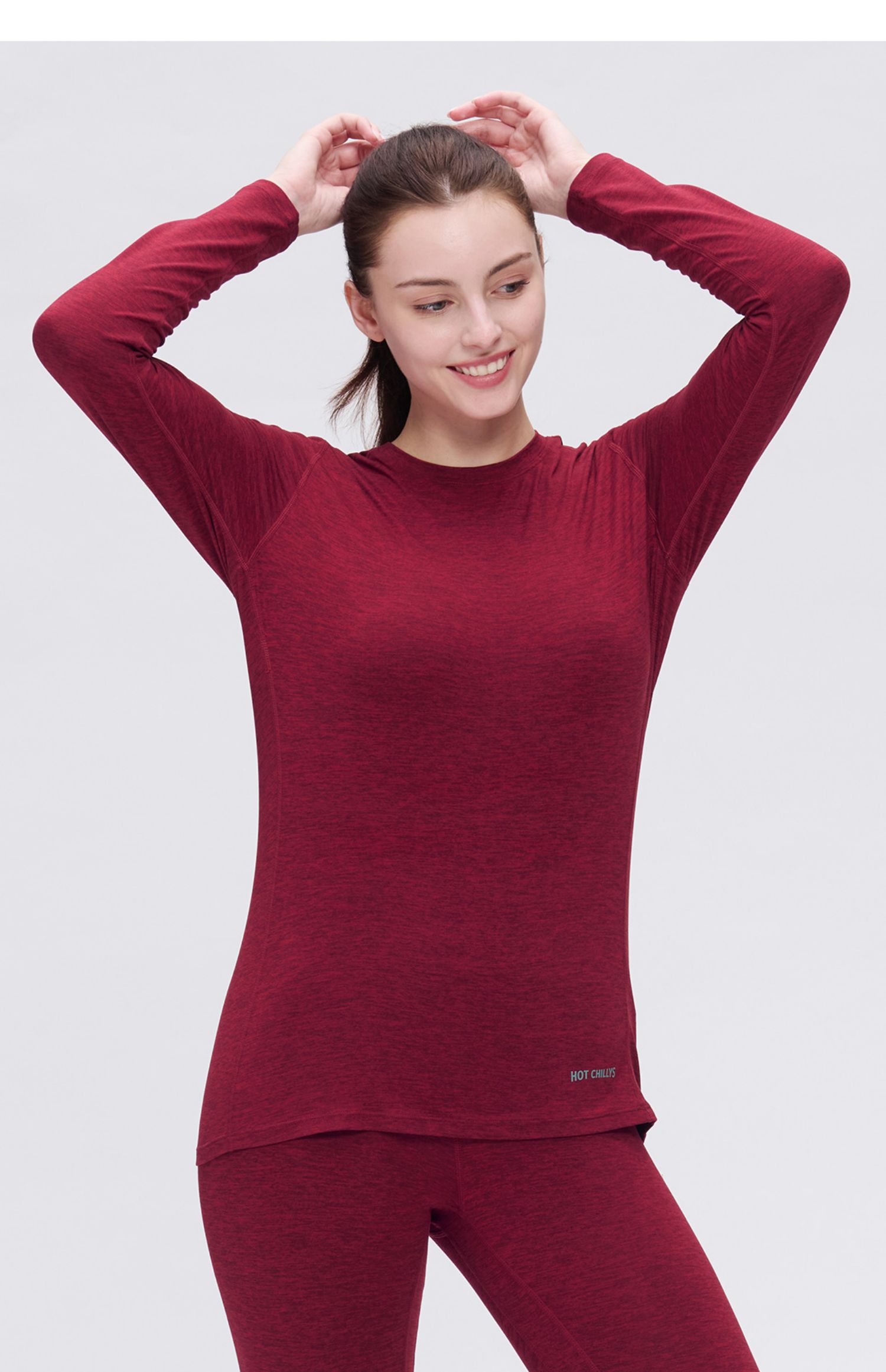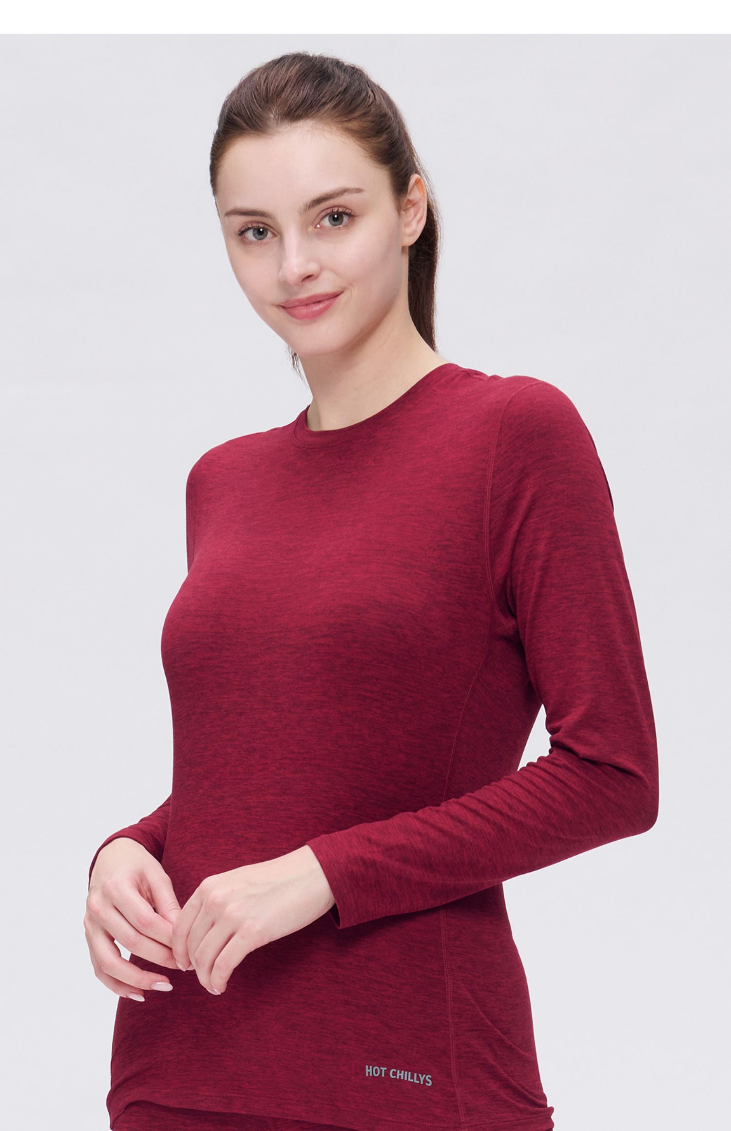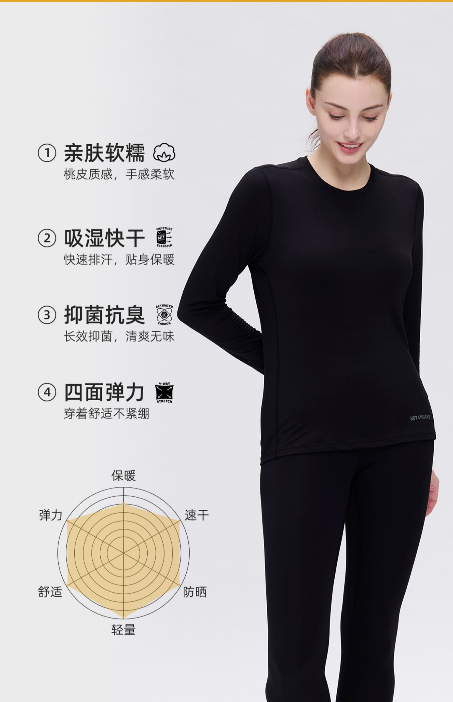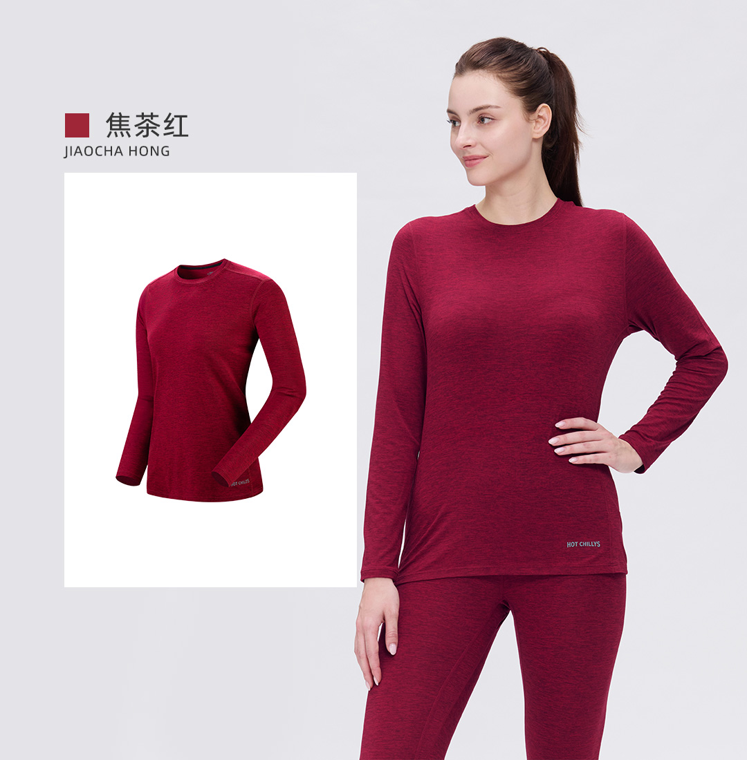 Hotchillys热椒桃皮女户外功能内衣训练运动圆领保暖速干上衣5616