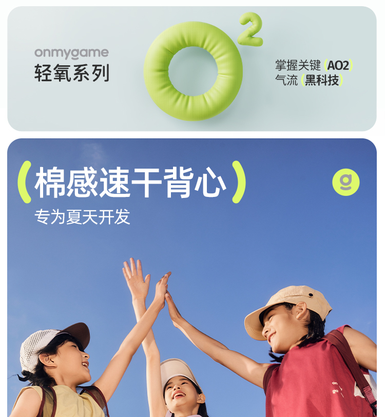 onmygame【棉感速干】男童运动背心女童无袖凉感t恤2025夏季新款
