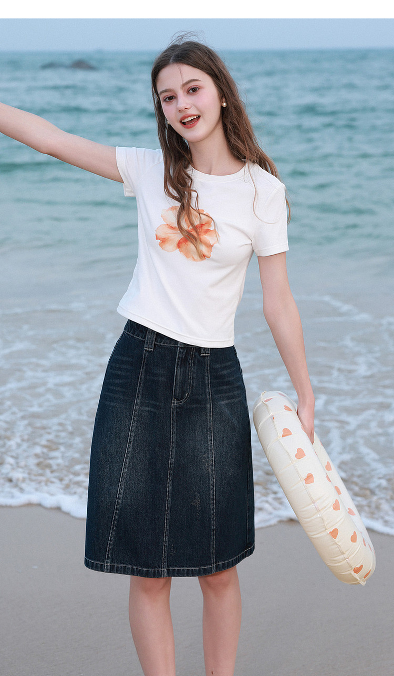 三彩独醒2026夏季新款复古做旧牛仔裙半身裙A字裙收腰简约F