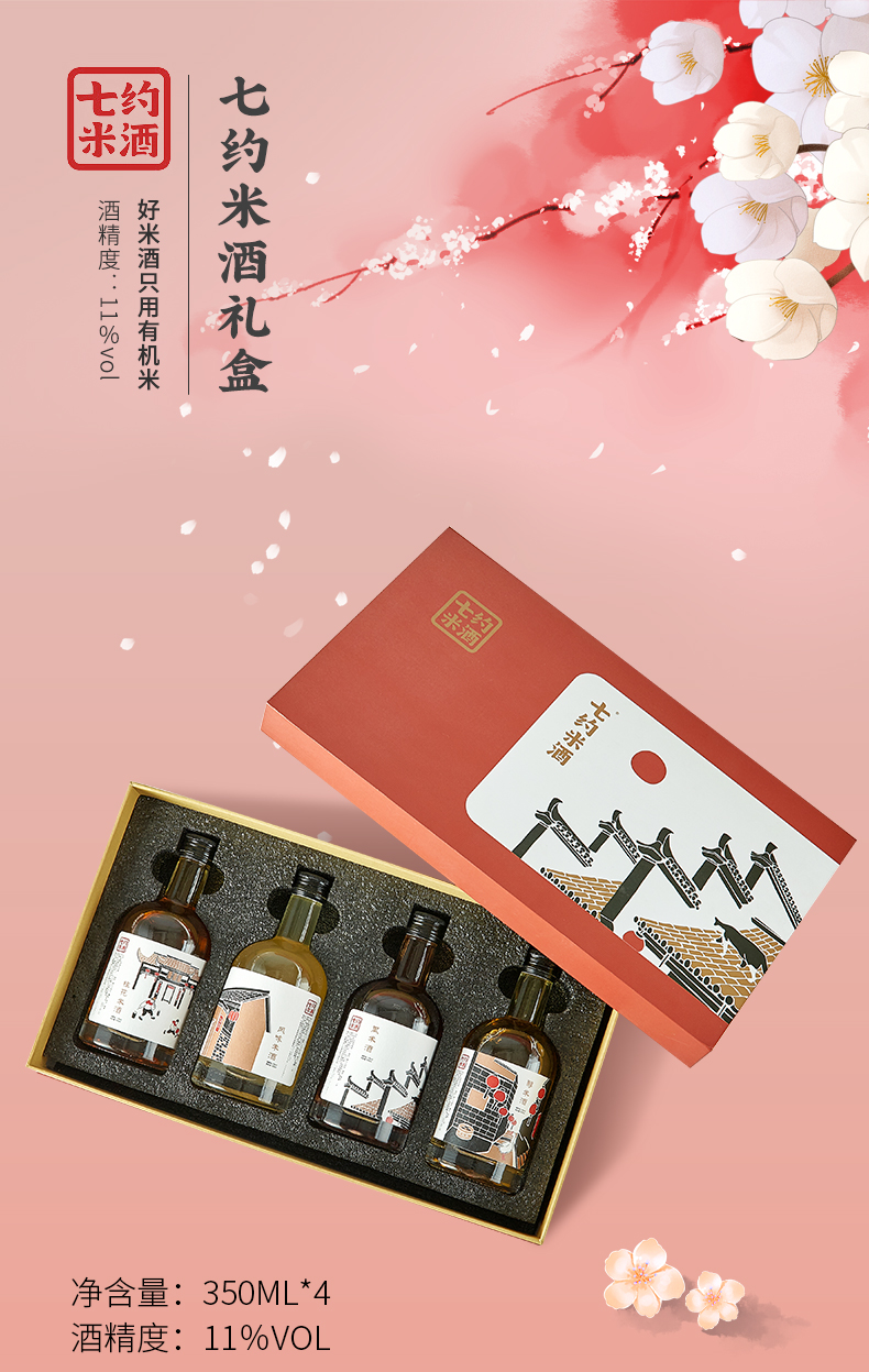 七约红色米酒礼盒 11度精酿米酒 350ml*4