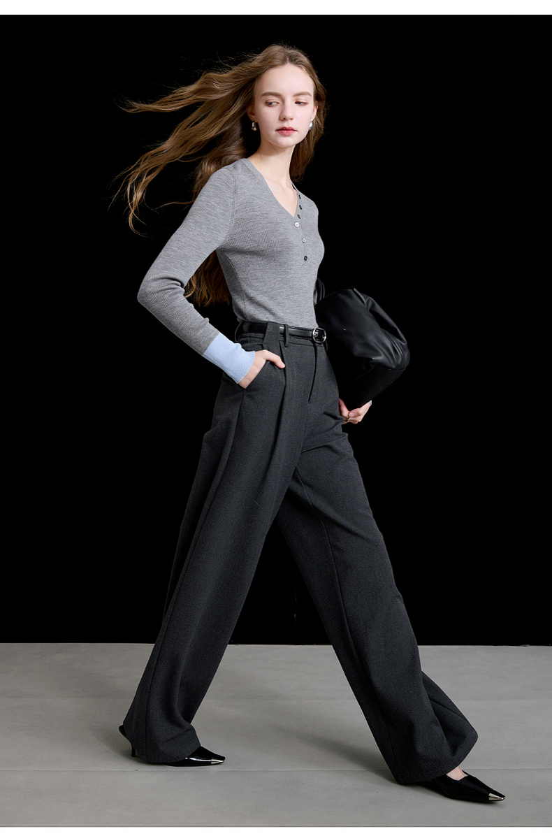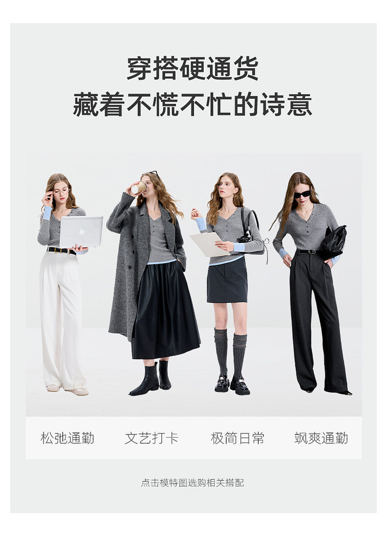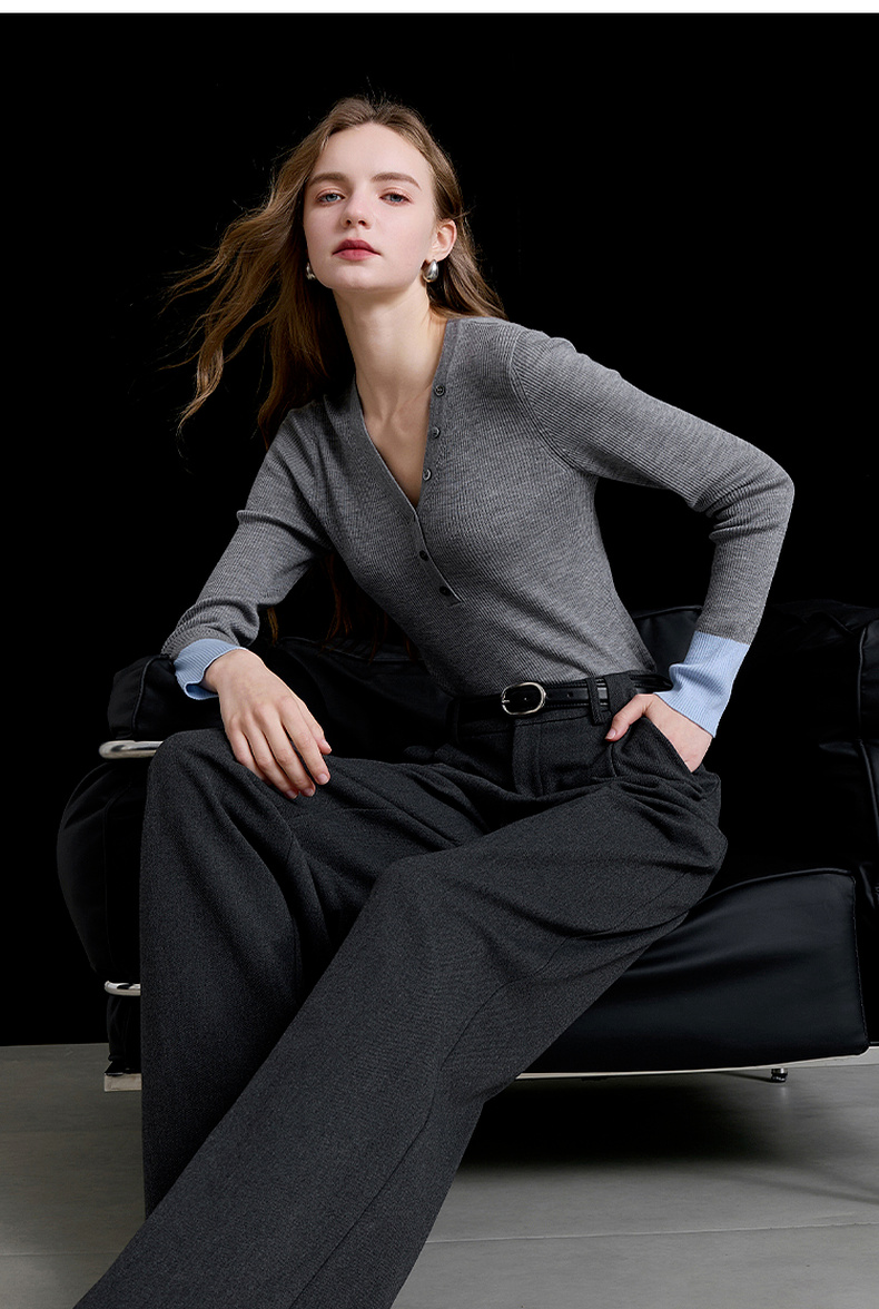 【100绵羊毛】三彩2025冬季新款修身针织衫V领打底衫简约套头M