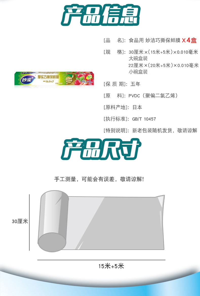 【多送5米】妙洁巧撕保鲜膜盒装大碗小碗组合装