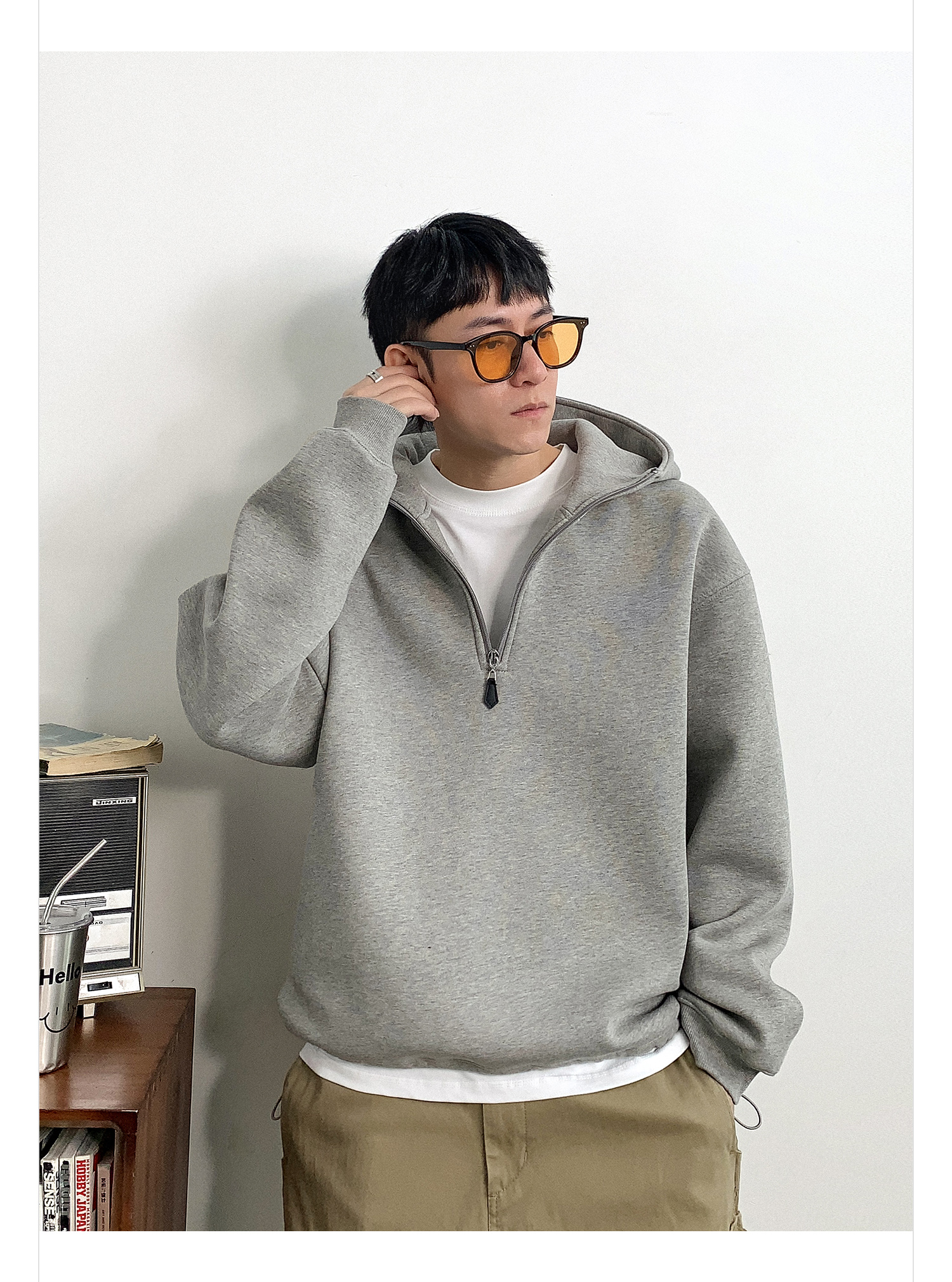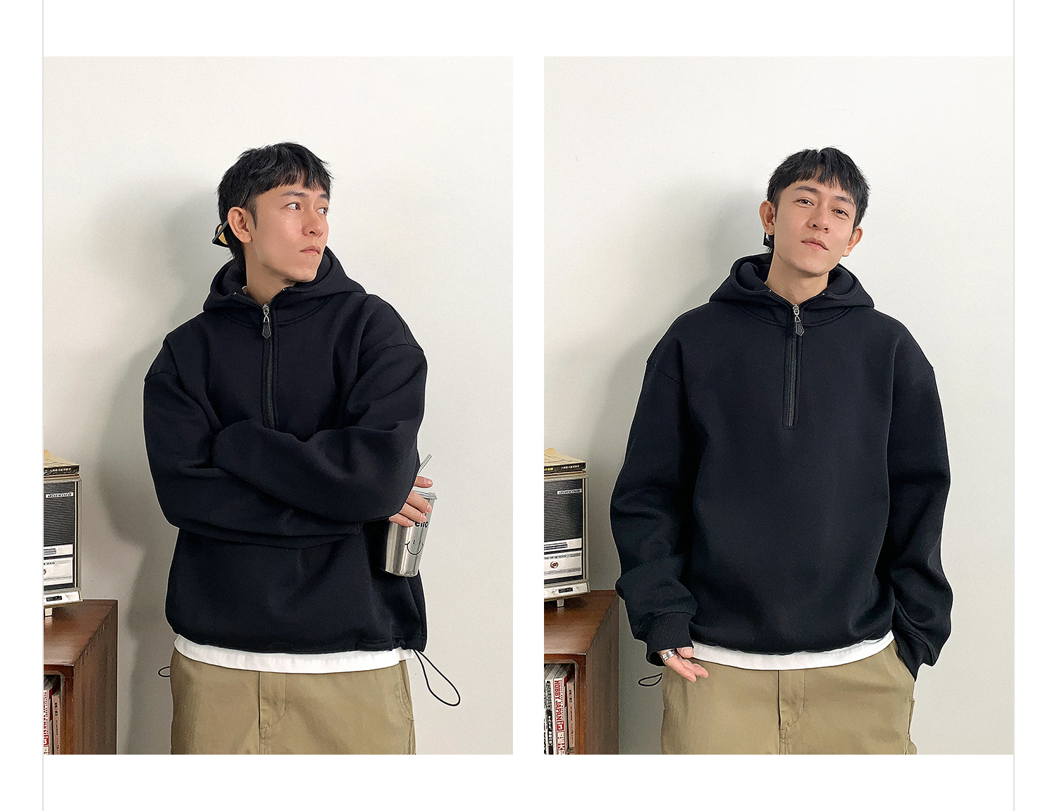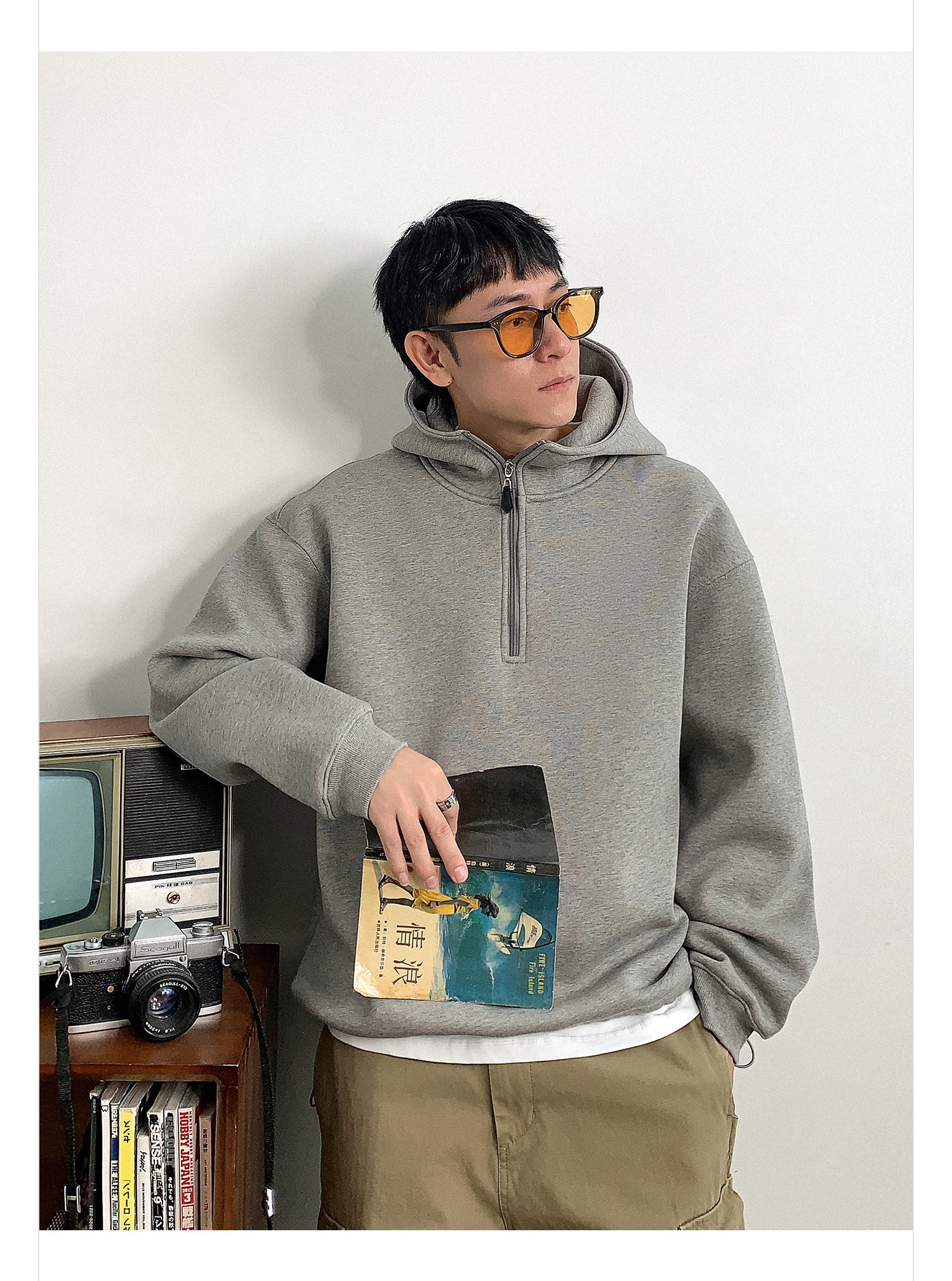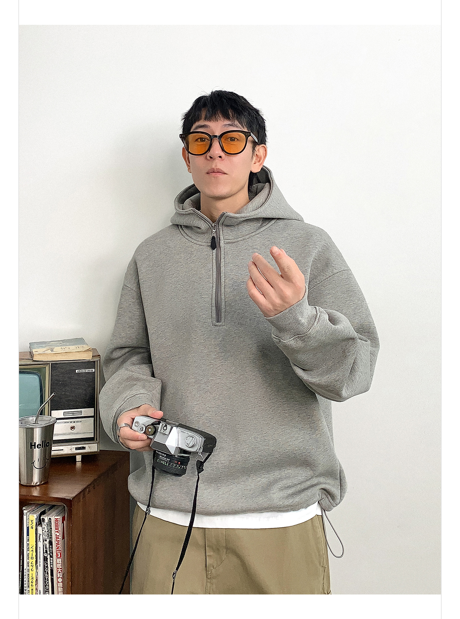 徐太浪日系复古半拉链连帽加绒卫衣男秋冬潮流百搭休闲学院风外套