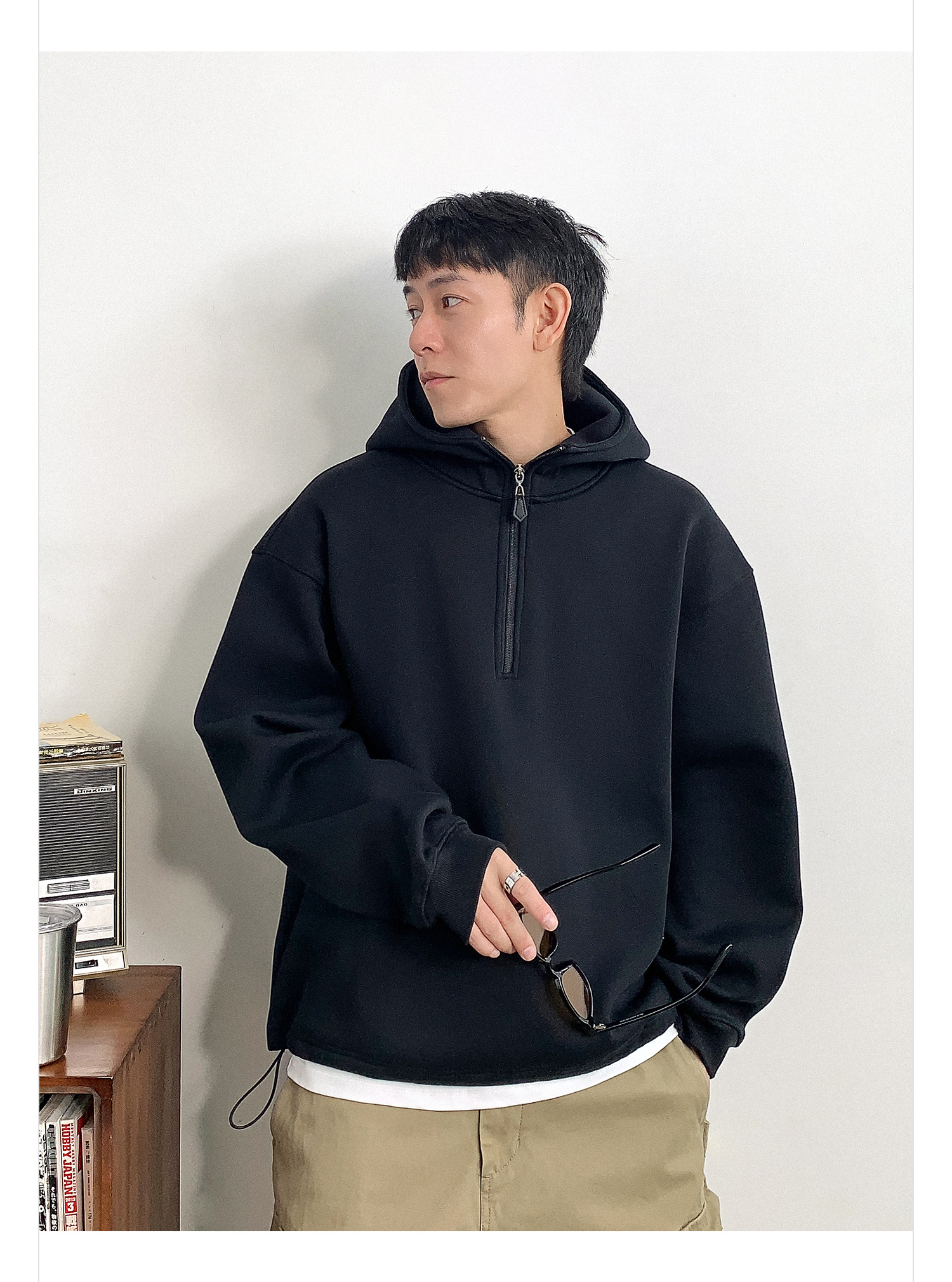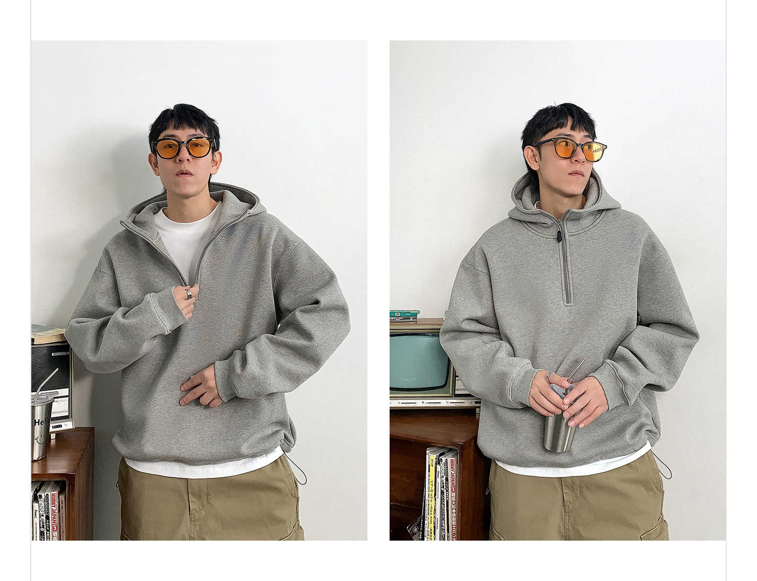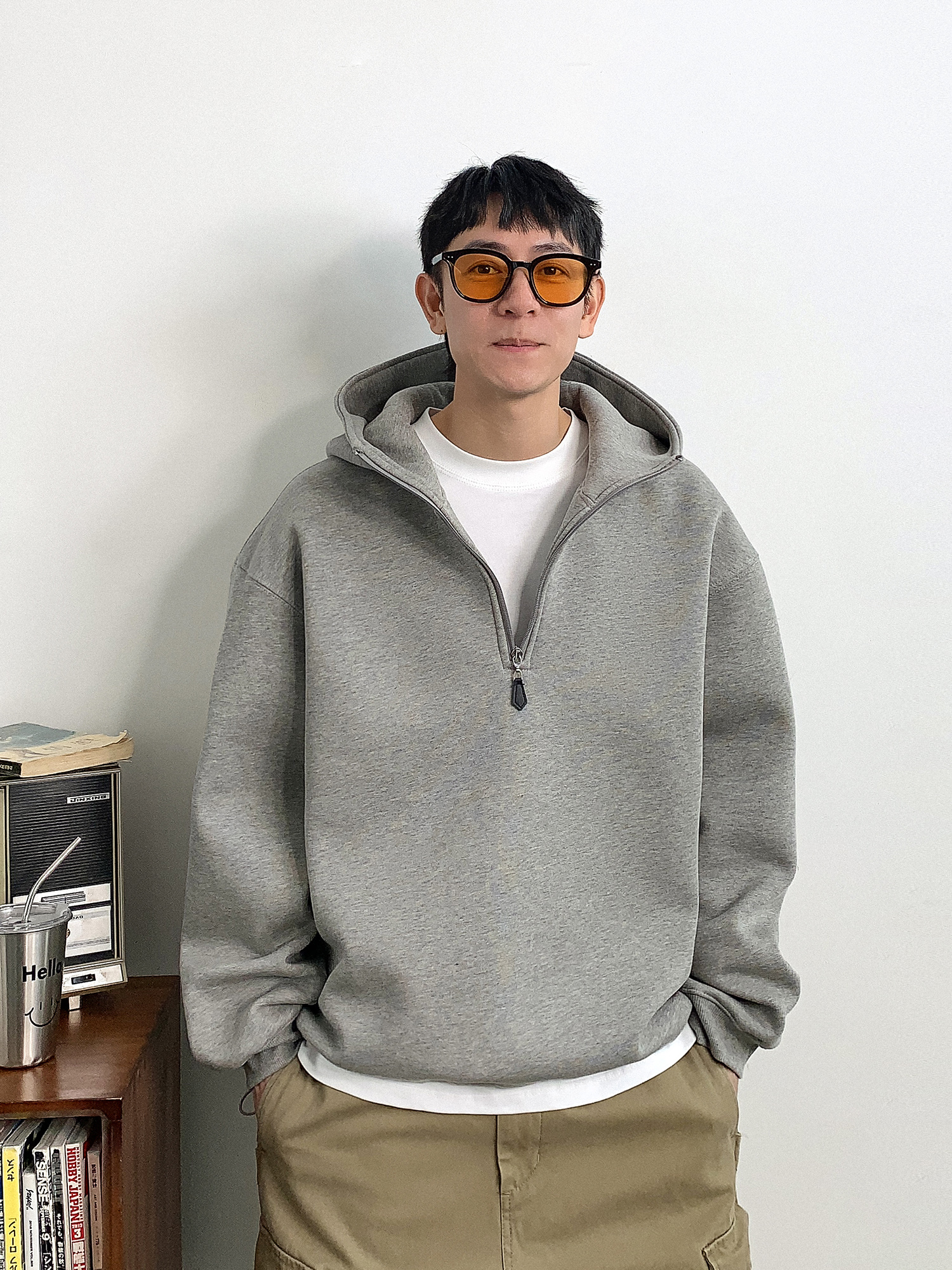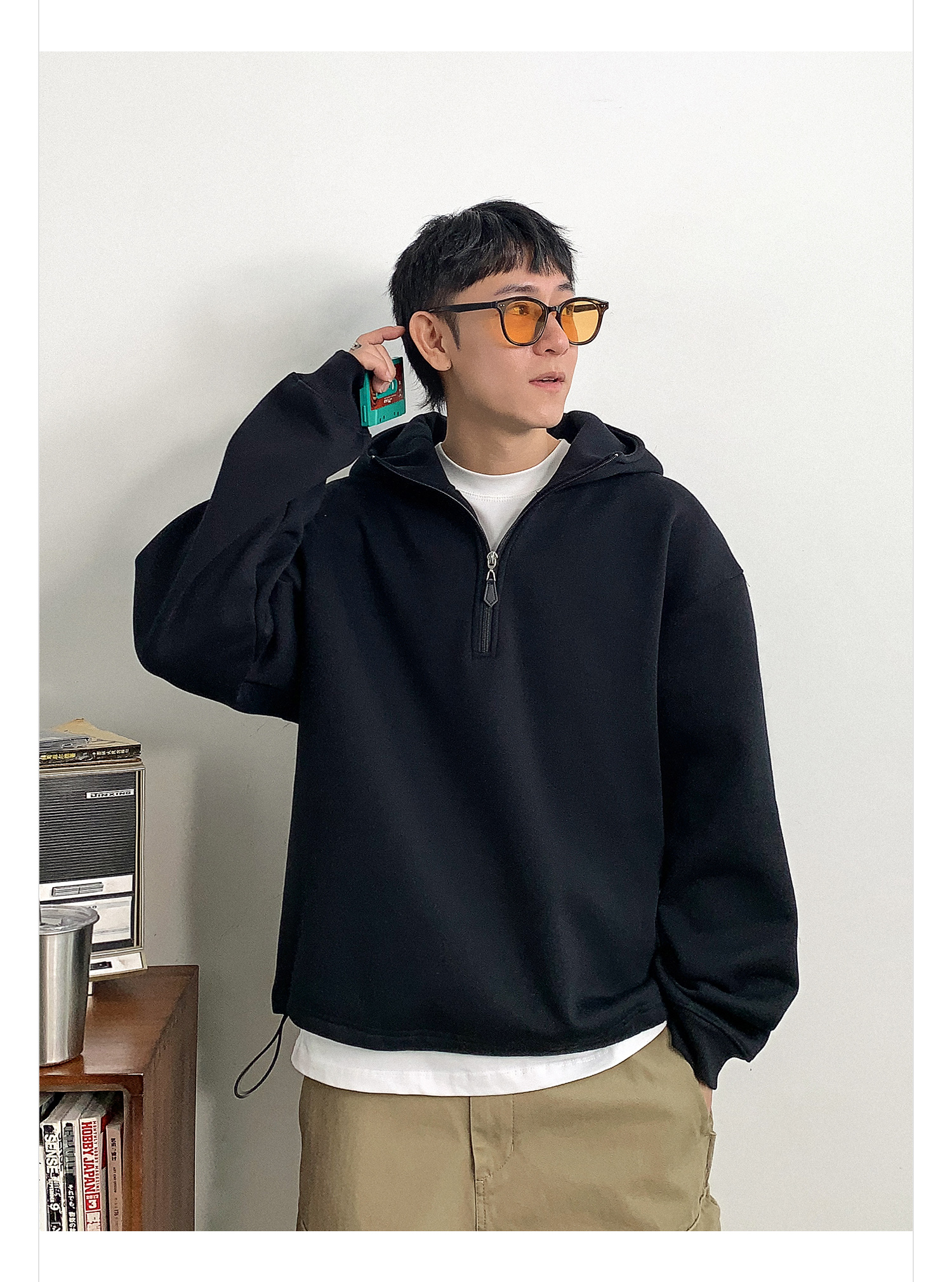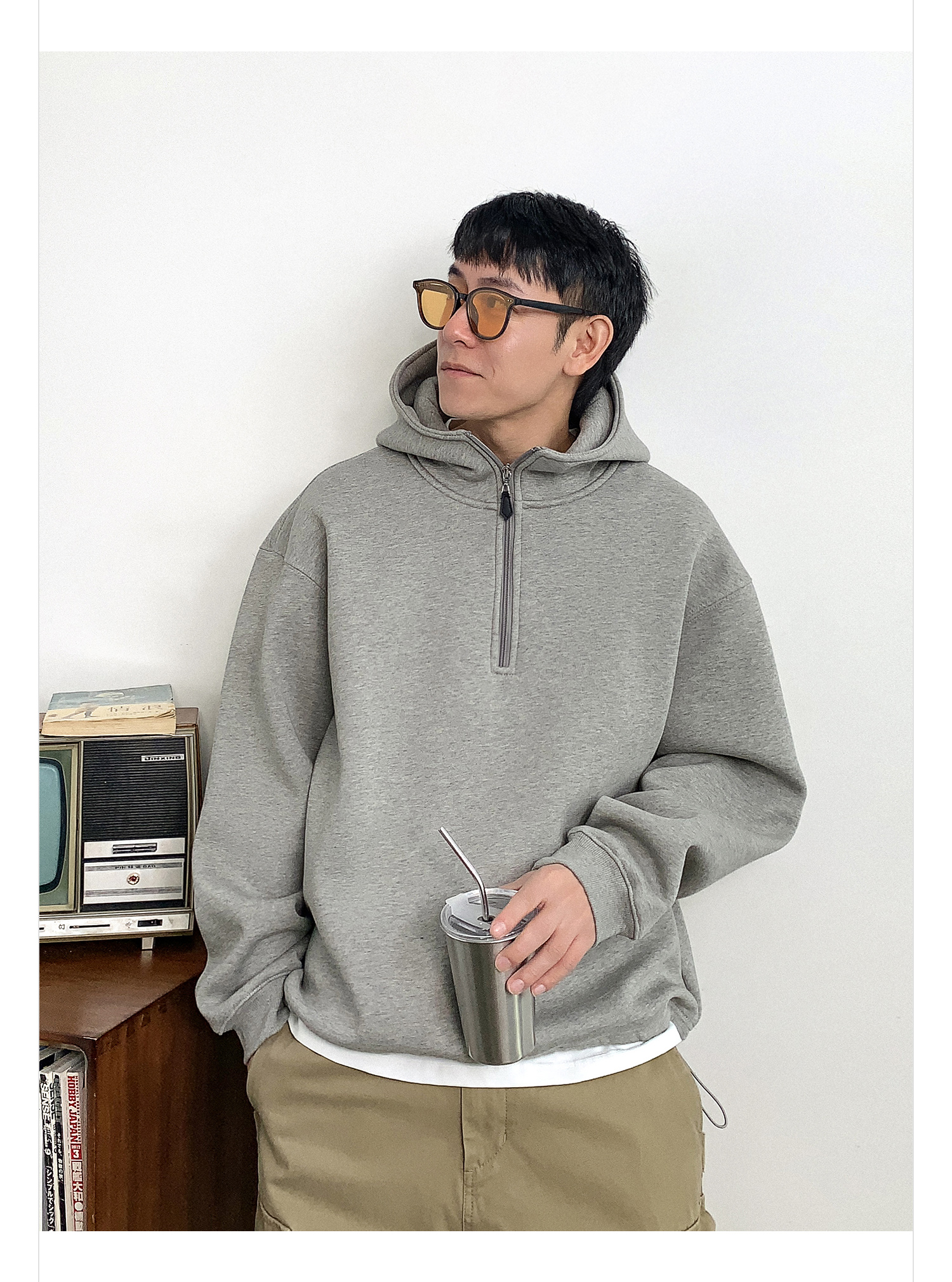 徐太浪日系复古半拉链连帽加绒卫衣男秋冬潮流百搭休闲学院风外套