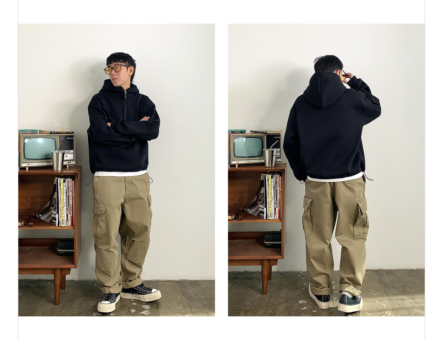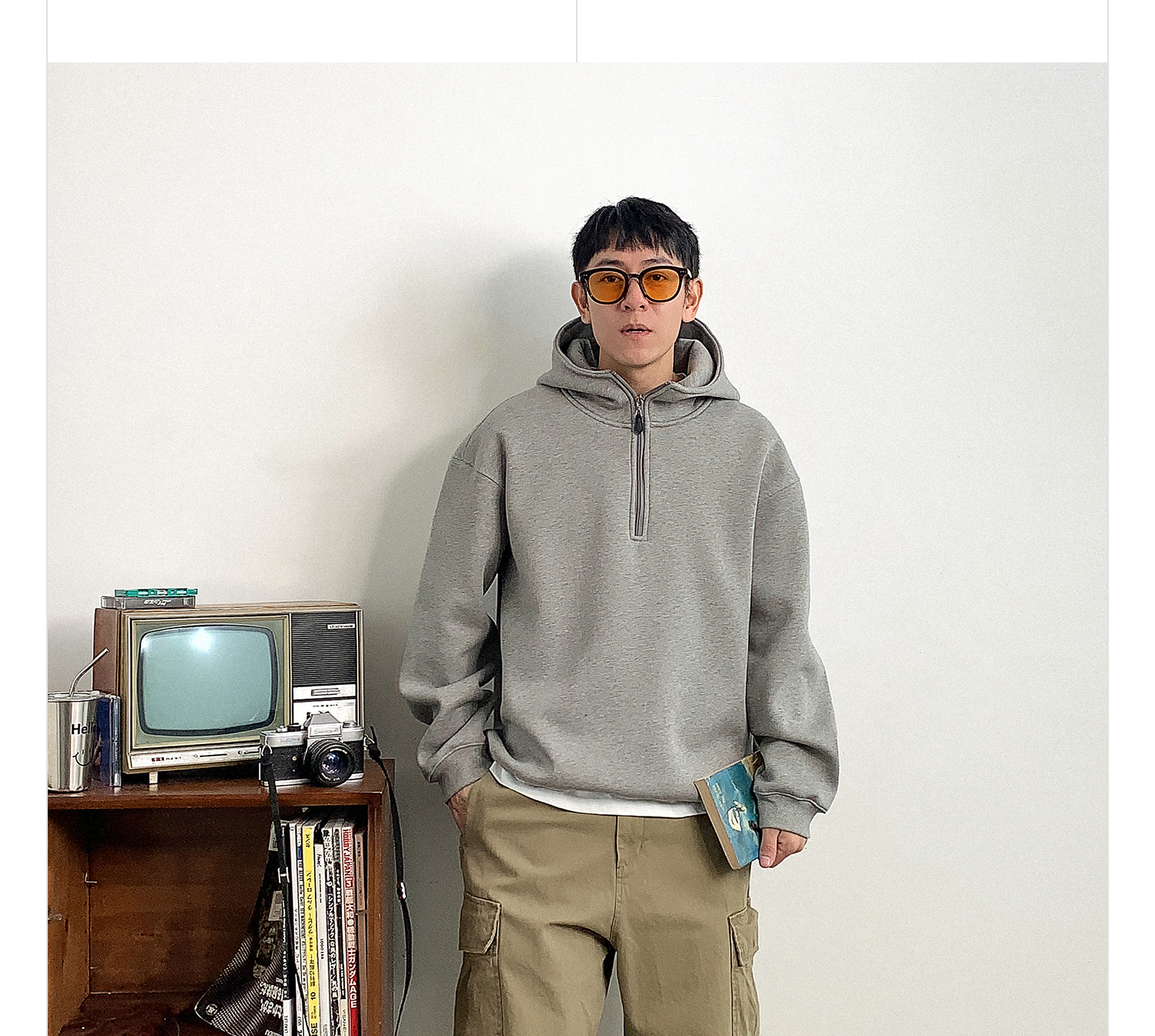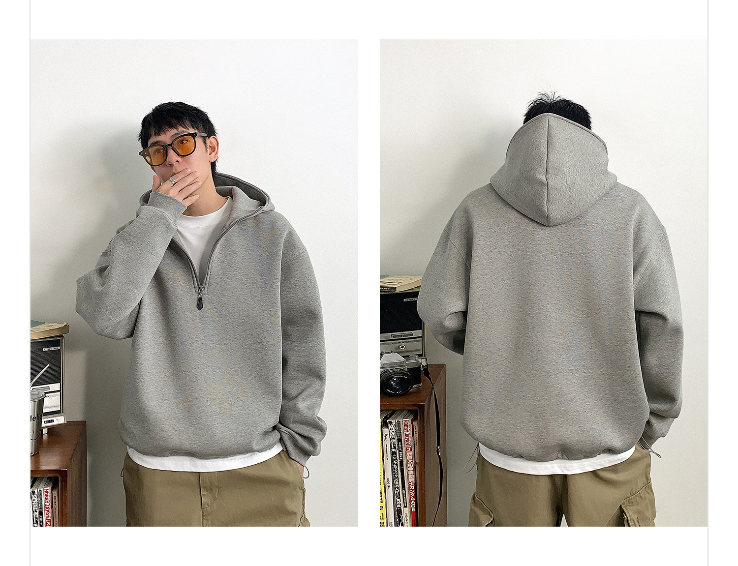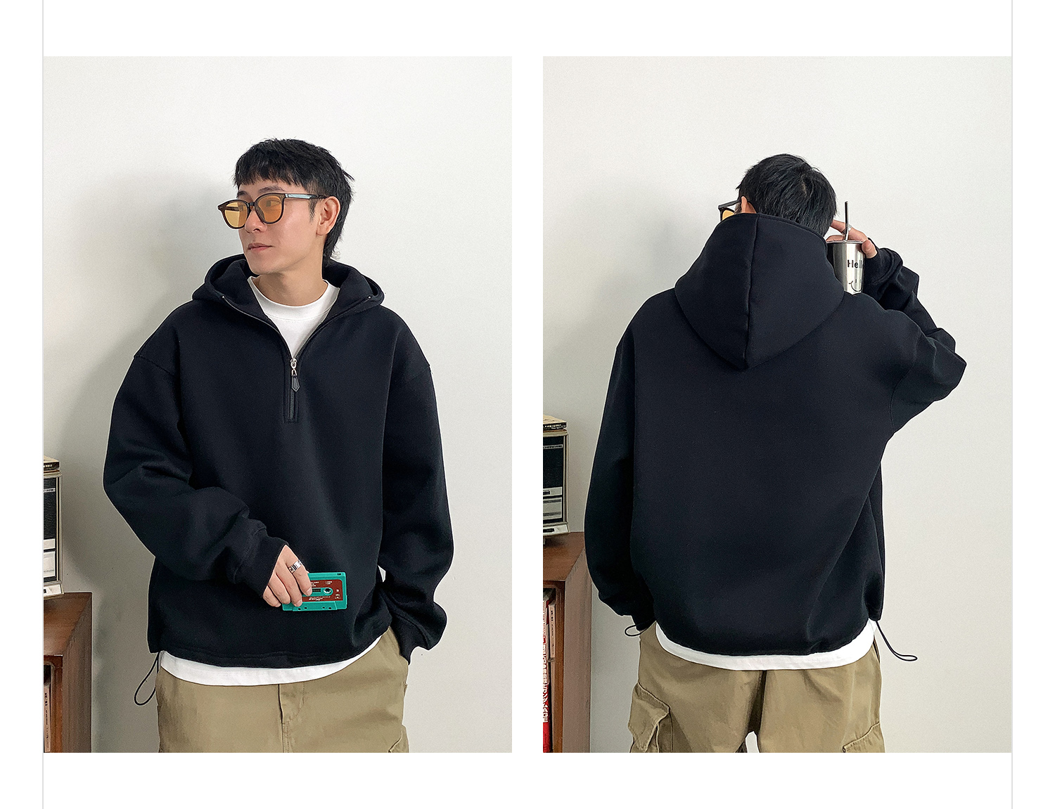 徐太浪日系复古半拉链连帽加绒卫衣男秋冬潮流百搭休闲学院风外套