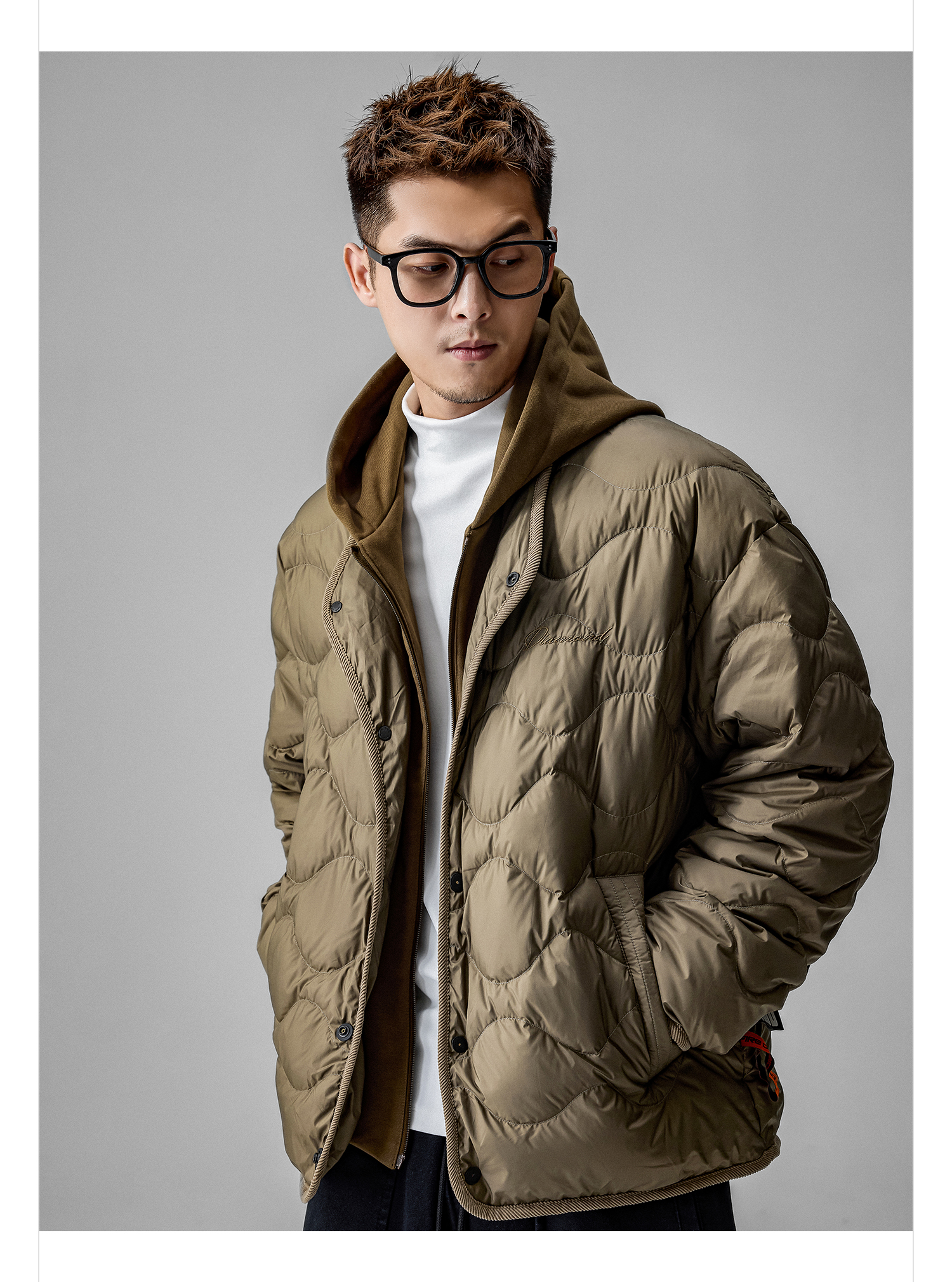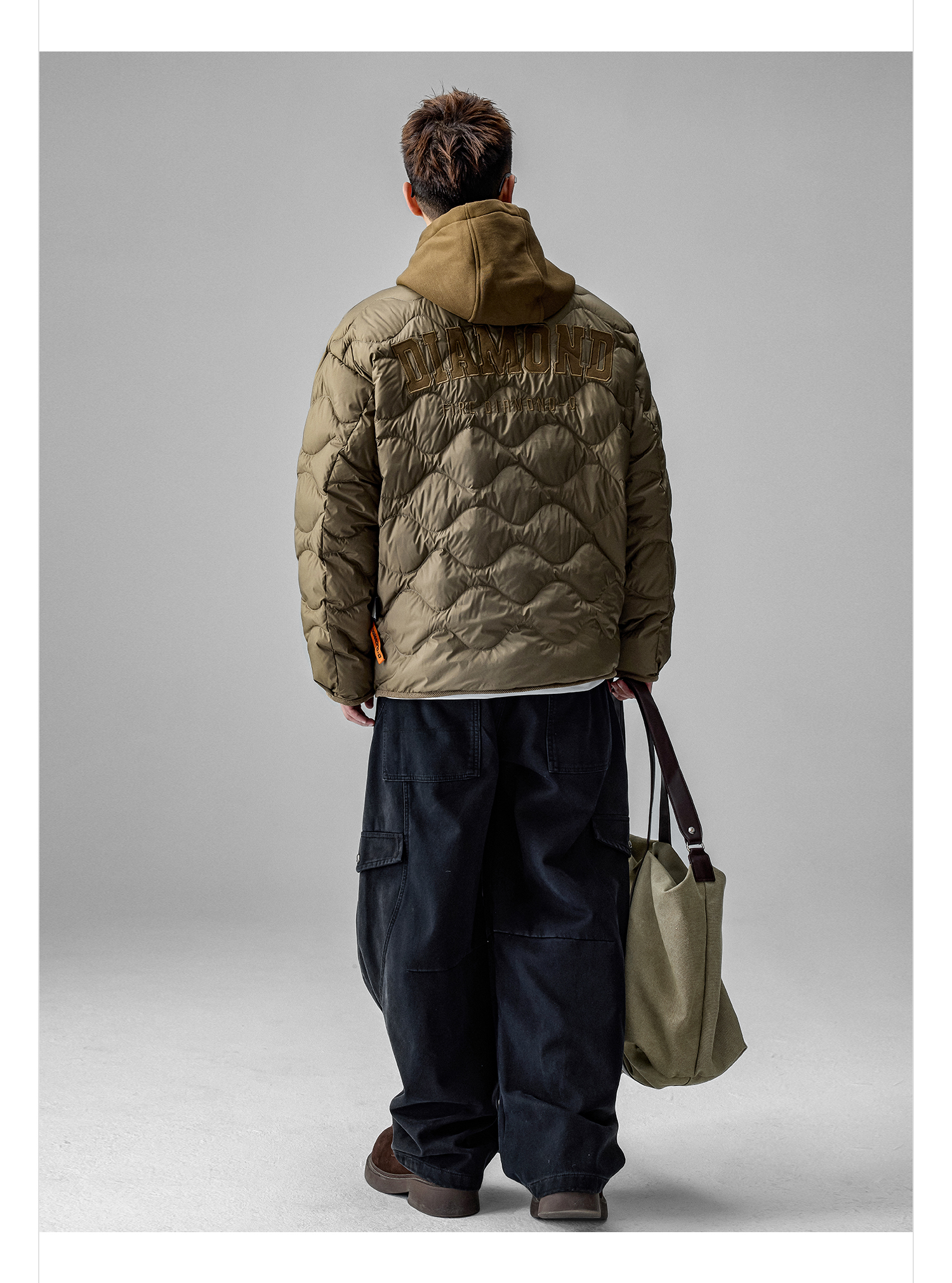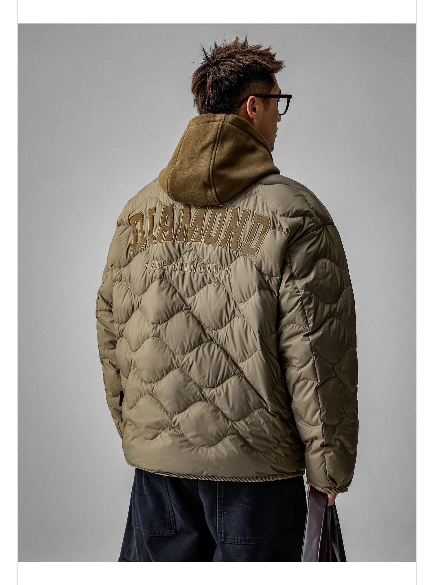 徐太浪【字母刺绣 假两件】辑格连帽羽绒服男冬季厚款防寒服外套