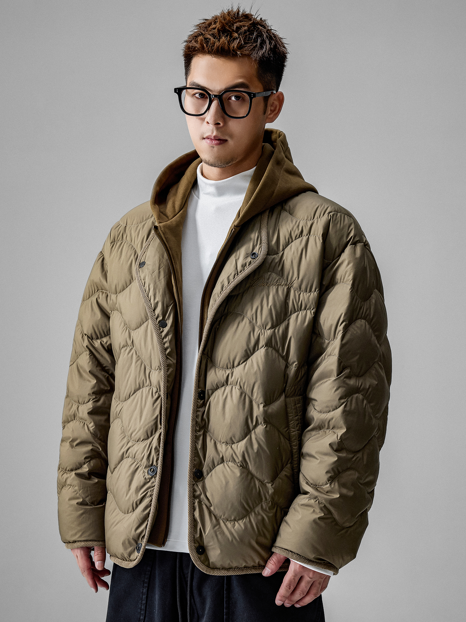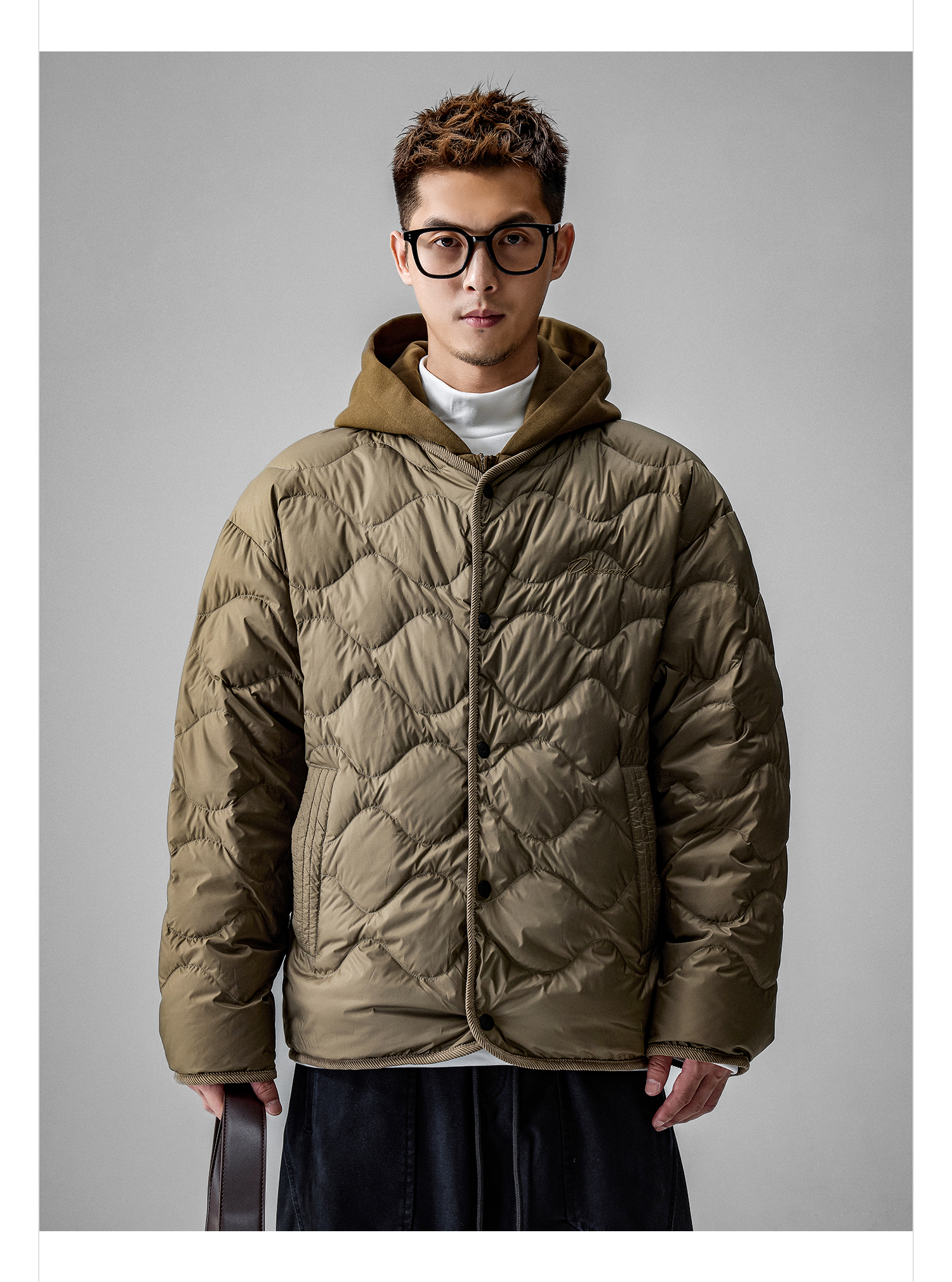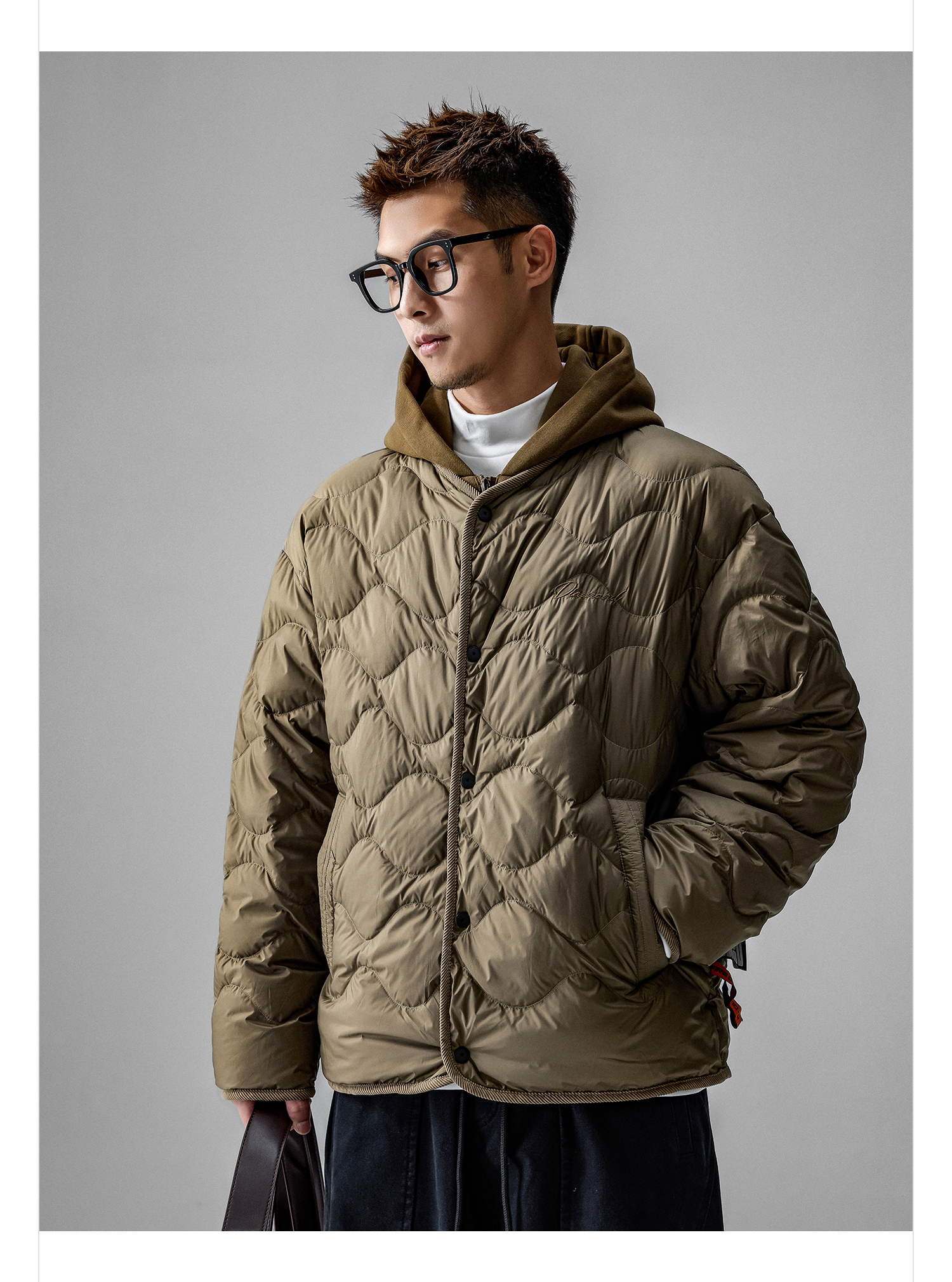 徐太浪【字母刺绣 假两件】辑格连帽羽绒服男冬季厚款防寒服外套