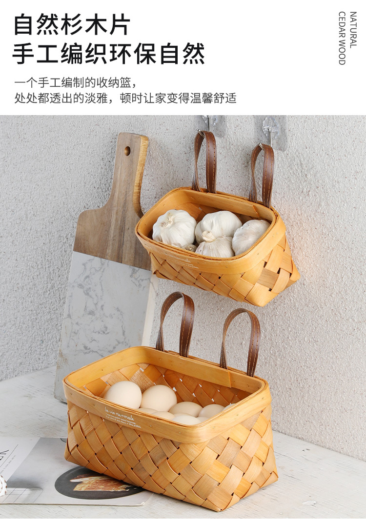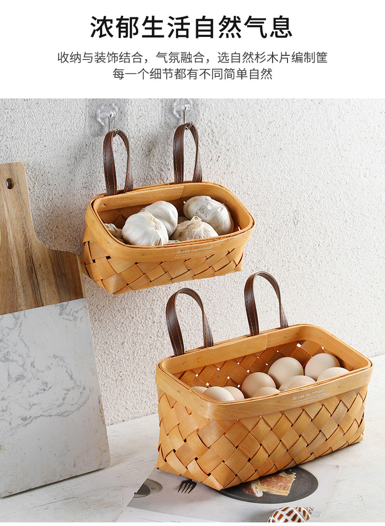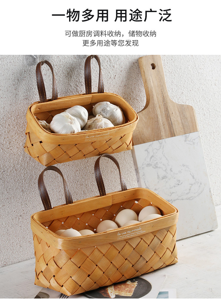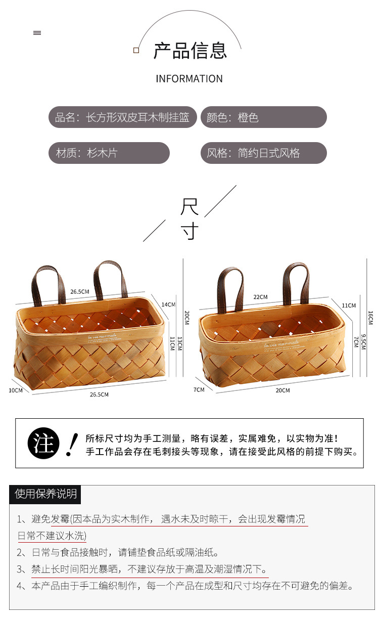 【橙色】娜家长方形双皮耳木制挂篮