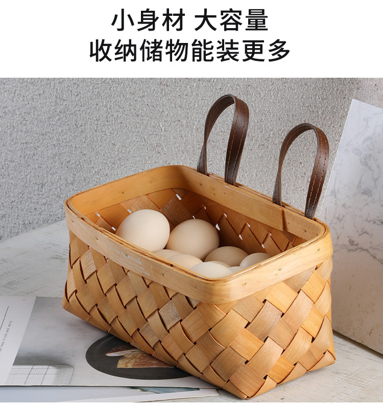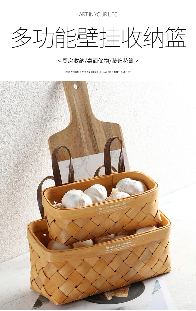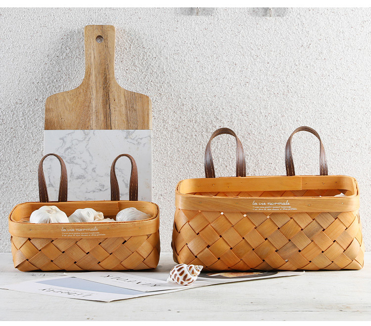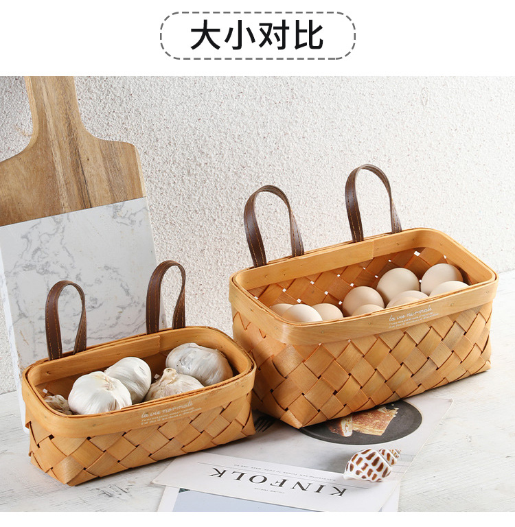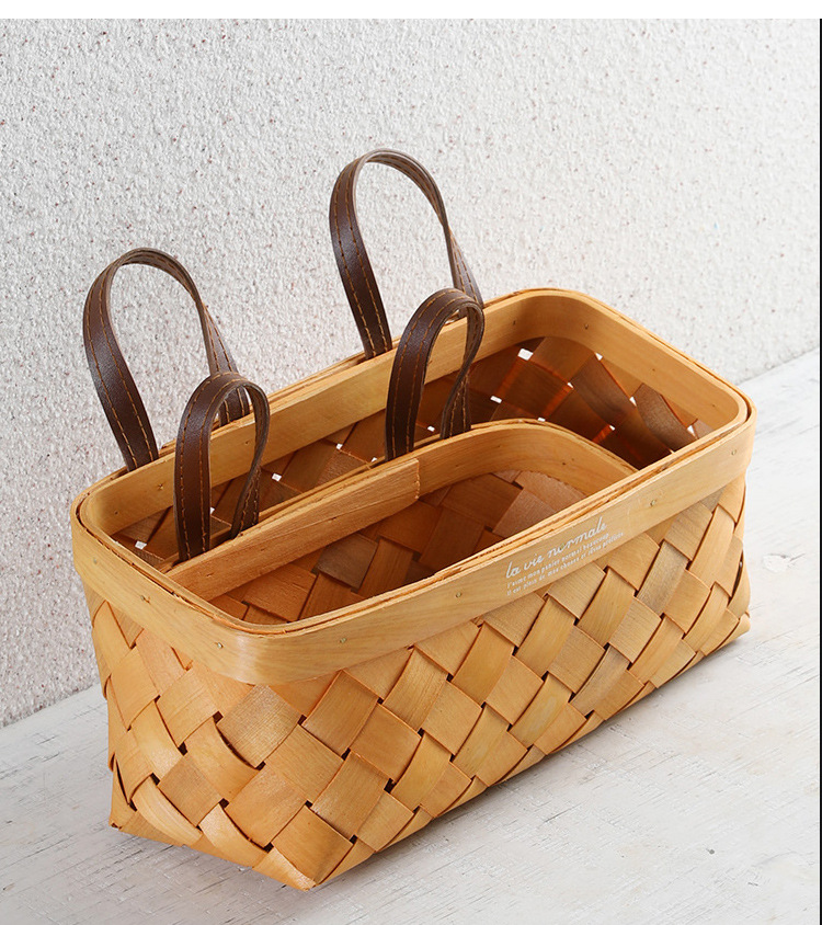 【橙色】娜家长方形双皮耳木制挂篮