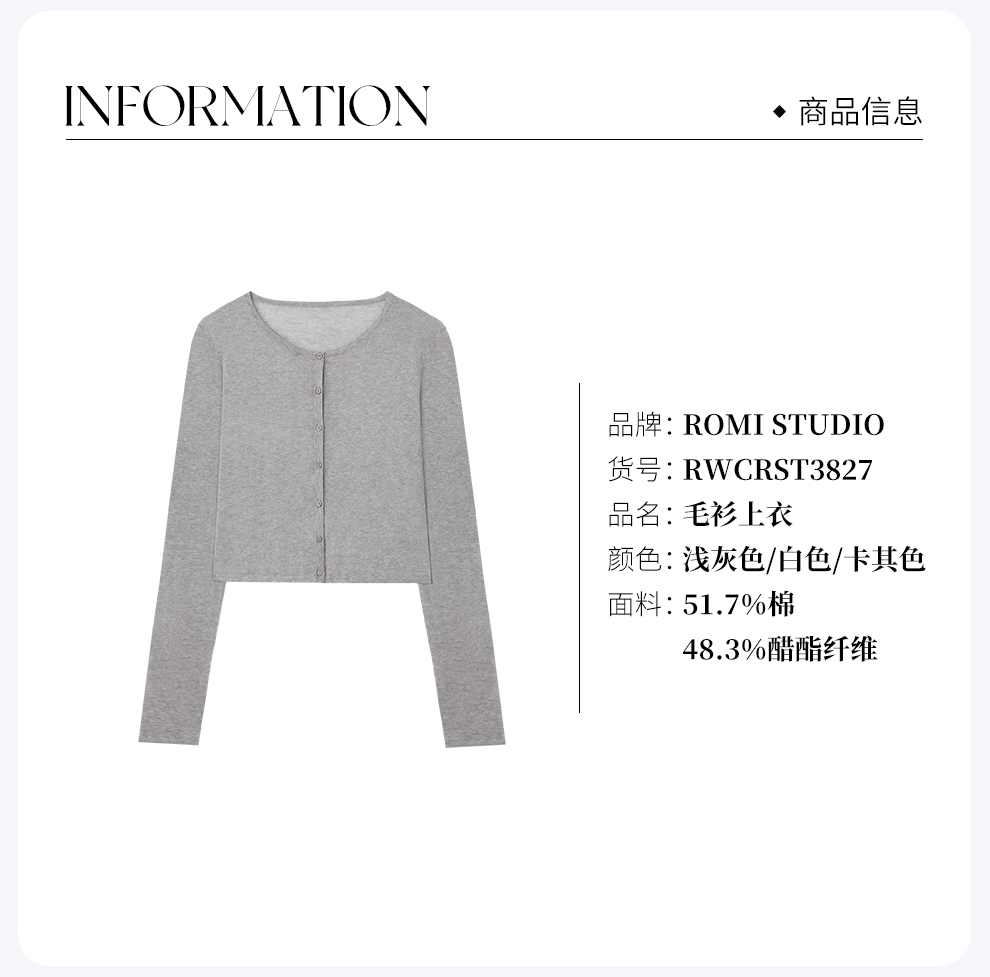 ROMI STUDIO 醋酸长绒棉混纺夏季轻薄花纱圆领针织开衫RWCRST3827