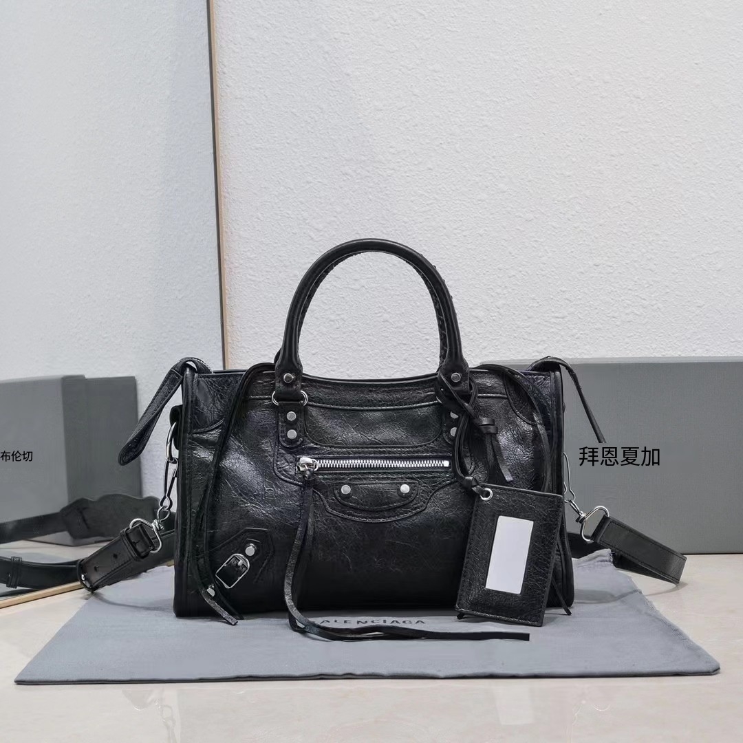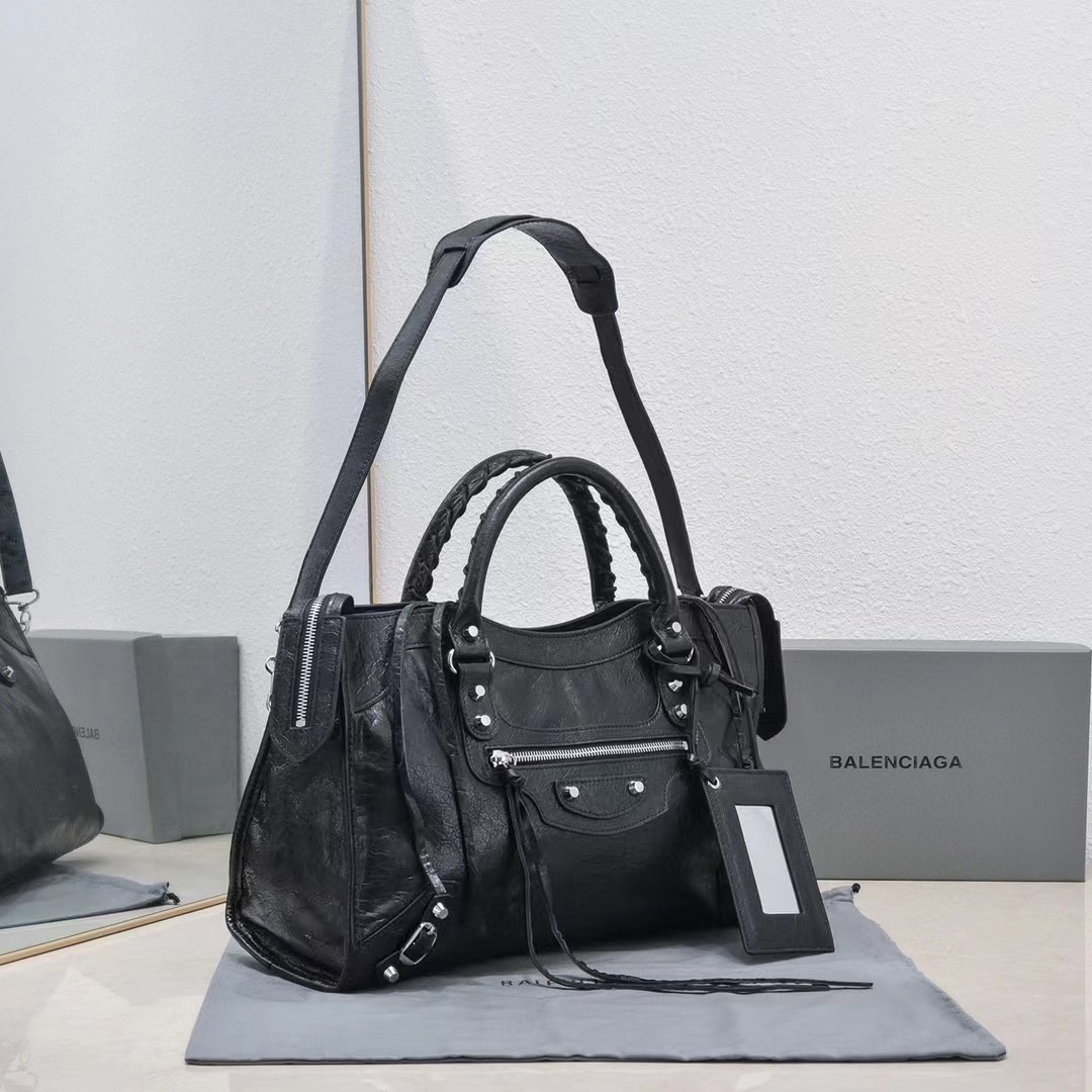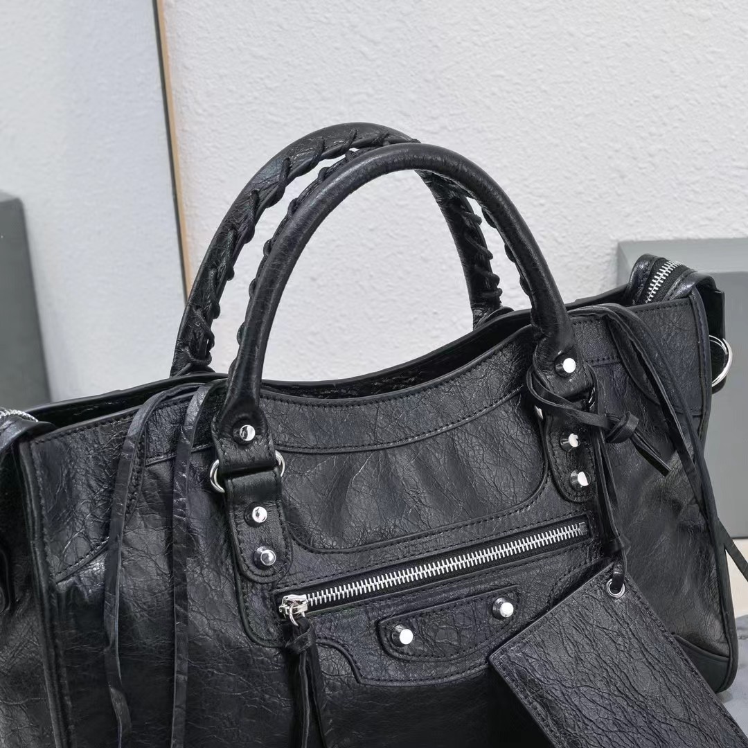 B家 柳钉装饰 皮革羊皮 单肩包手提包 女款黑色