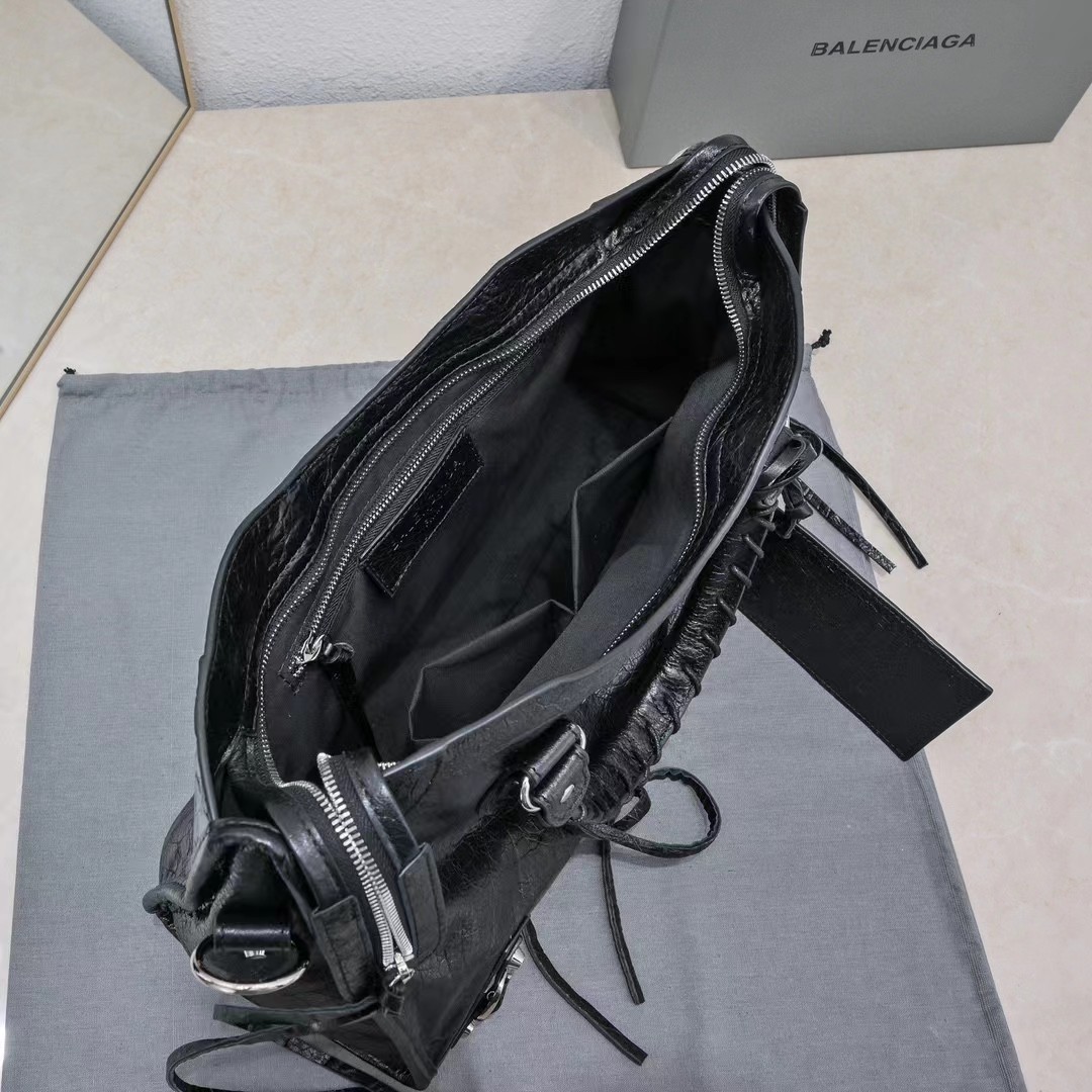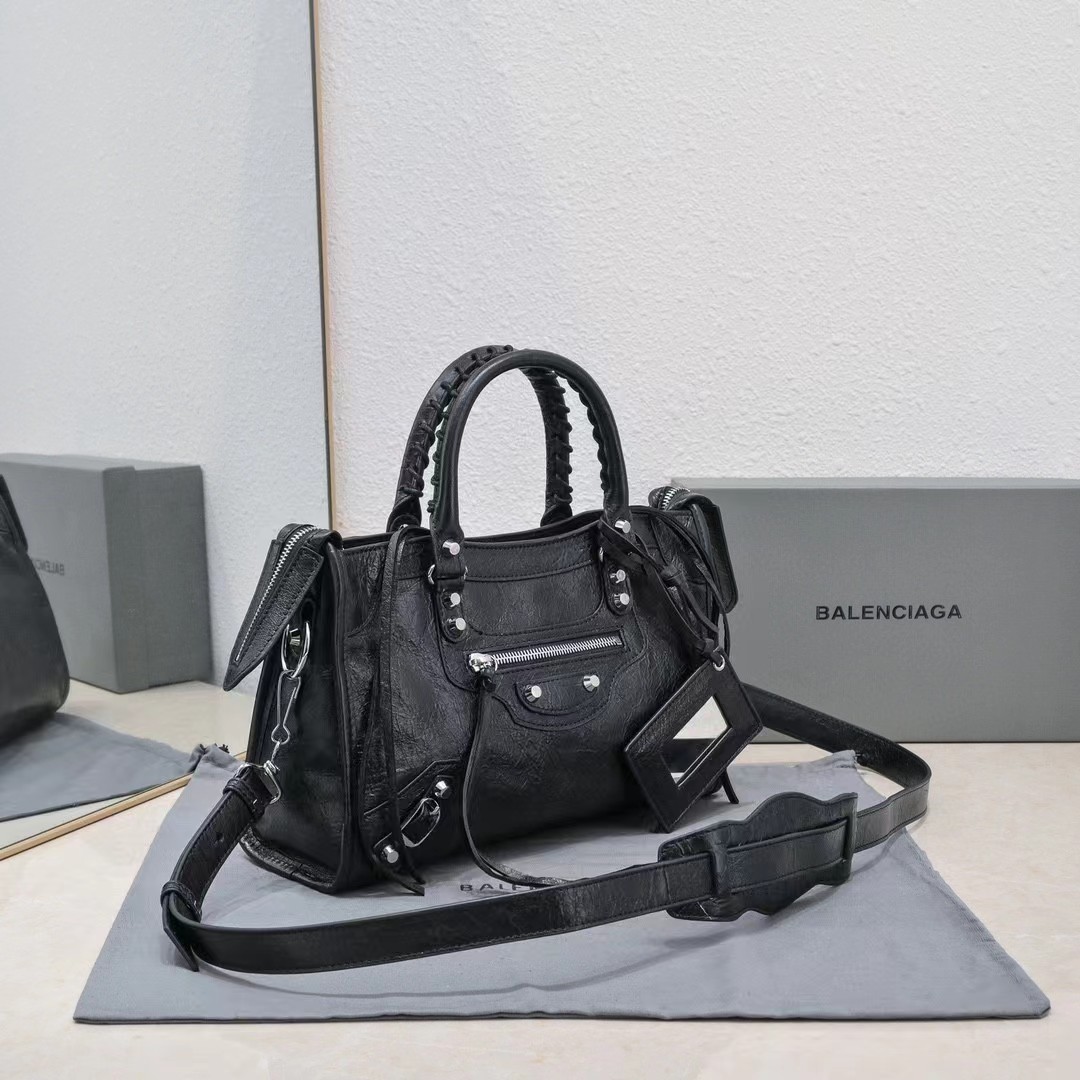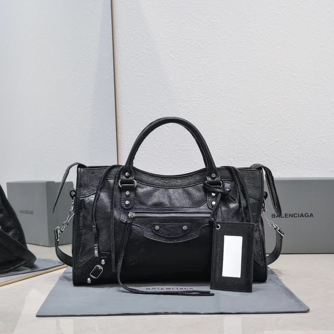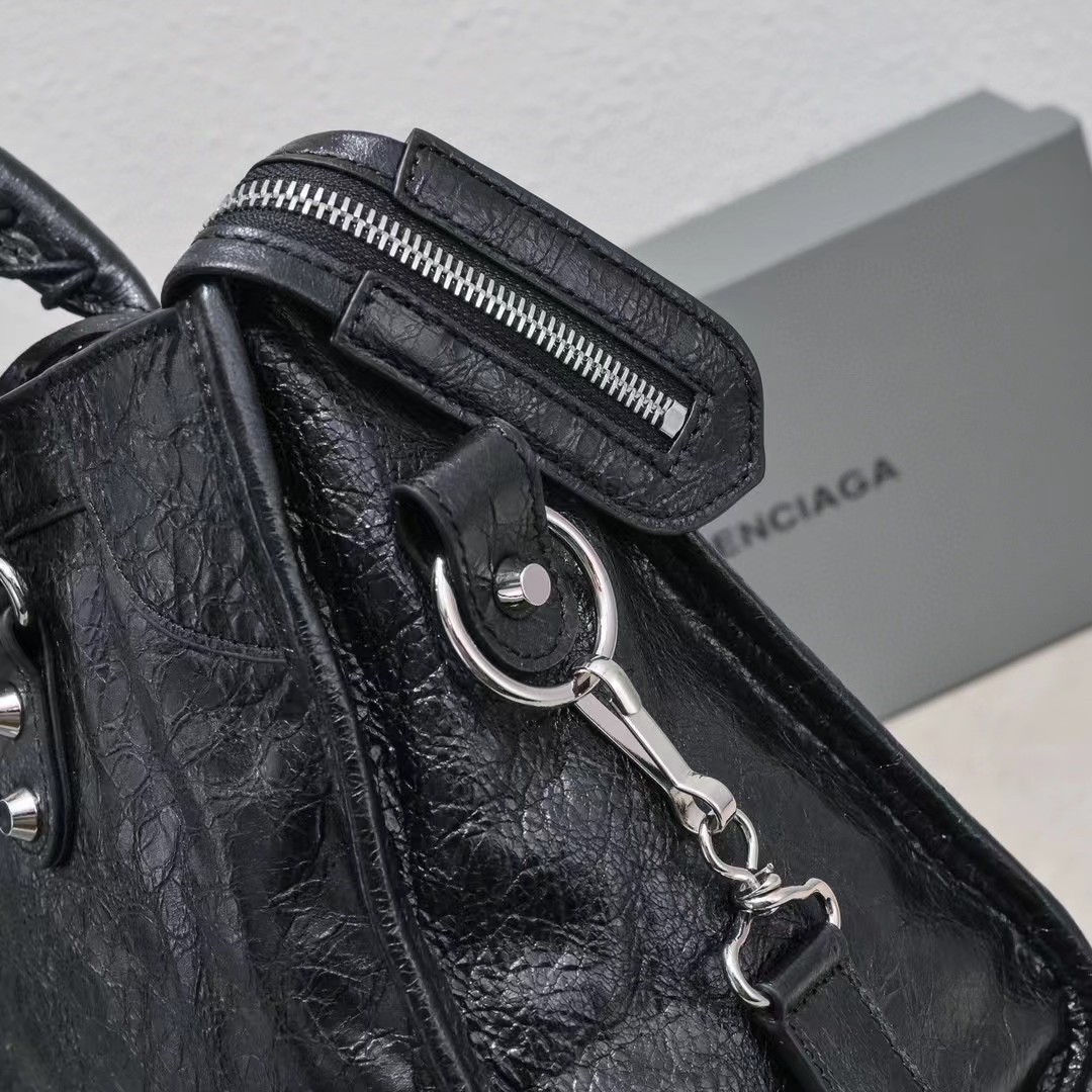 B家 柳钉装饰 皮革羊皮 单肩包手提包 女款黑色