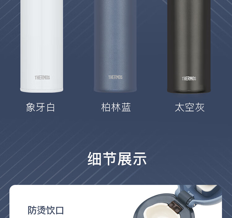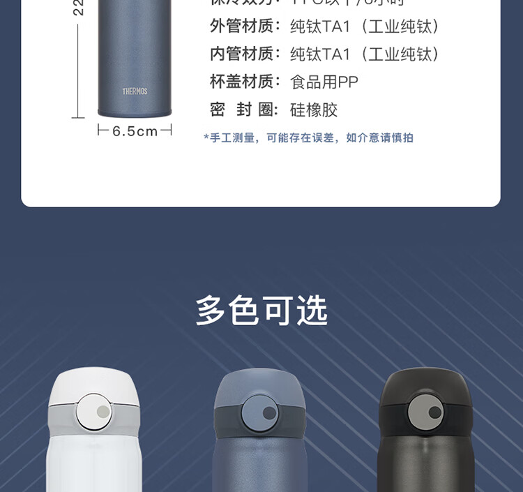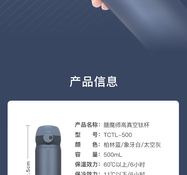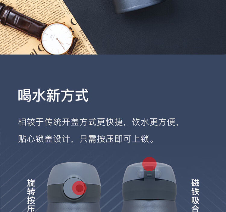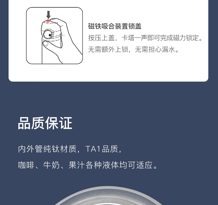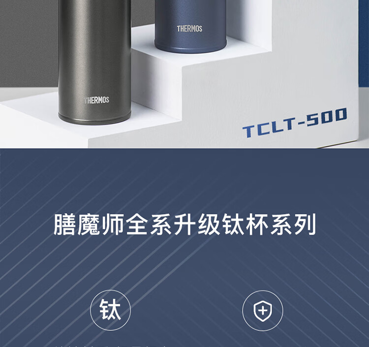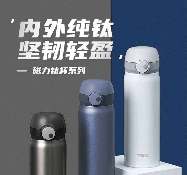 THERMOS膳魔师保温杯磁力钛杯超轻便携商务杯咖啡杯水杯子TCTL-500-BL