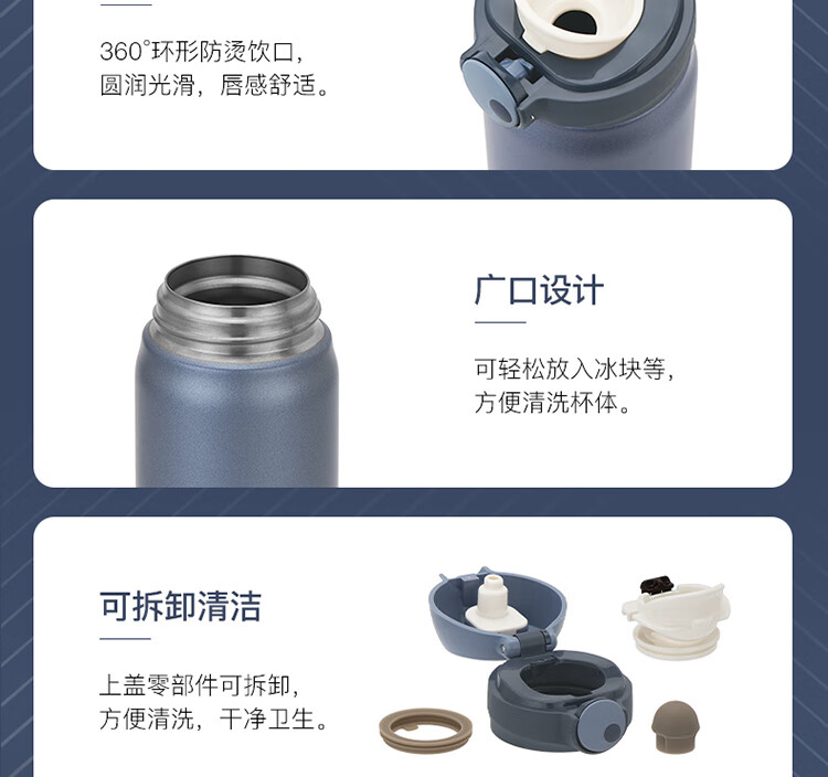 施密特(simita) 保温弹盖316水杯男女士高颜值水杯大容量泡茶杯车载便携杯子 380ML 星斗系列MBW1008-038A/050A