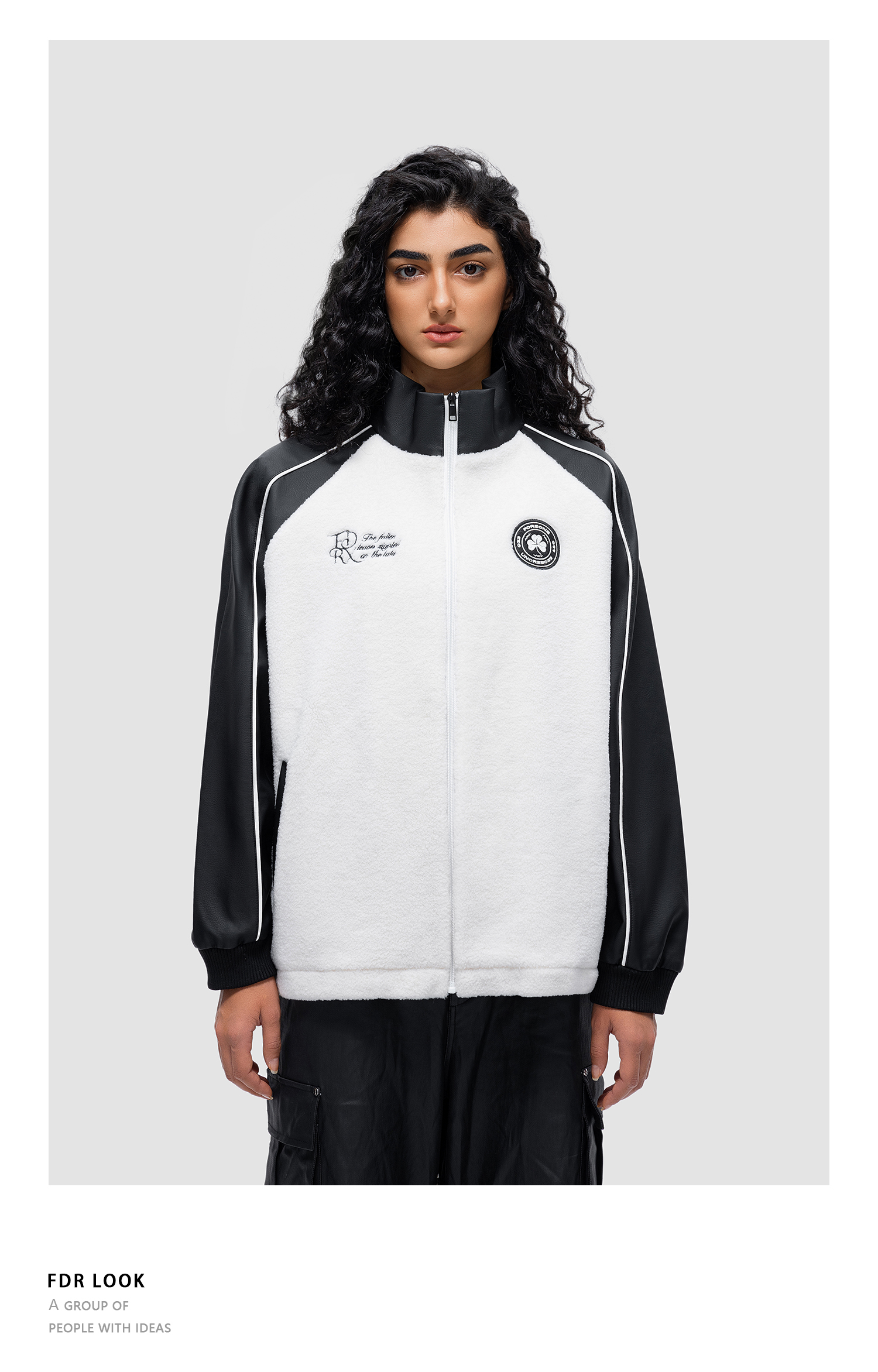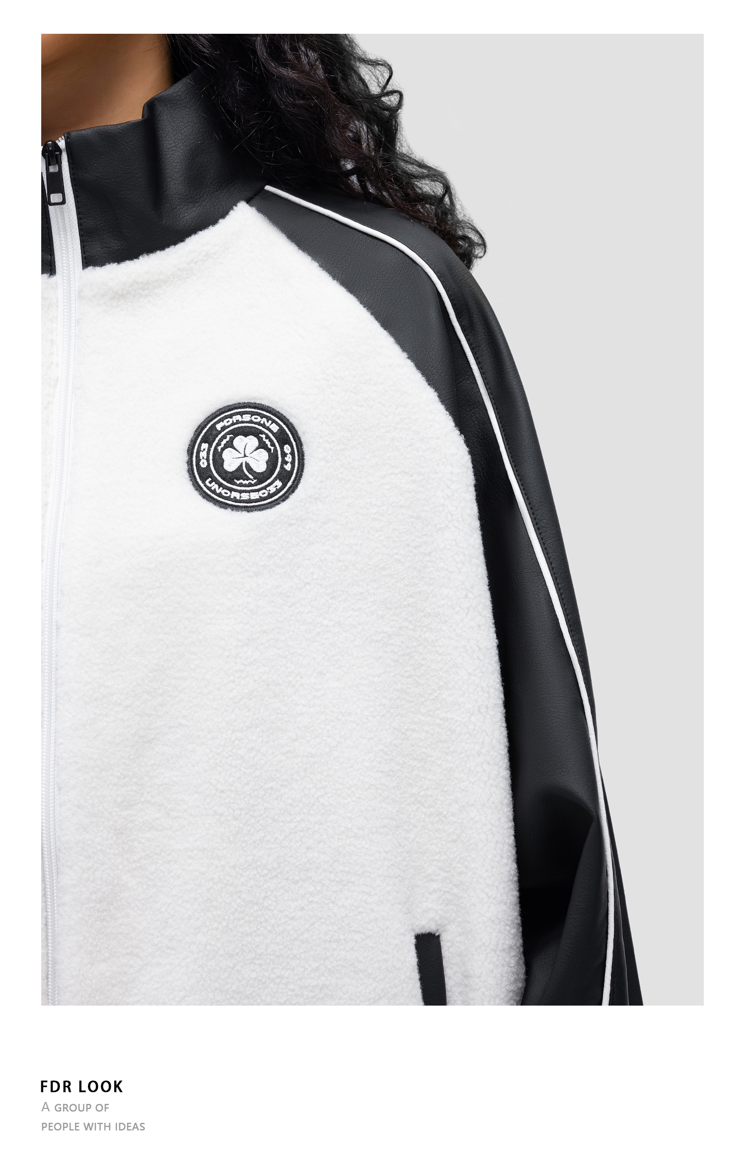 FDR 原创织带章仔羊羔毛外套男女秋冬美式撞色情侣高街开衫上衣