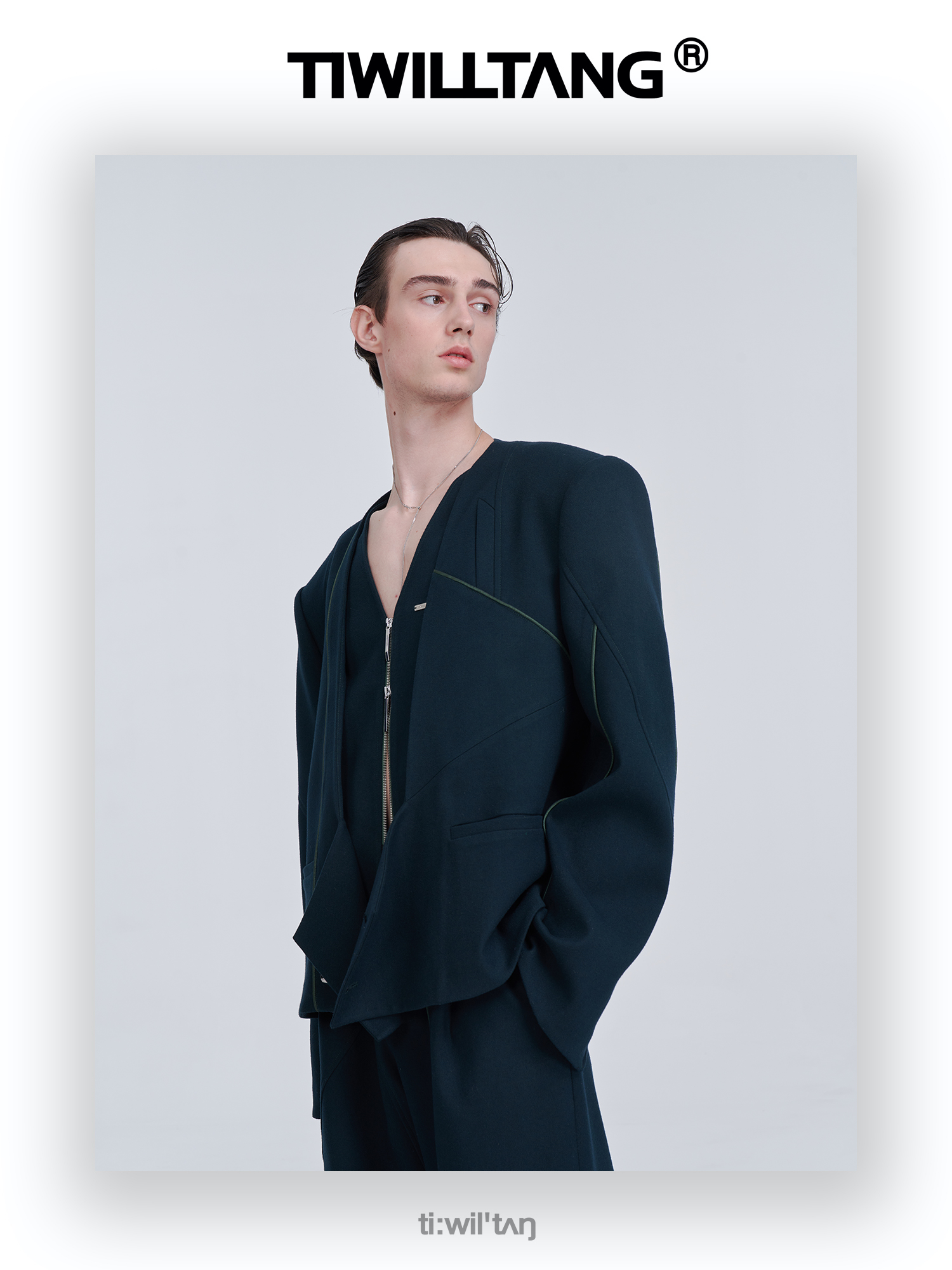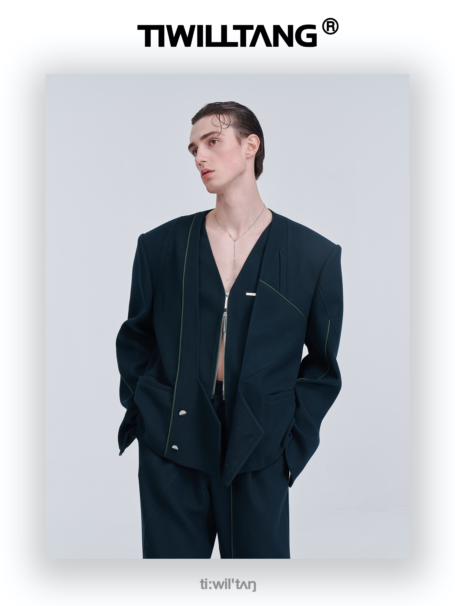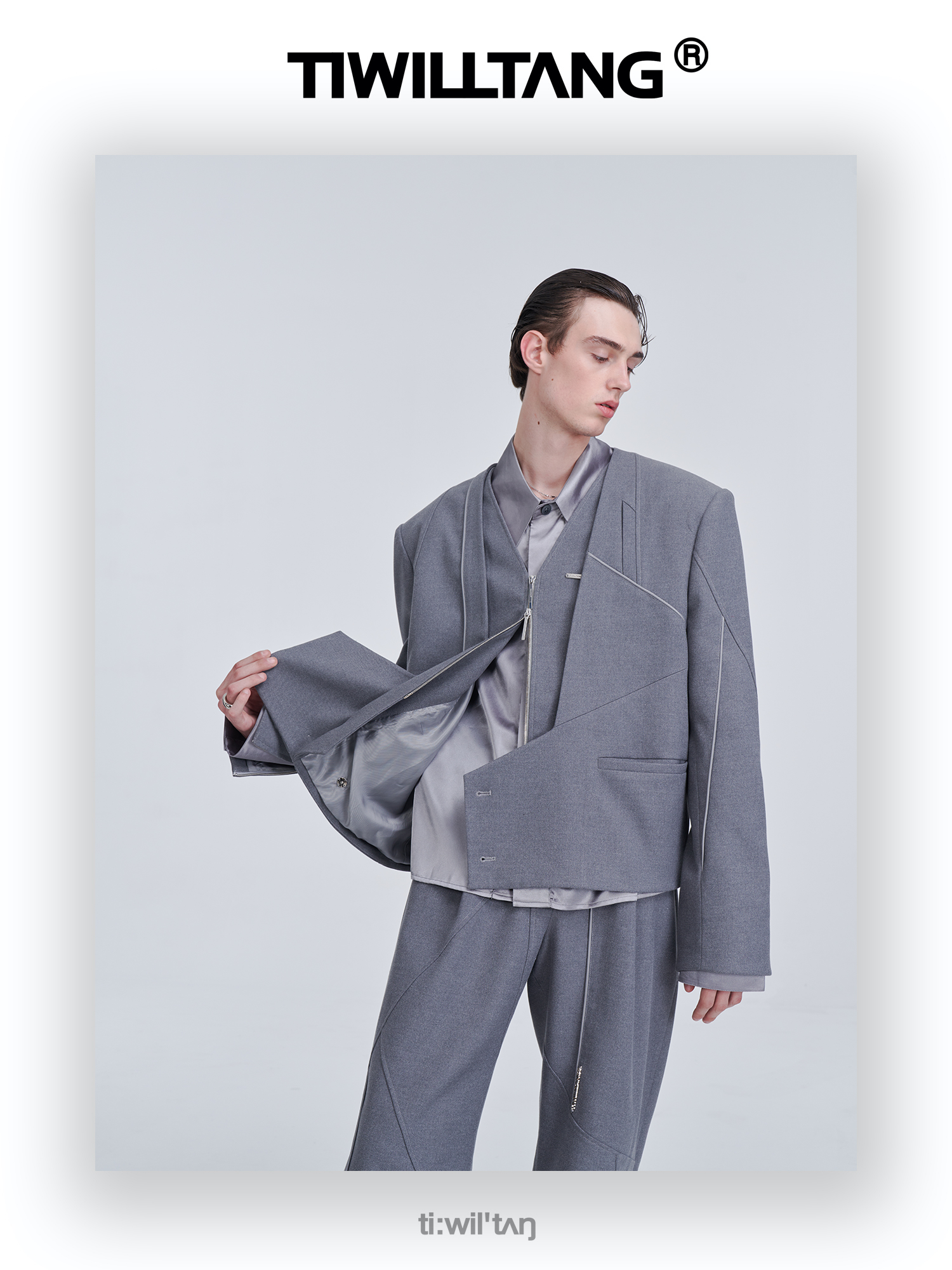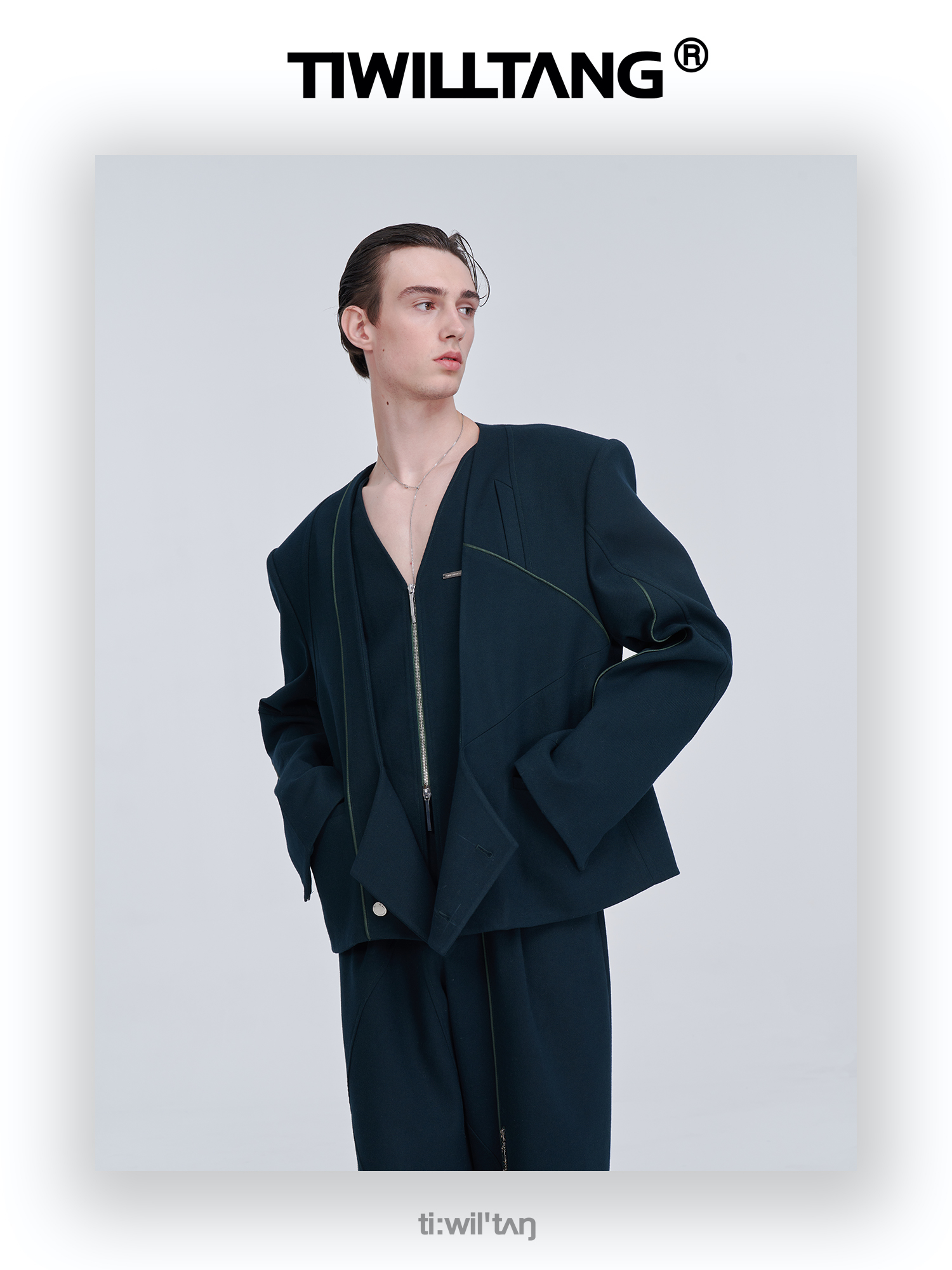 TIWILLTANG启世录“绅缦”无领开衫拉链解构呢西装秋季高级感西服
