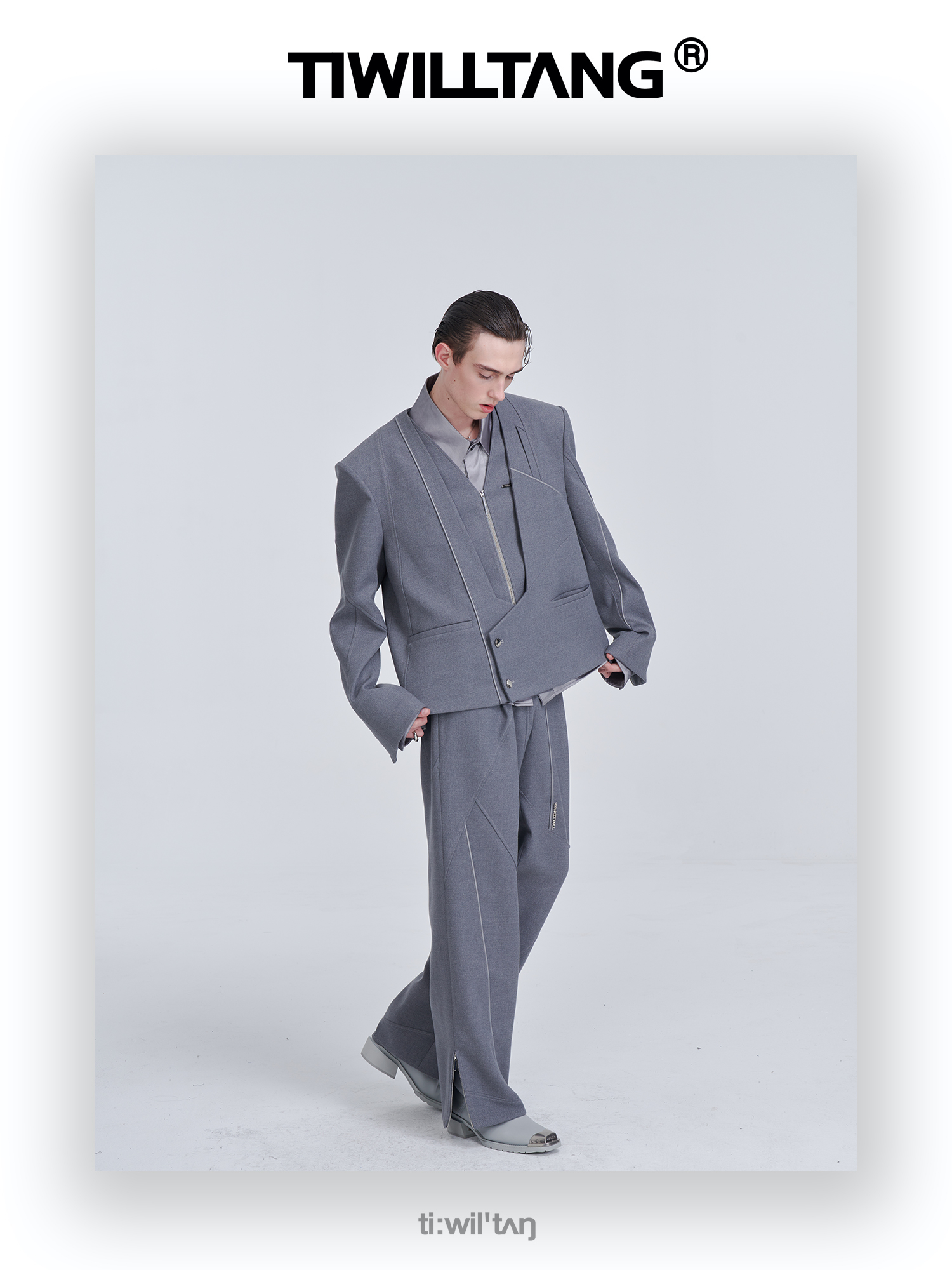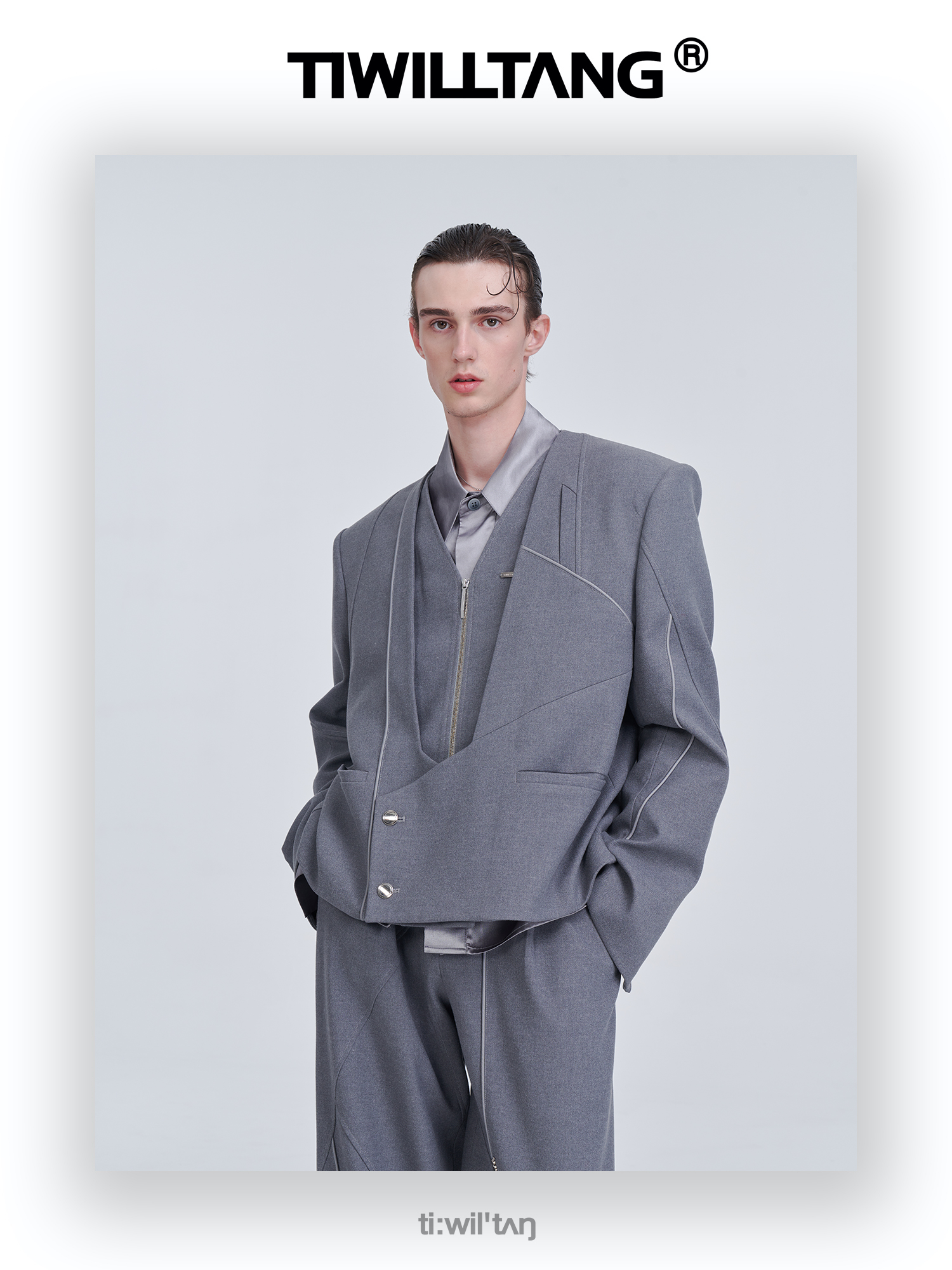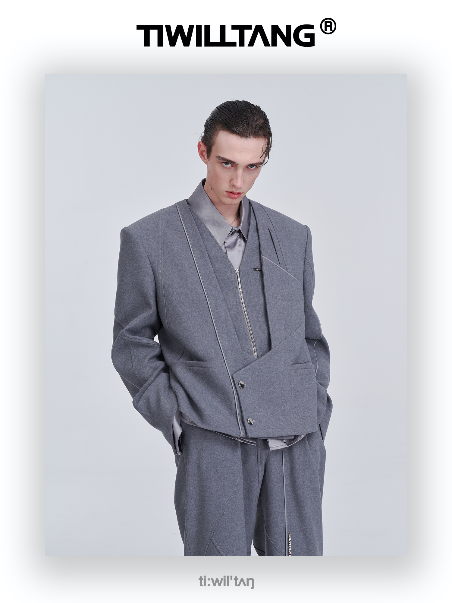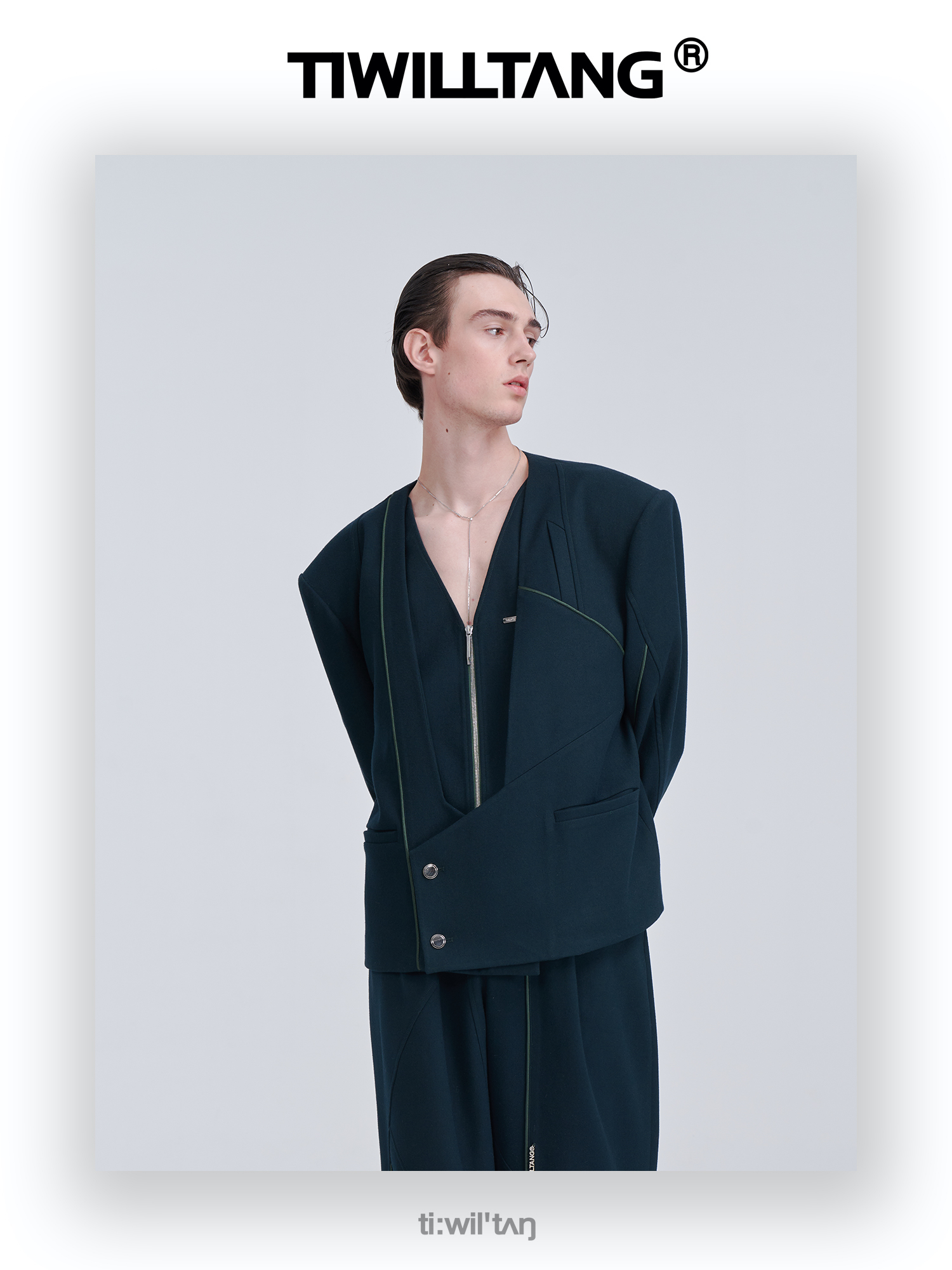 TIWILLTANG启世录“绅缦”无领开衫拉链解构呢西装秋季高级感西服