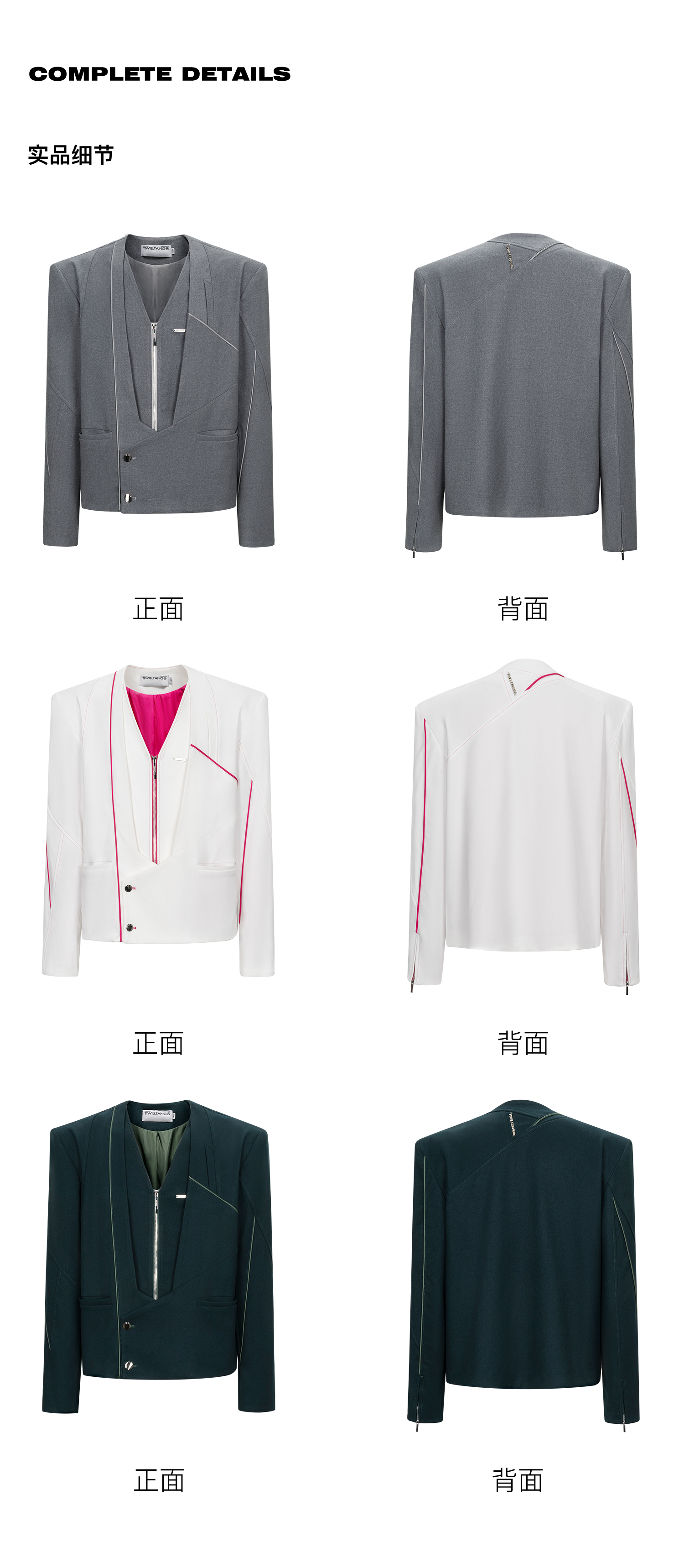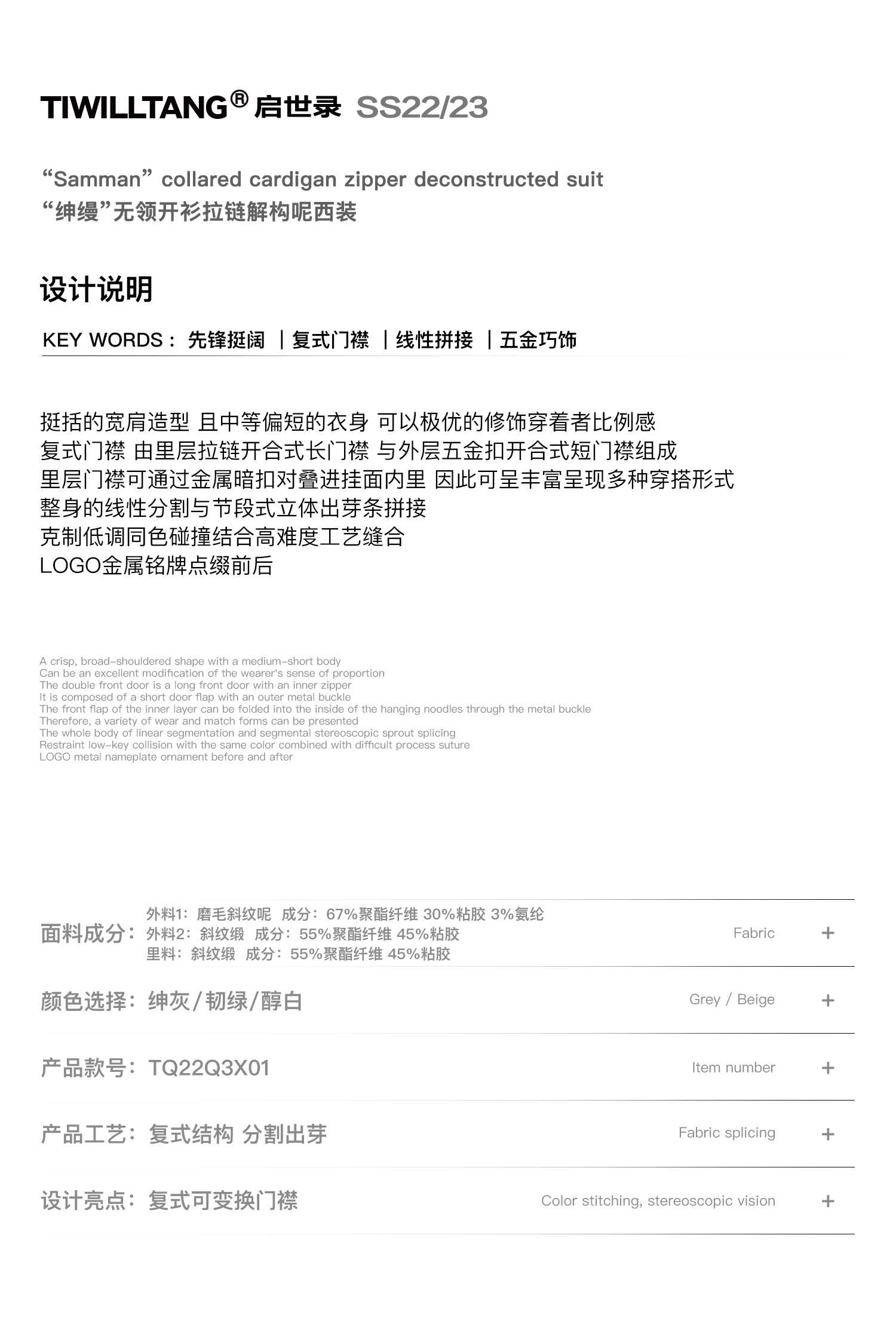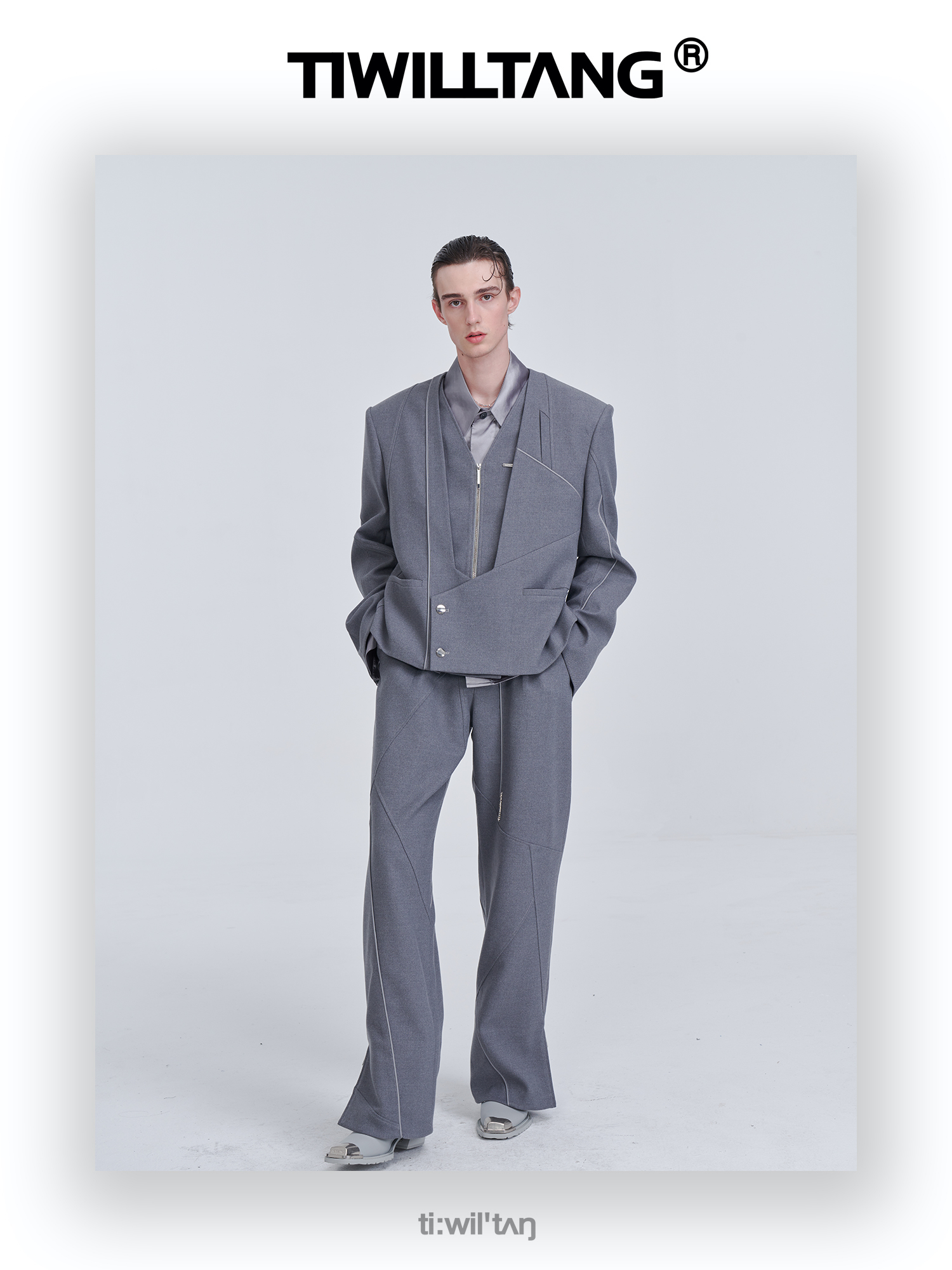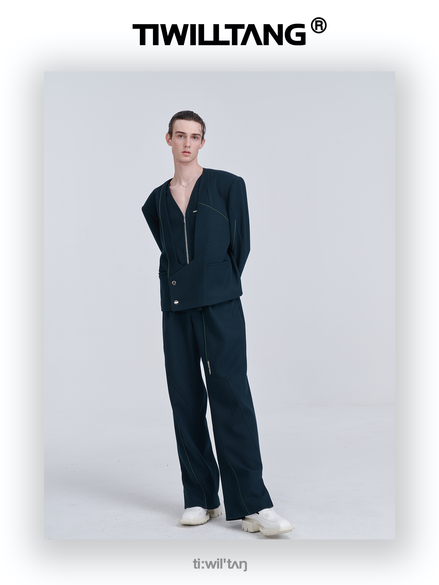 TIWILLTANG启世录“绅缦”无领开衫拉链解构呢西装秋季高级感西服