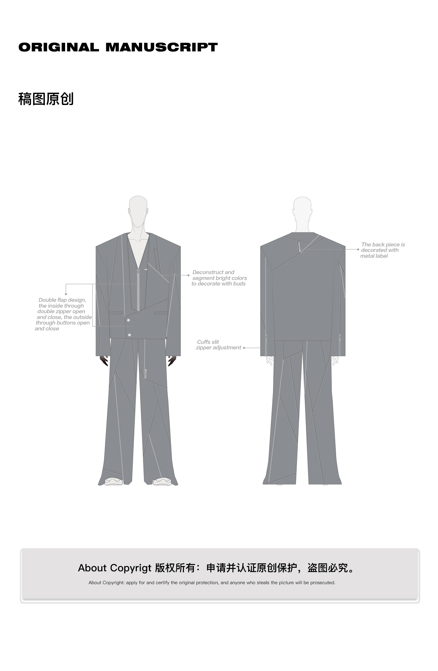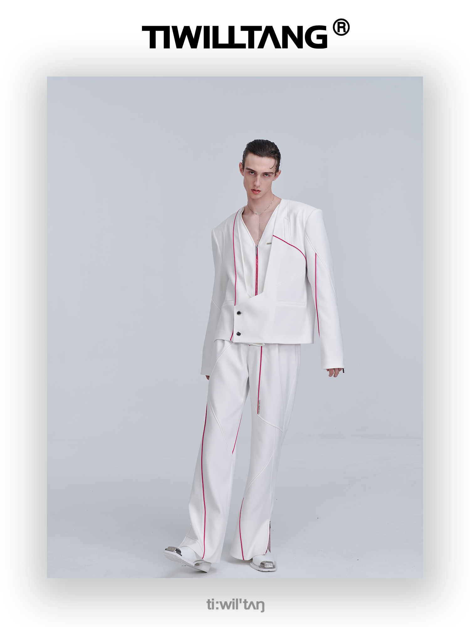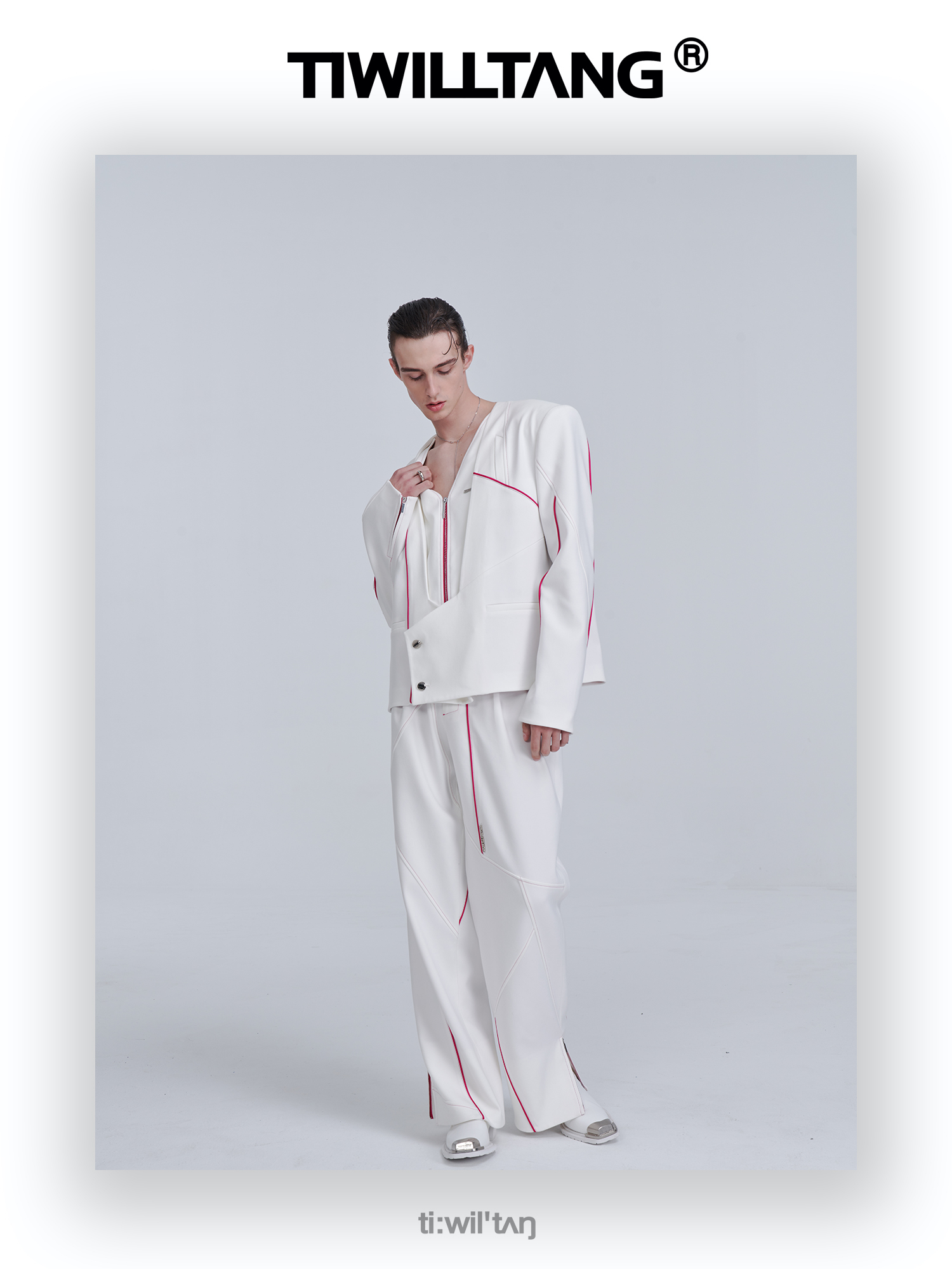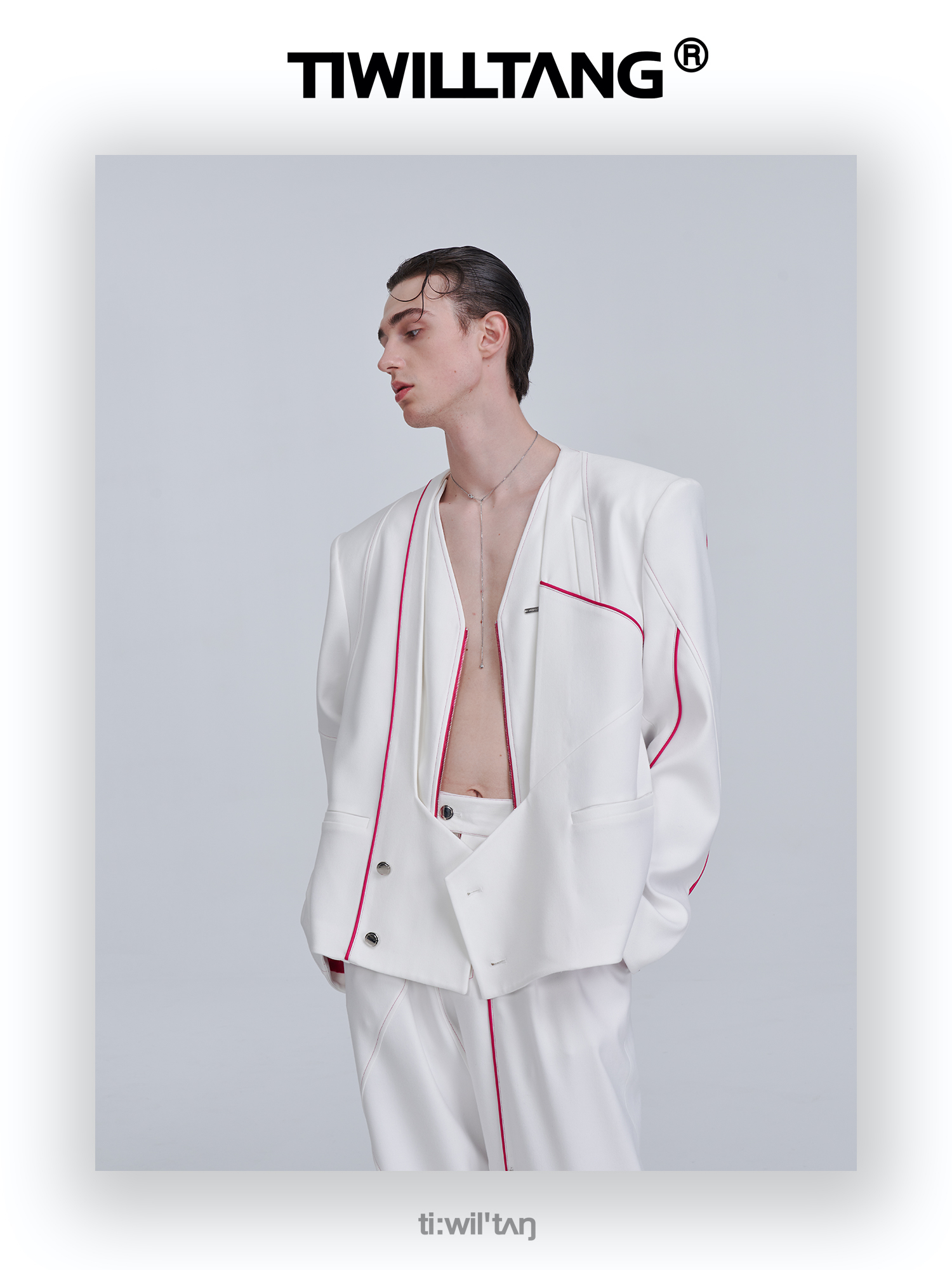 TIWILLTANG启世录“绅缦”无领开衫拉链解构呢西装秋季高级感西服