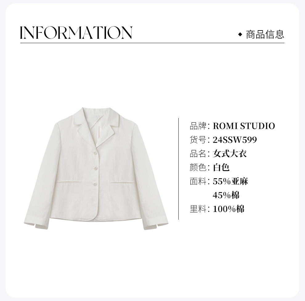 ROMI STUDIO “法式优雅” 衣橱经典亚麻棉半麻衬西装外套24SSW599