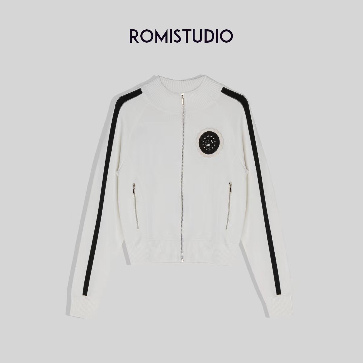 ROMI STUDIO【高定系列】百搭休闲复古白长袖短款棒球服开衫 M3621