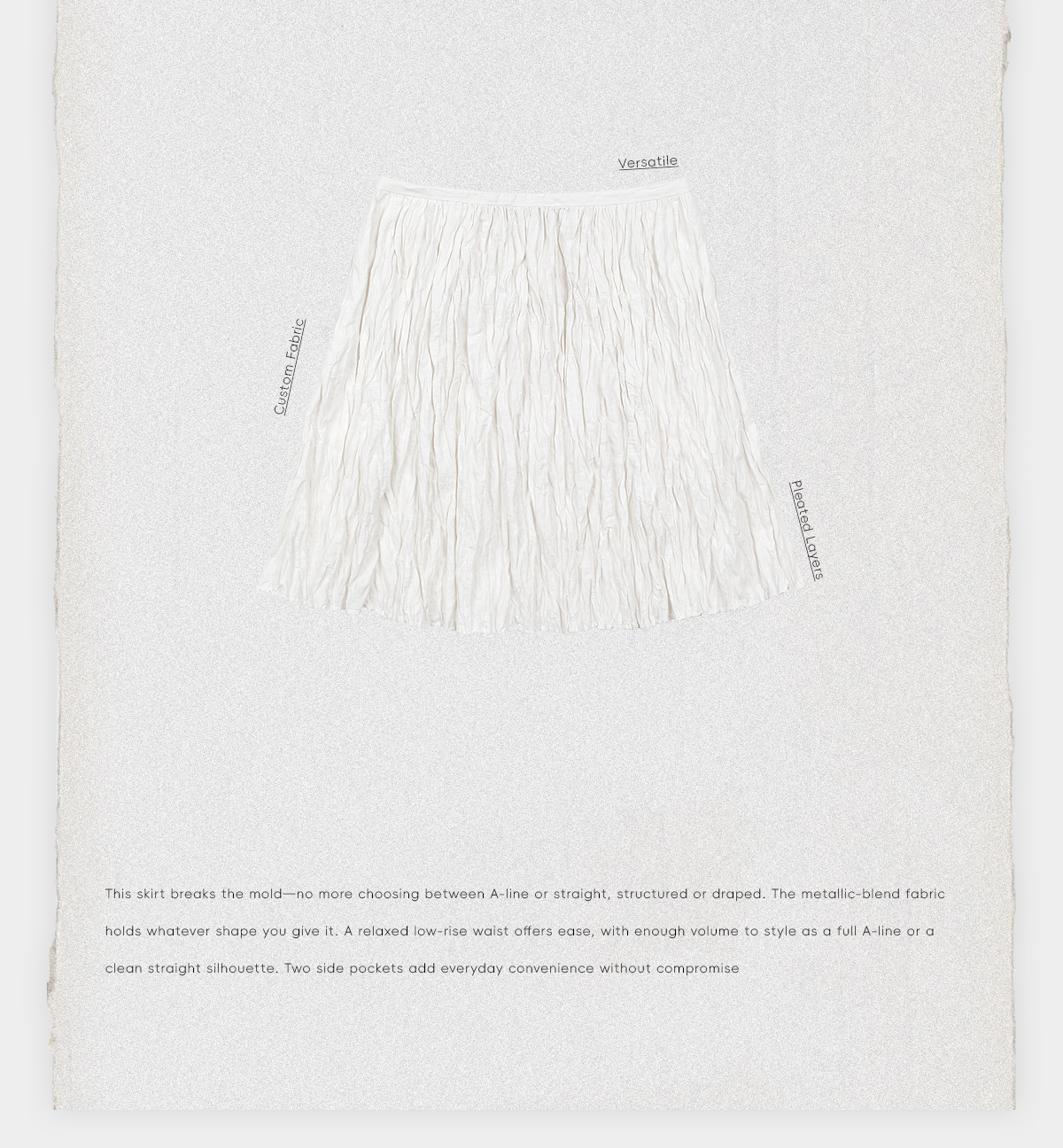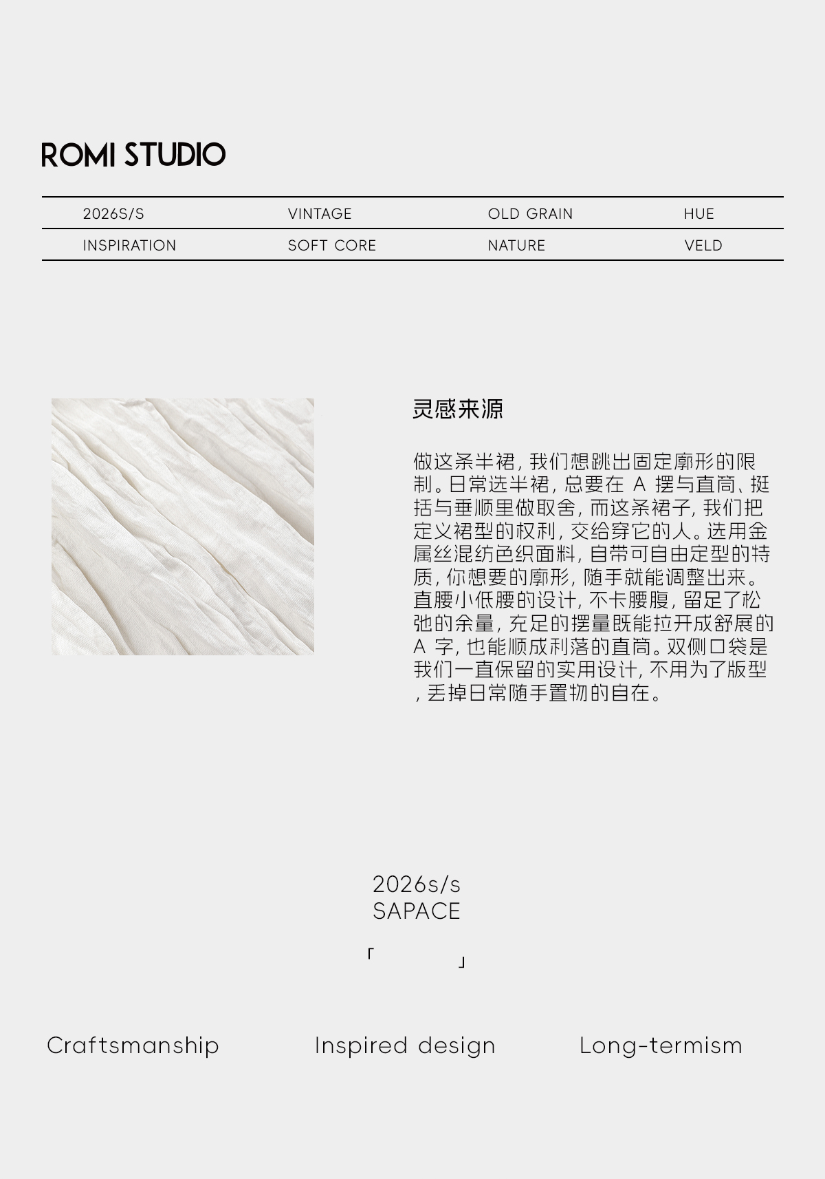 ROMI STUDIO"松弛灵动"金属丝可定型低腰A摆半身裙 RWDSXY2427