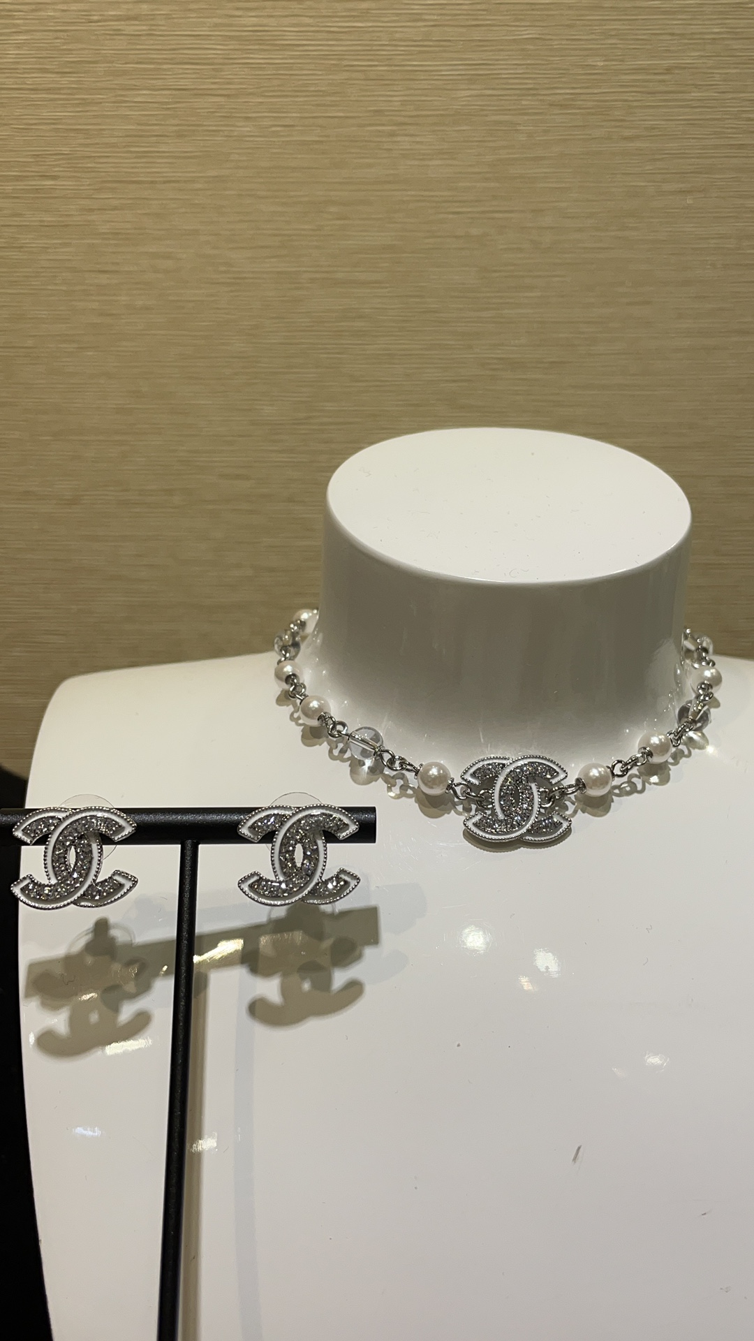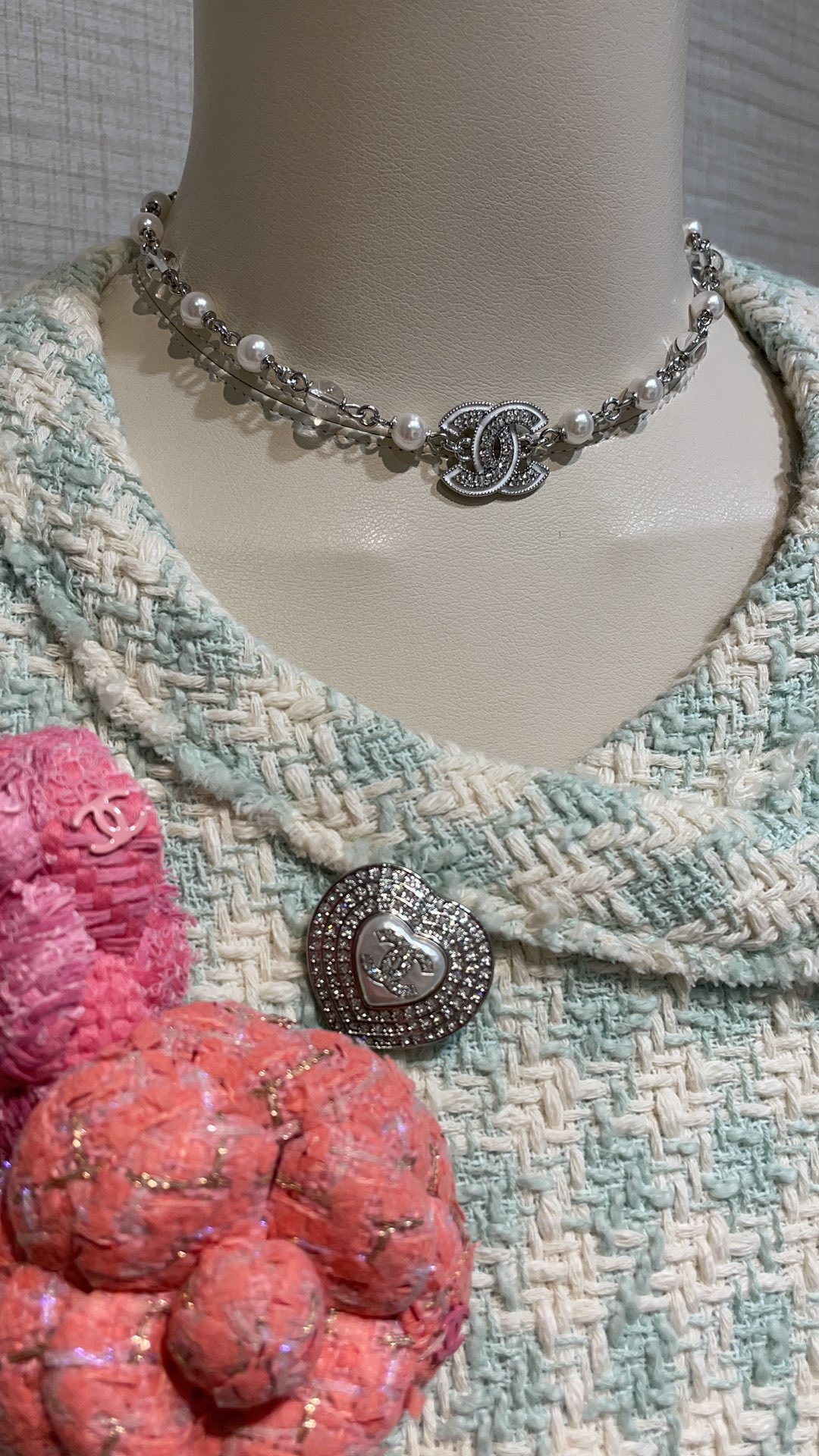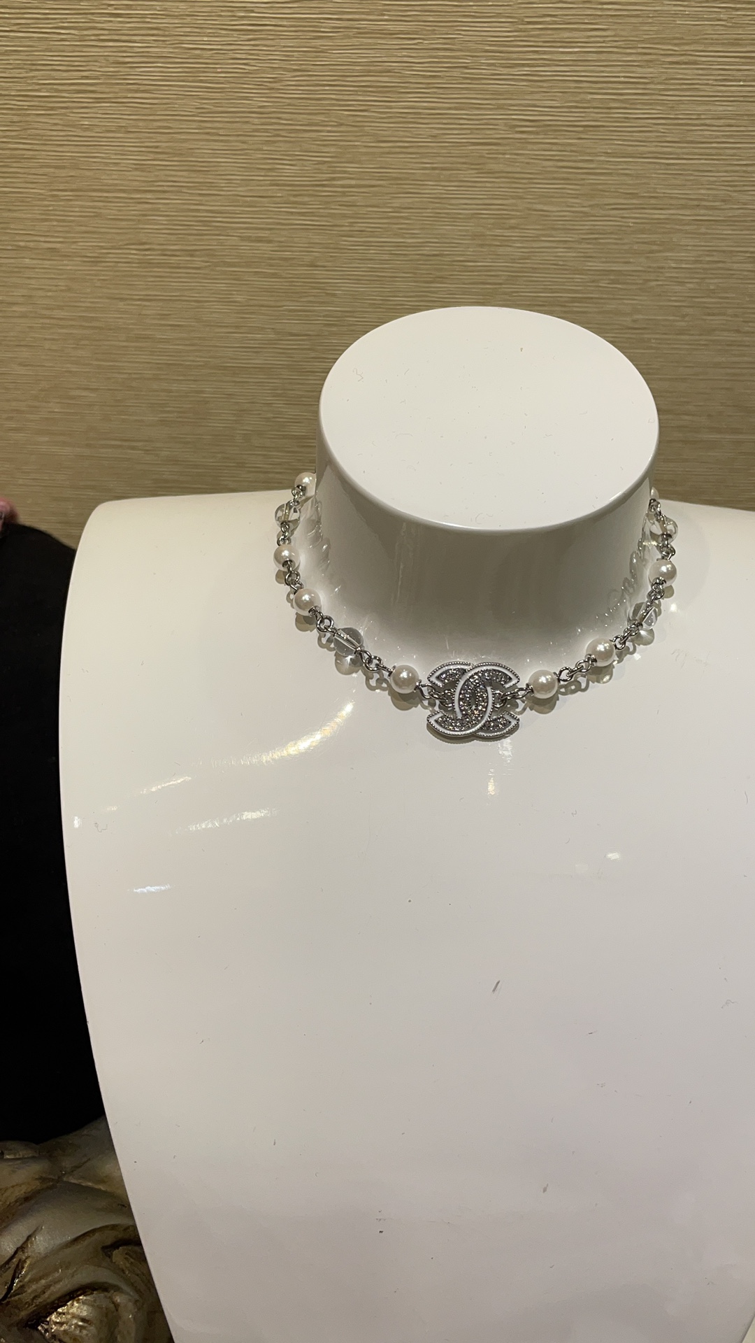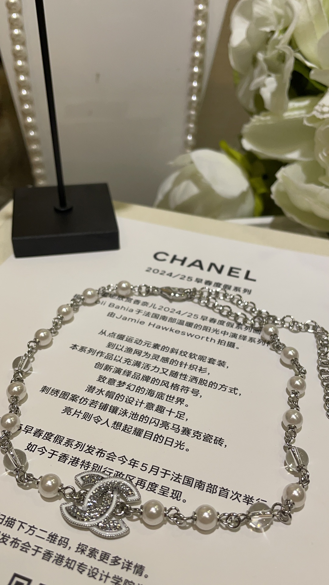 香奶奶 25C新款白色珐琅水钻双C珍珠项链