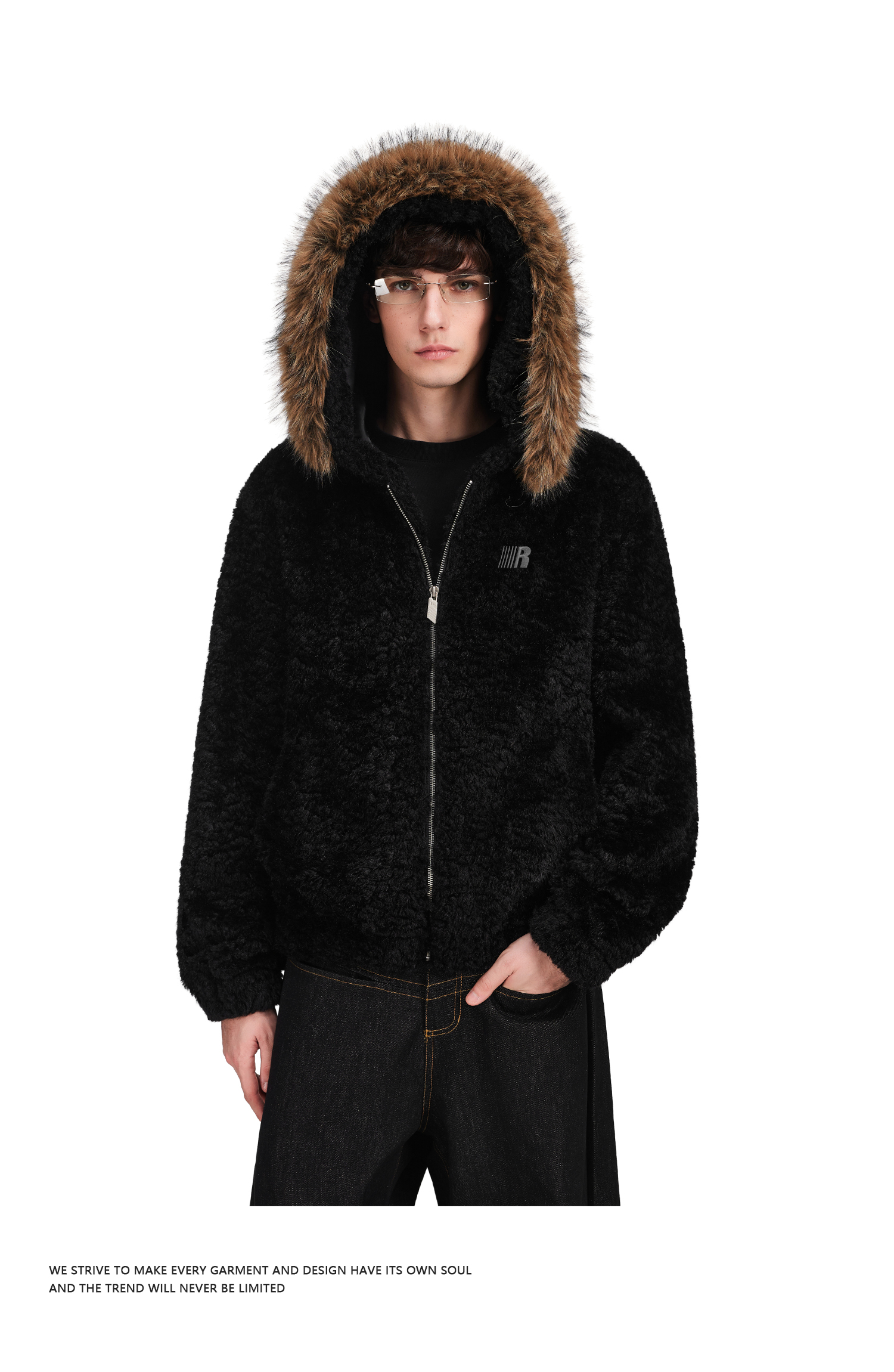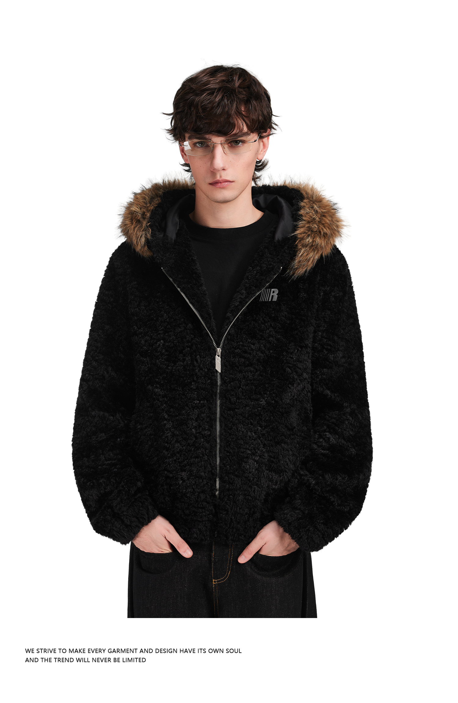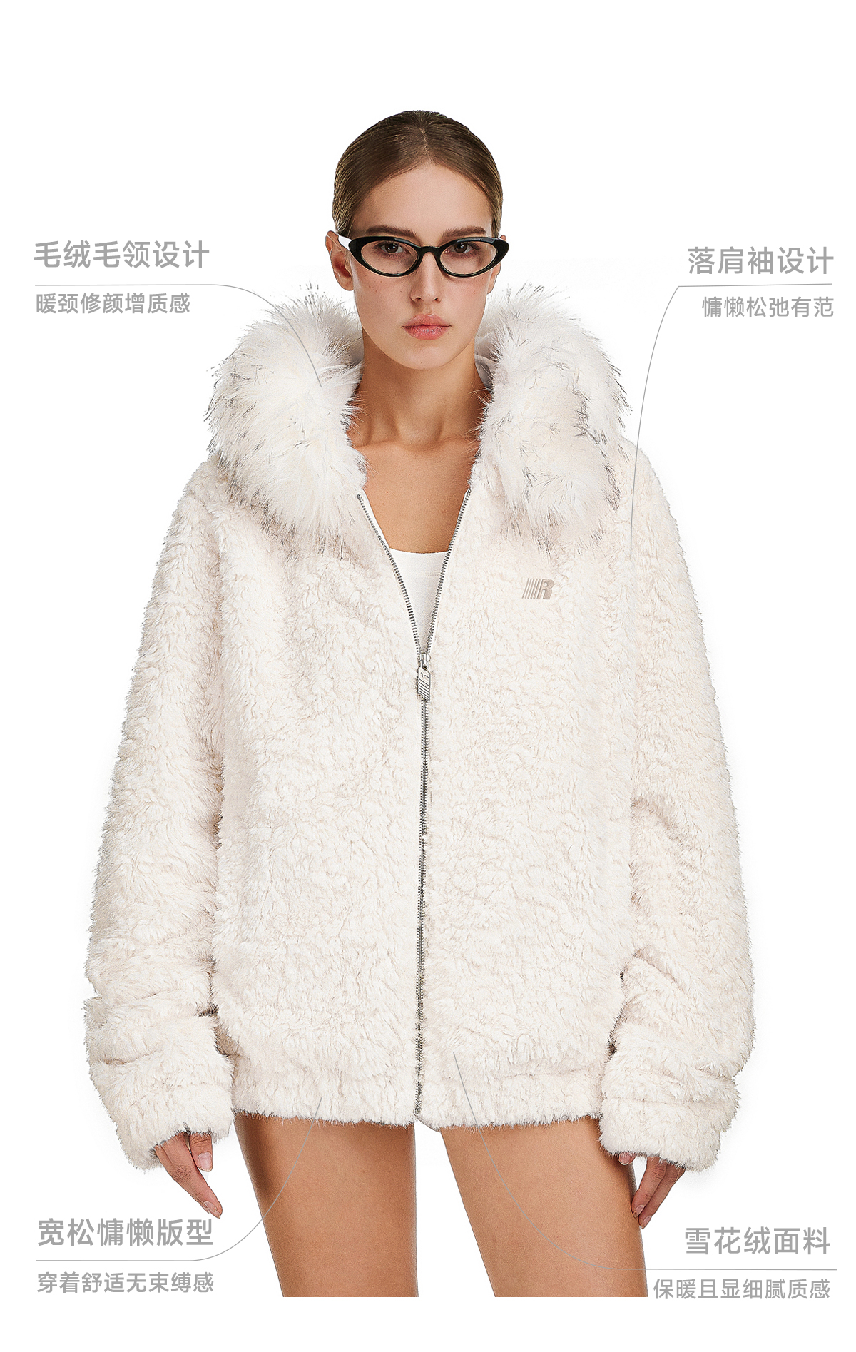 FDR官方店 巨好看独特上衣男可拆卸毛领羊羔绒毛毛厚外套女款秋冬