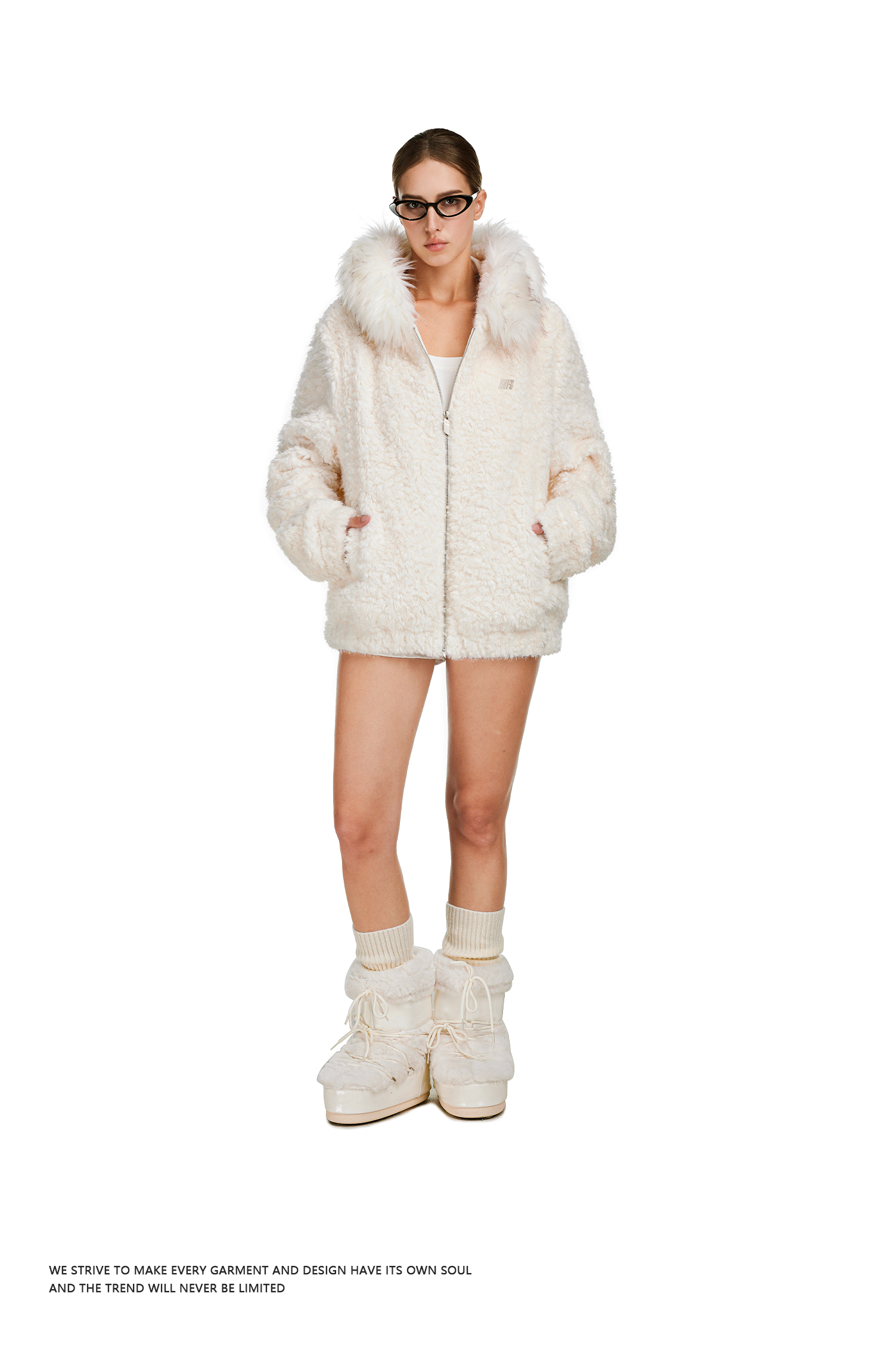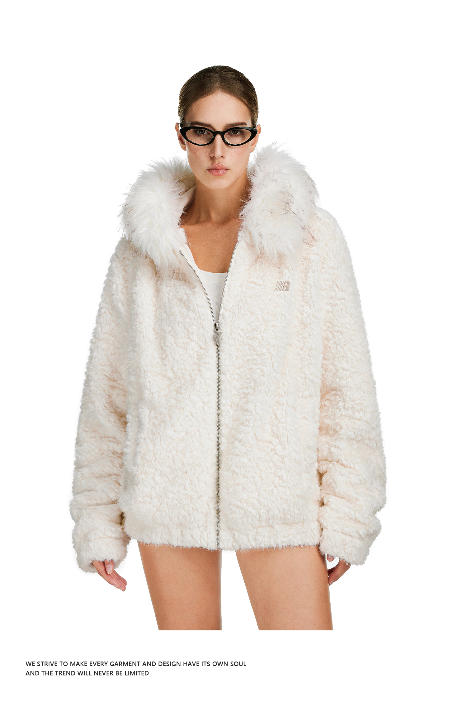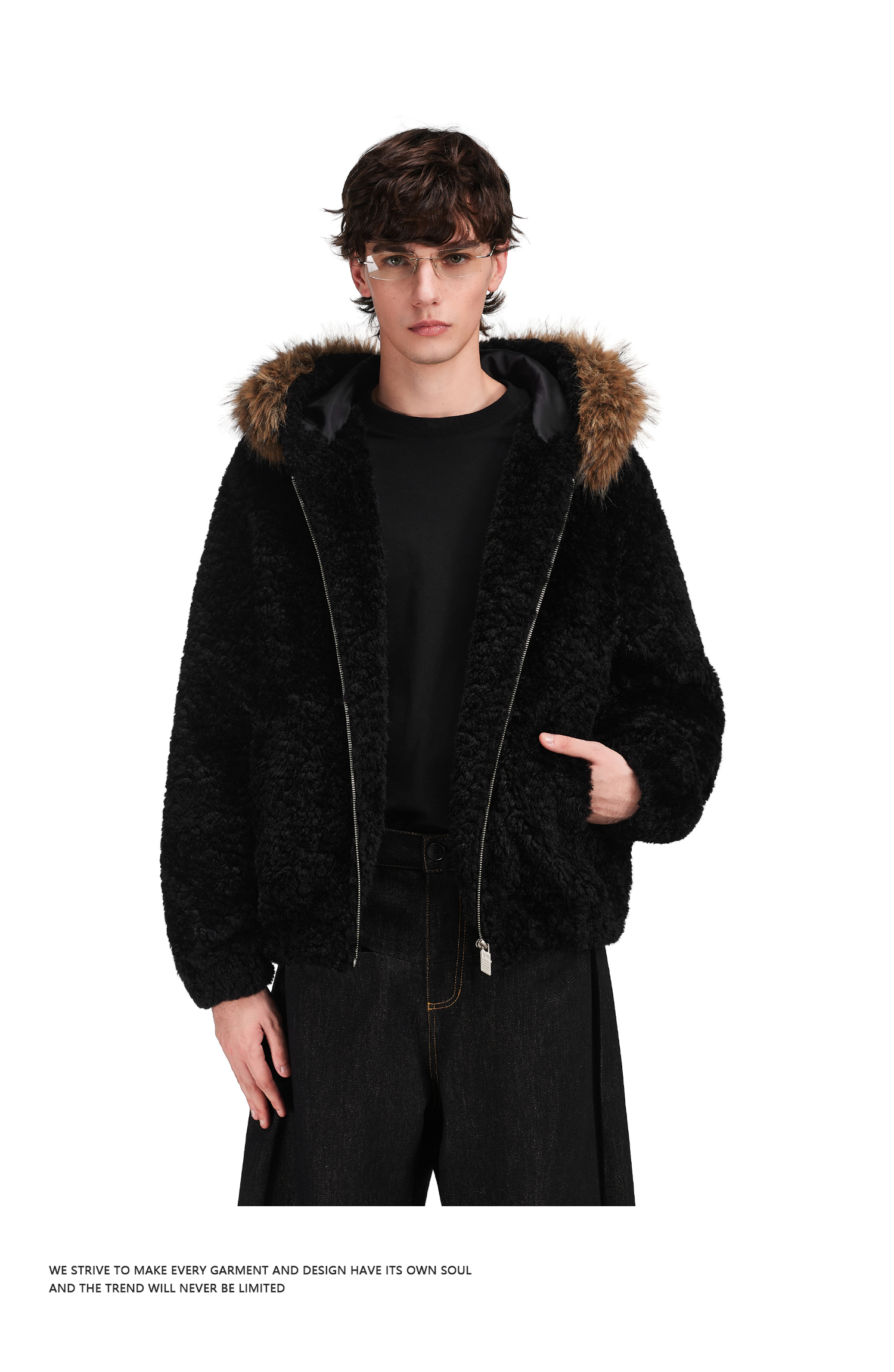 FDR官方店 巨好看独特上衣男可拆卸毛领羊羔绒毛毛厚外套女款秋冬