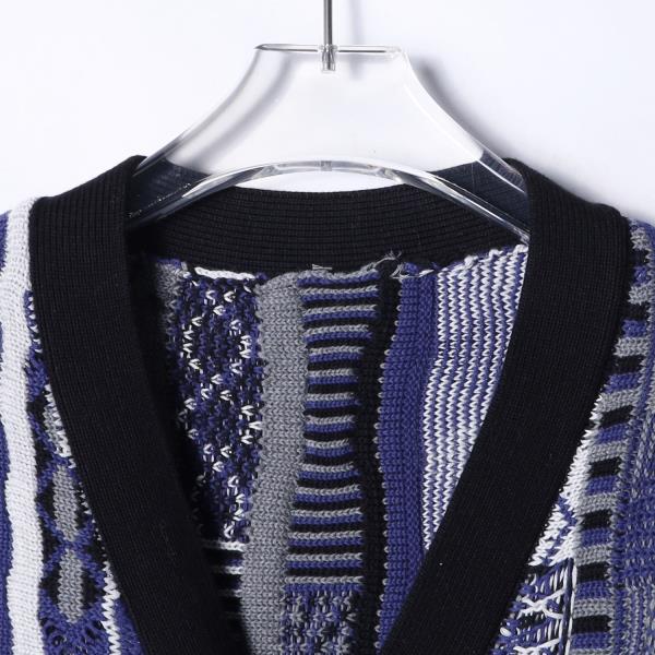 SDSA秋冬新款痞帅男装韩版撞色竖纹纽扣V领针织衫百搭开衫毛衣