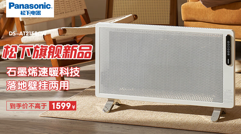 松下(Panasonic) 电暖器踢脚线取暖器家用石墨烯对流电暖气片IP24级防水浴室移动地暖 DS-AK2238CW