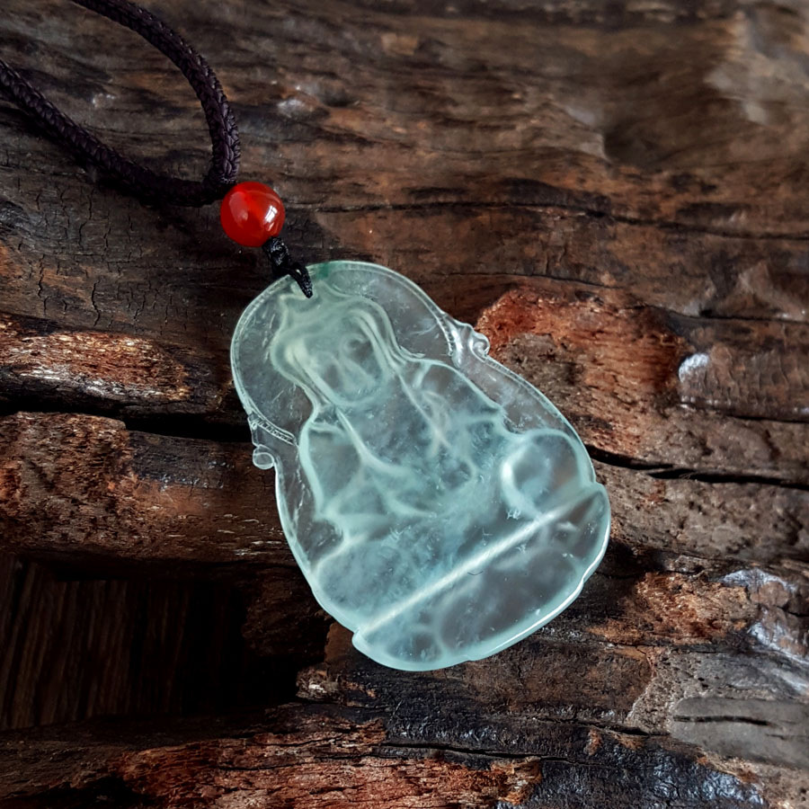 名称 | 天然收藏级老坑木那高冰种观音坐莲(平安安乐)翡翠吊坠项链 |