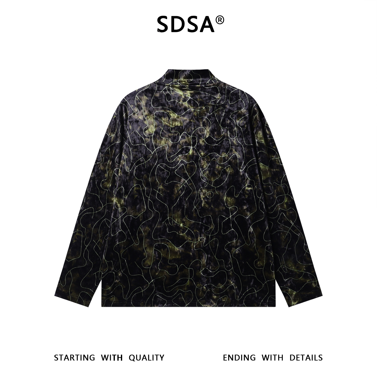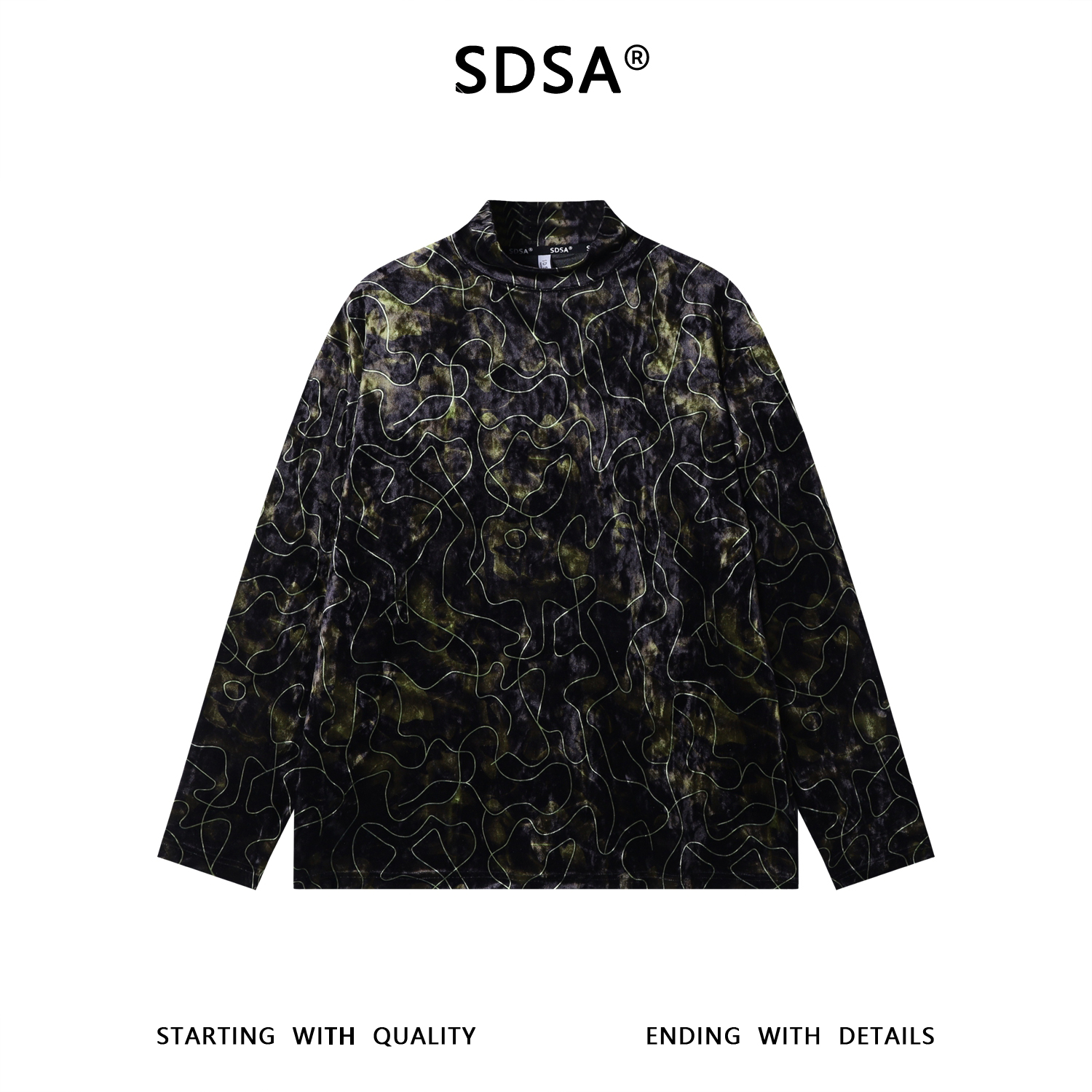 SDSA男士秋冬新款痞帅男装撞色植绒凌乱线条半高领长袖T恤百搭潮