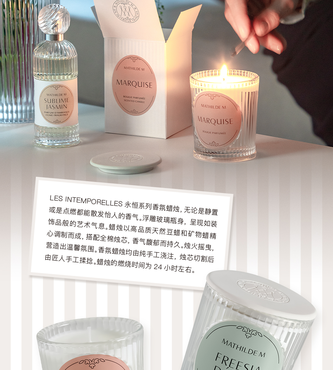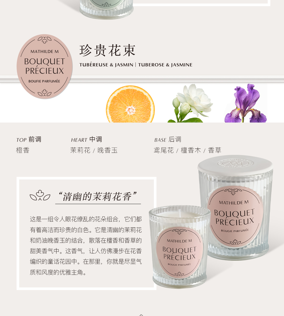 法国MATHILDE M香薰蜡烛室内家用持久留香家居香氛轻法式玻璃摆件