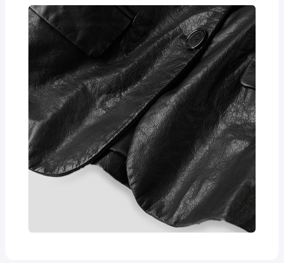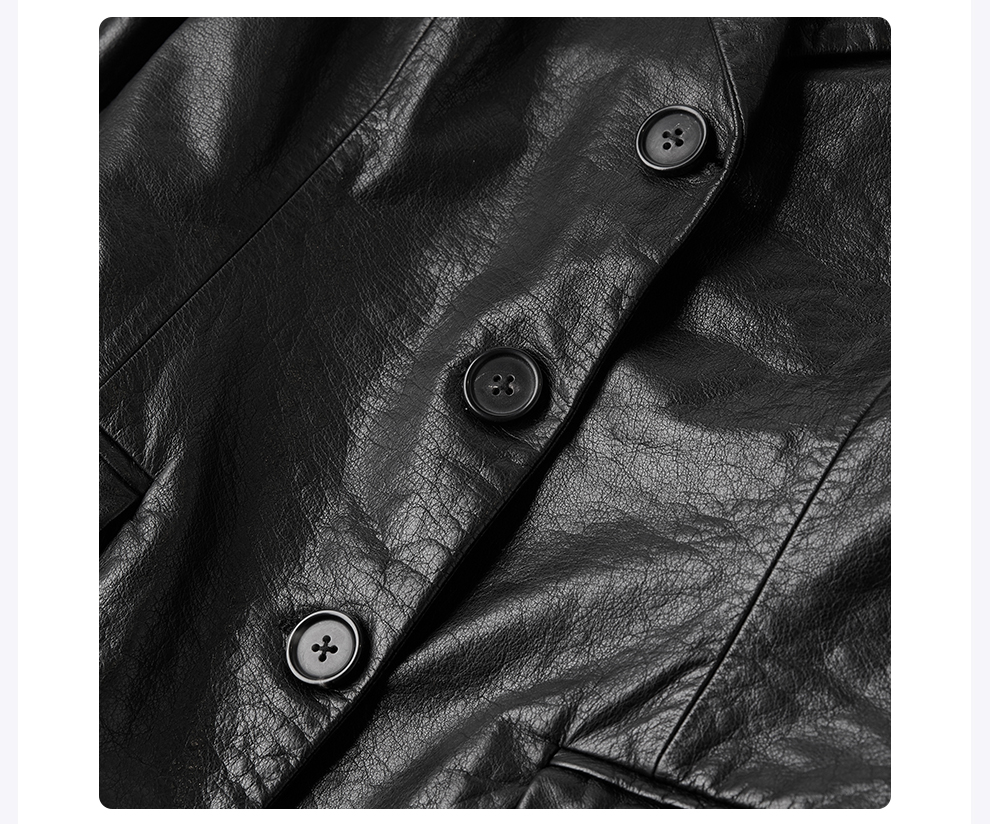 ROMI STUDIO“率性朋克”牛皮革柔软舒适竖腰线皮外套 RWCWWG5155