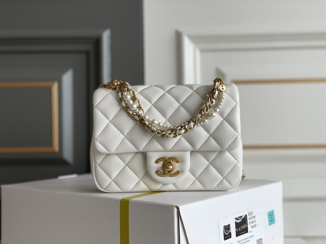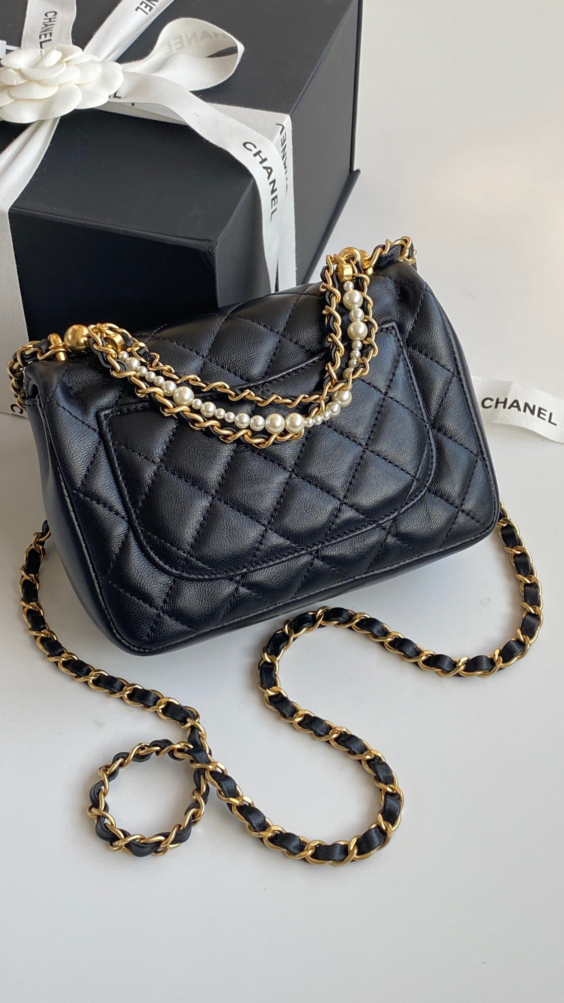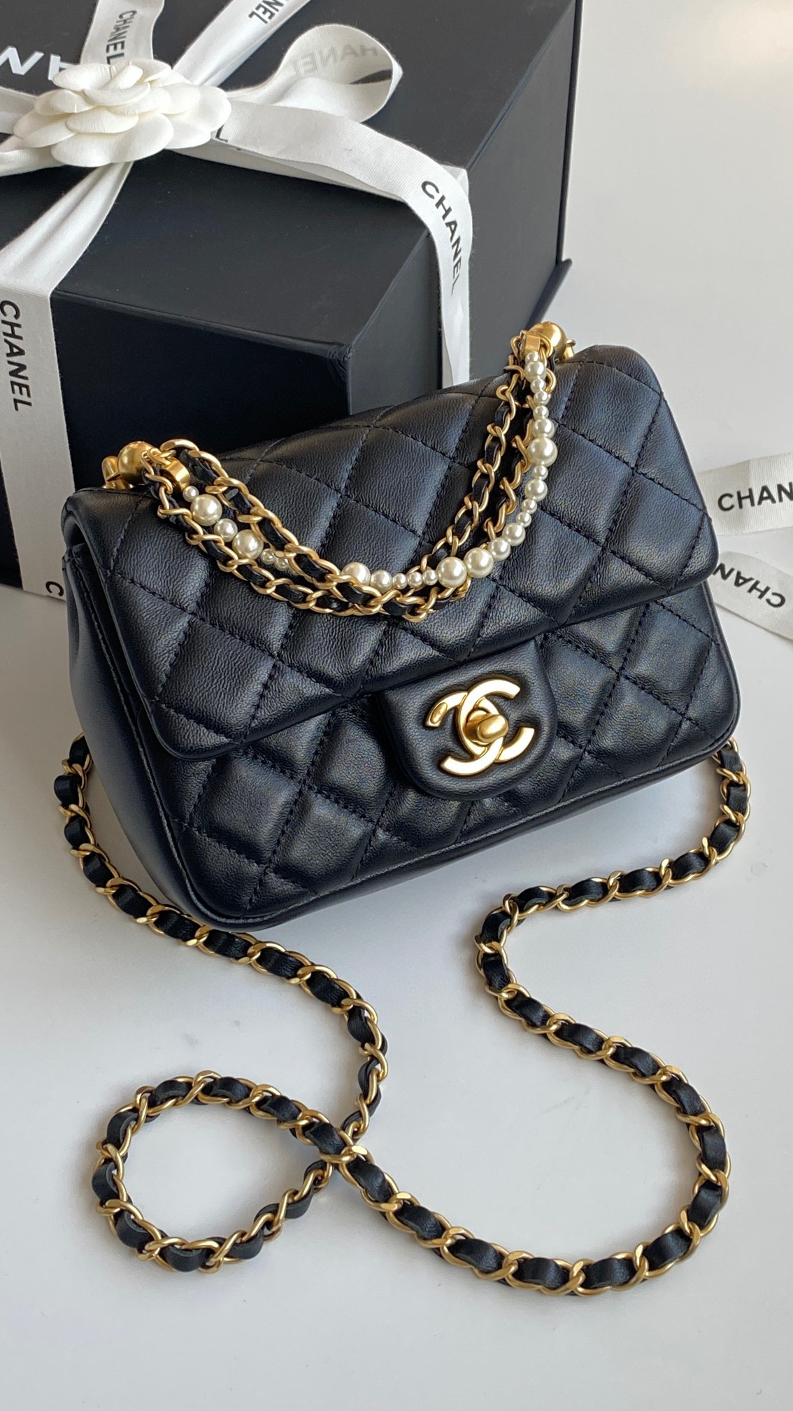 香奶奶 24P方胖子珍珠链条口盖包 (正品皮)