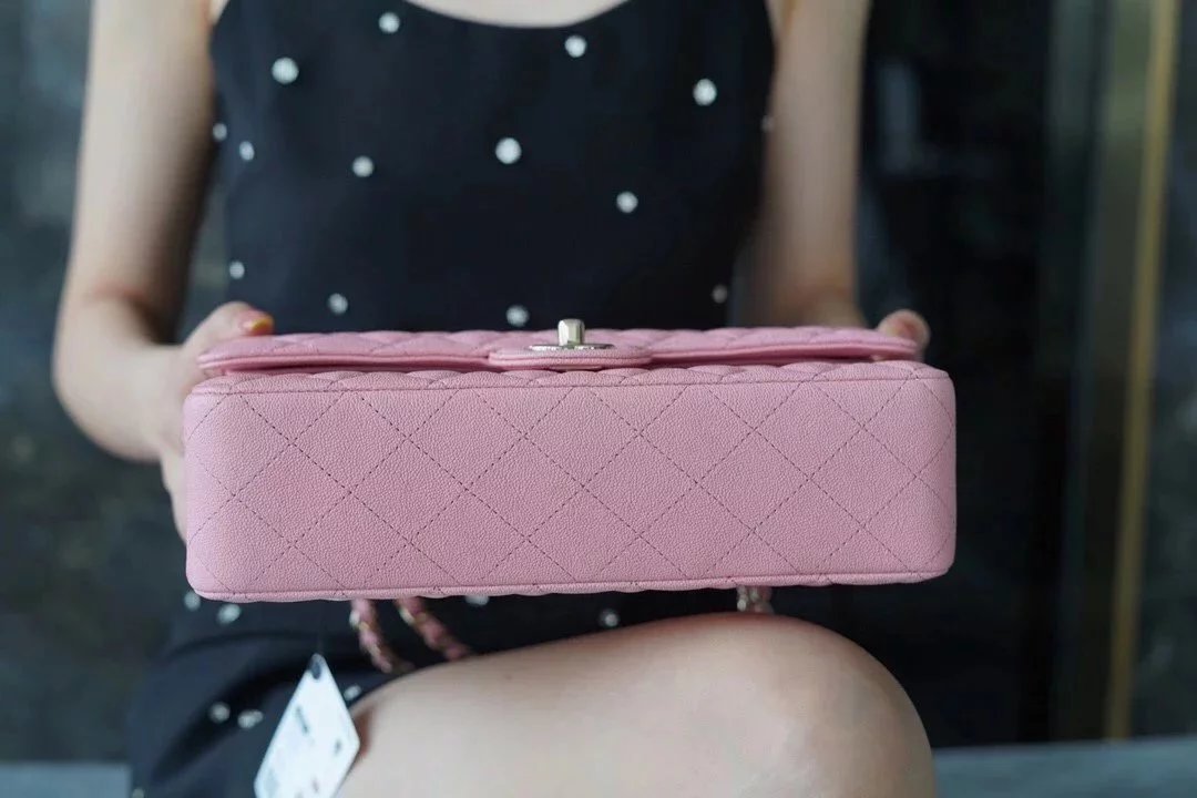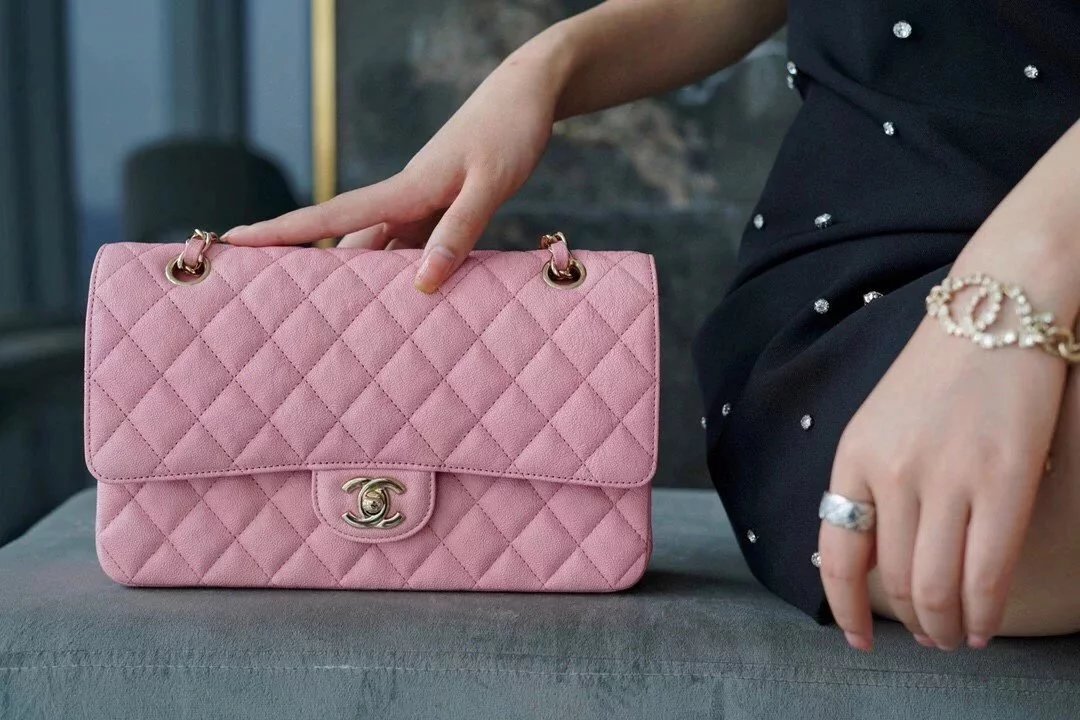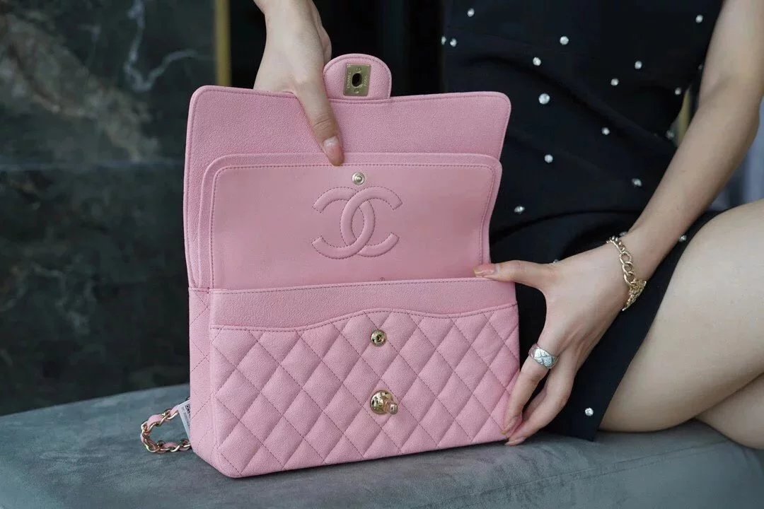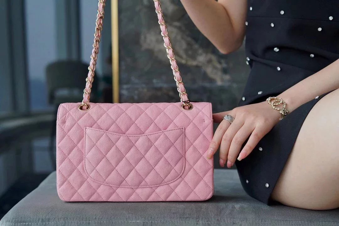 ? ??????? ???? |水洗胎牛 中号 ?粉红 意大利?? ?????原厂水洗胎牛?,颗粒手感色泽堪称人间,十一年纯手工主打经典款,正面翻盖与包身走线契合,包边菱格正好为1/2,精益求精为您呈现的神韵! 尺寸:25cm ?:11120032