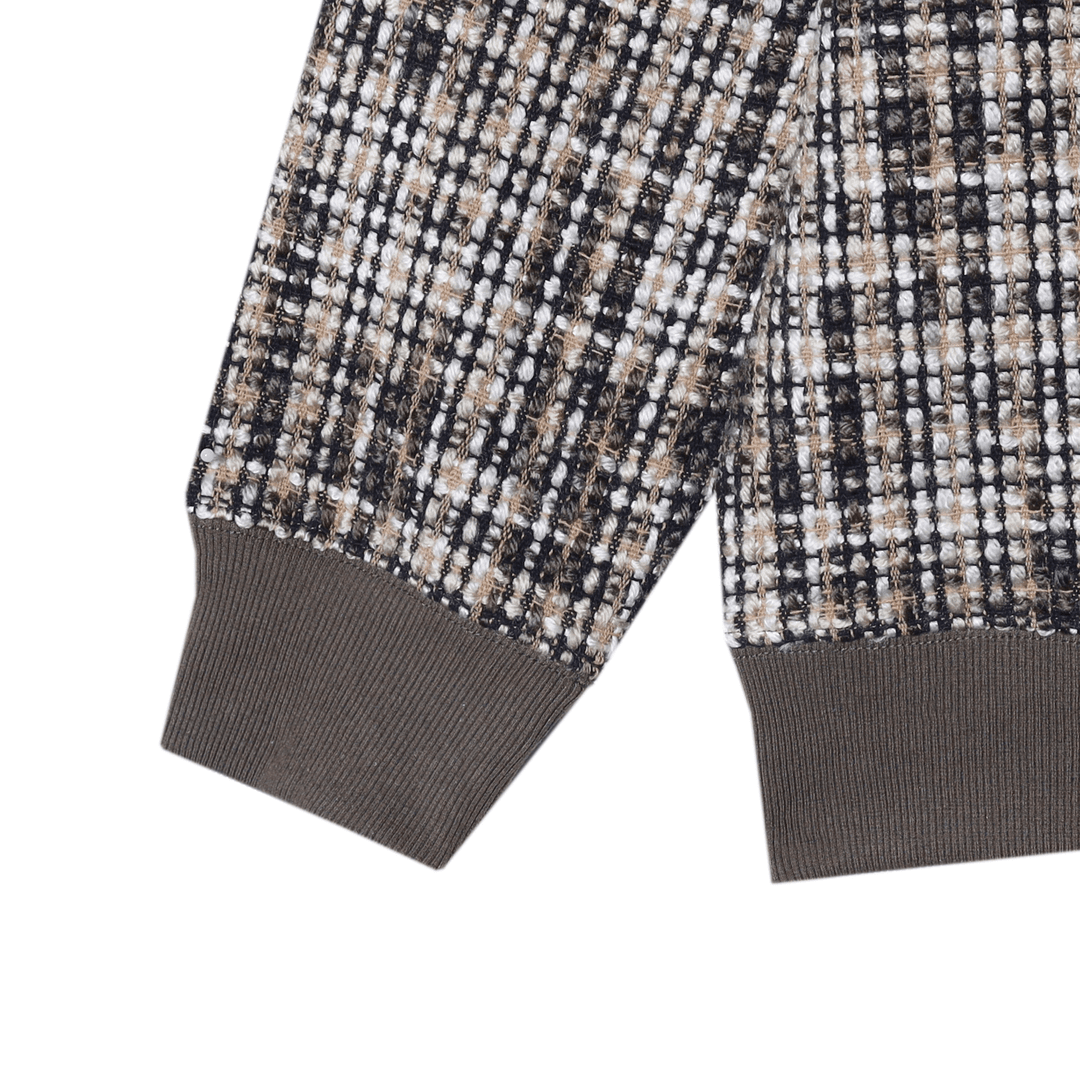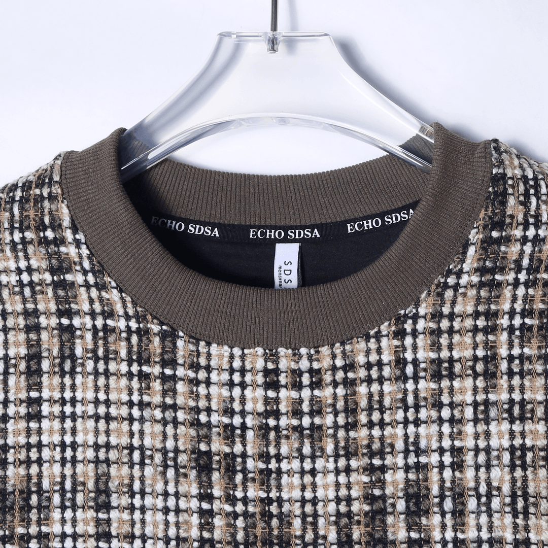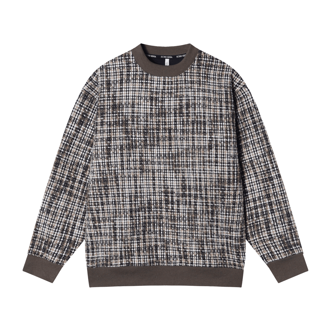 55165新款格纹提花拼接假两件复古简约国潮宽松百搭长袖痞帅休闲