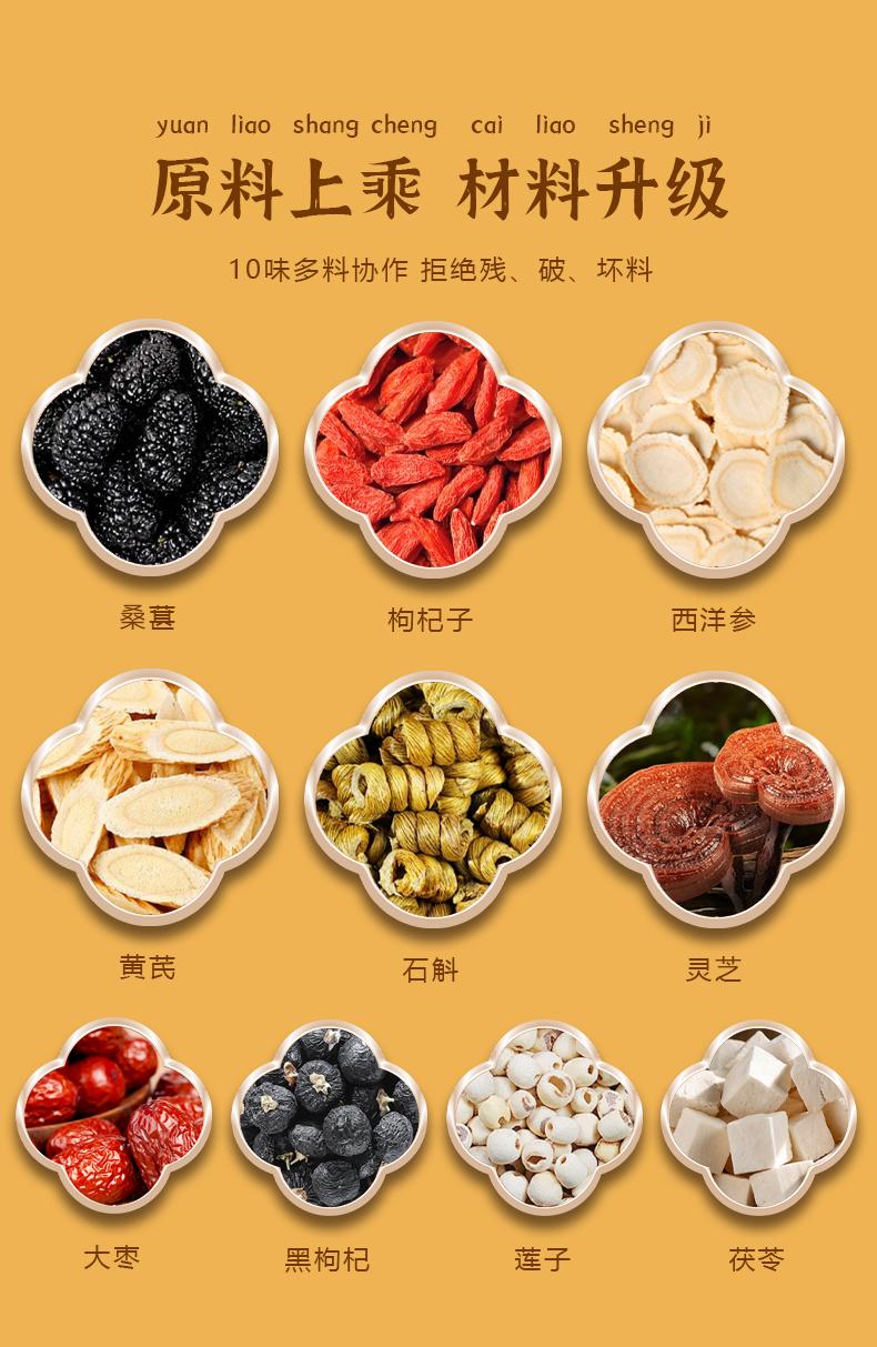 【旗舰正品】西洋参黄芪石斛灵芝茶 枸杞桑葚红枣茶9味草本甄选好料