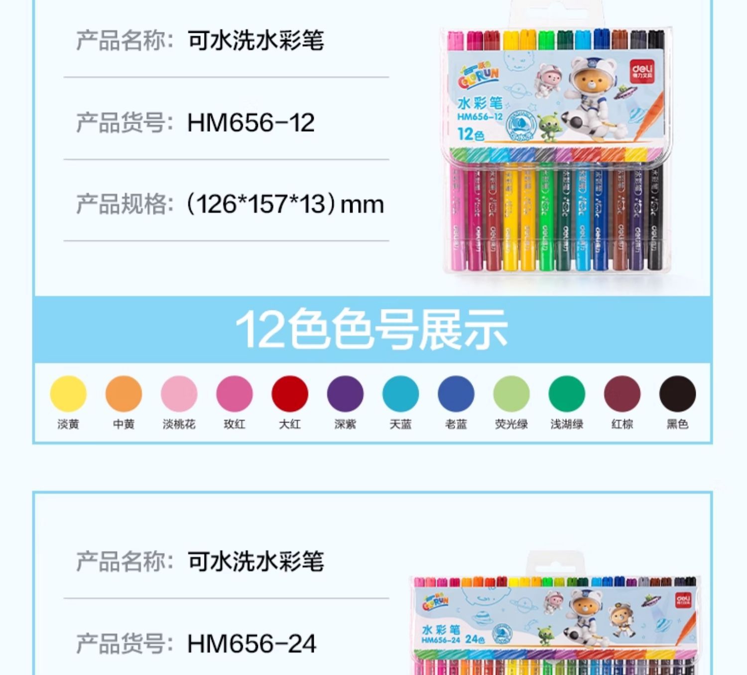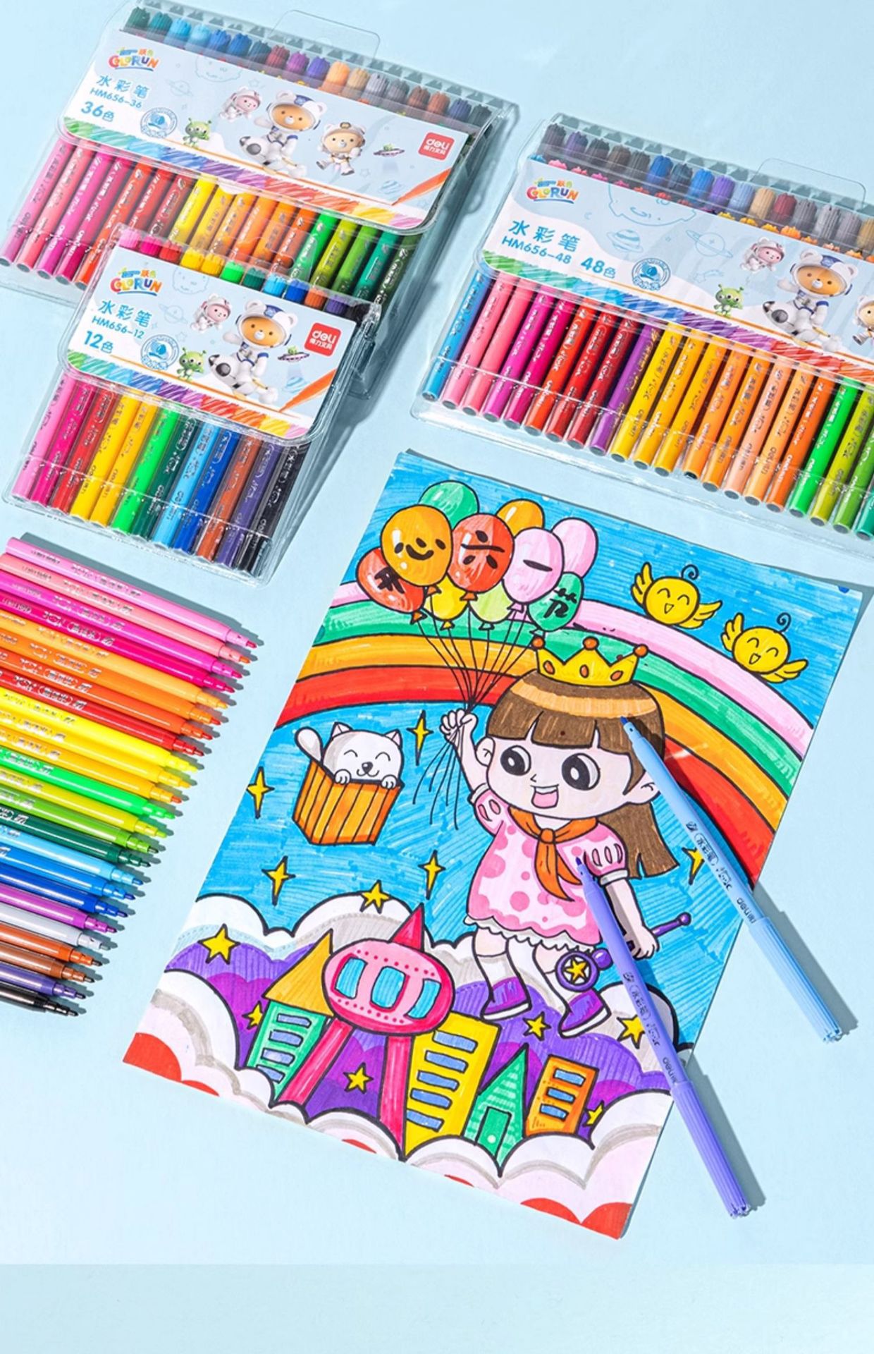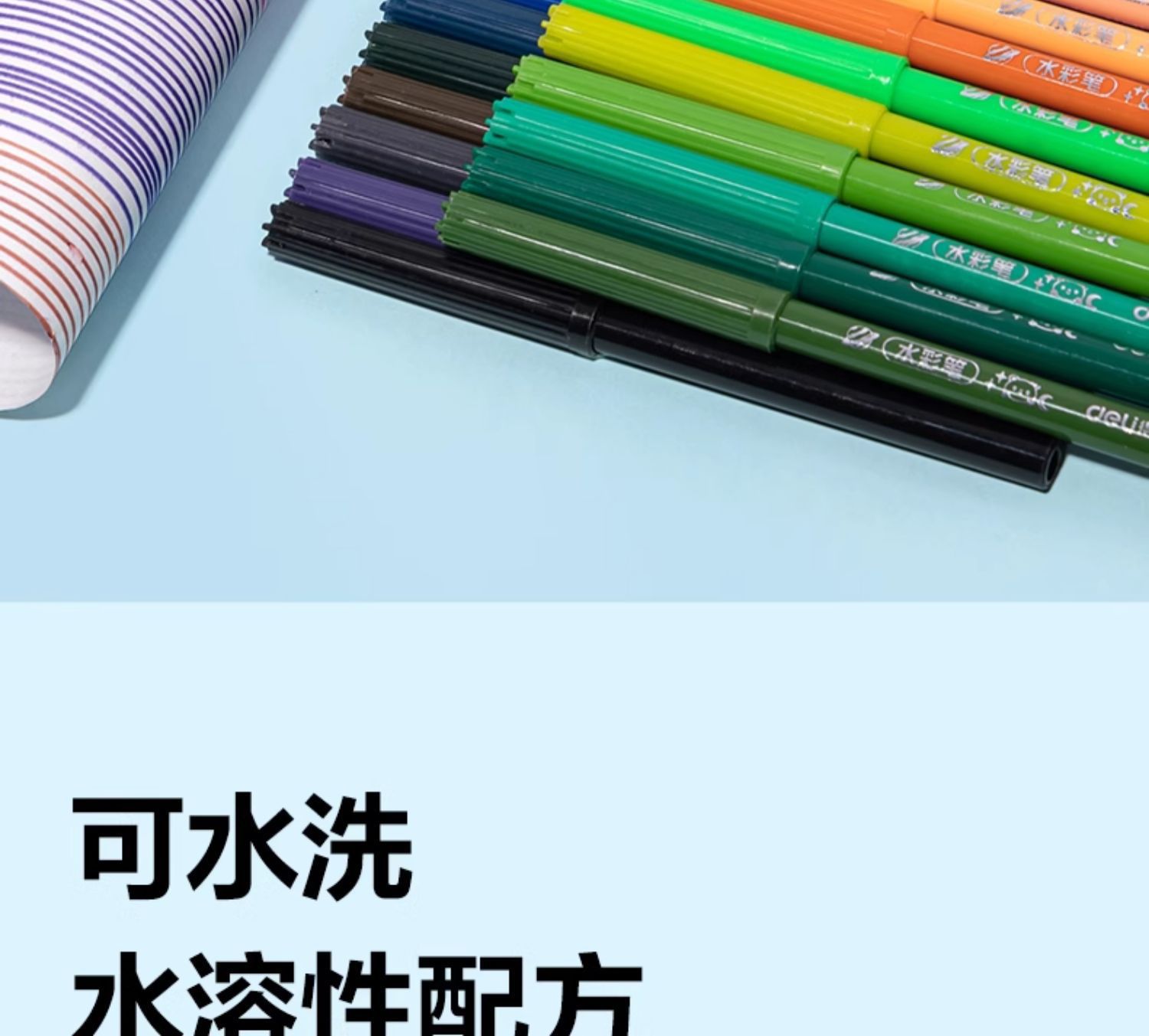 「水彩笔!48色」得力水彩笔可水洗48色袋装彩虹不脏手小学生手抄报绘画水笔文具