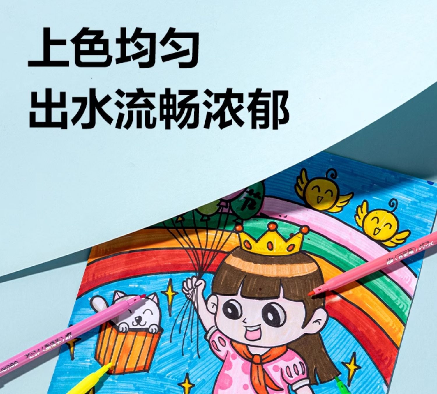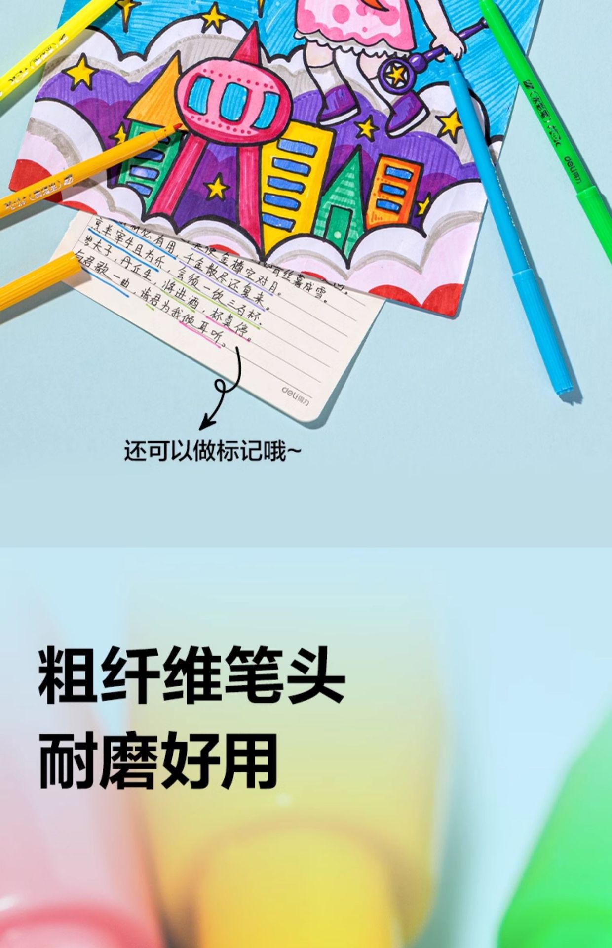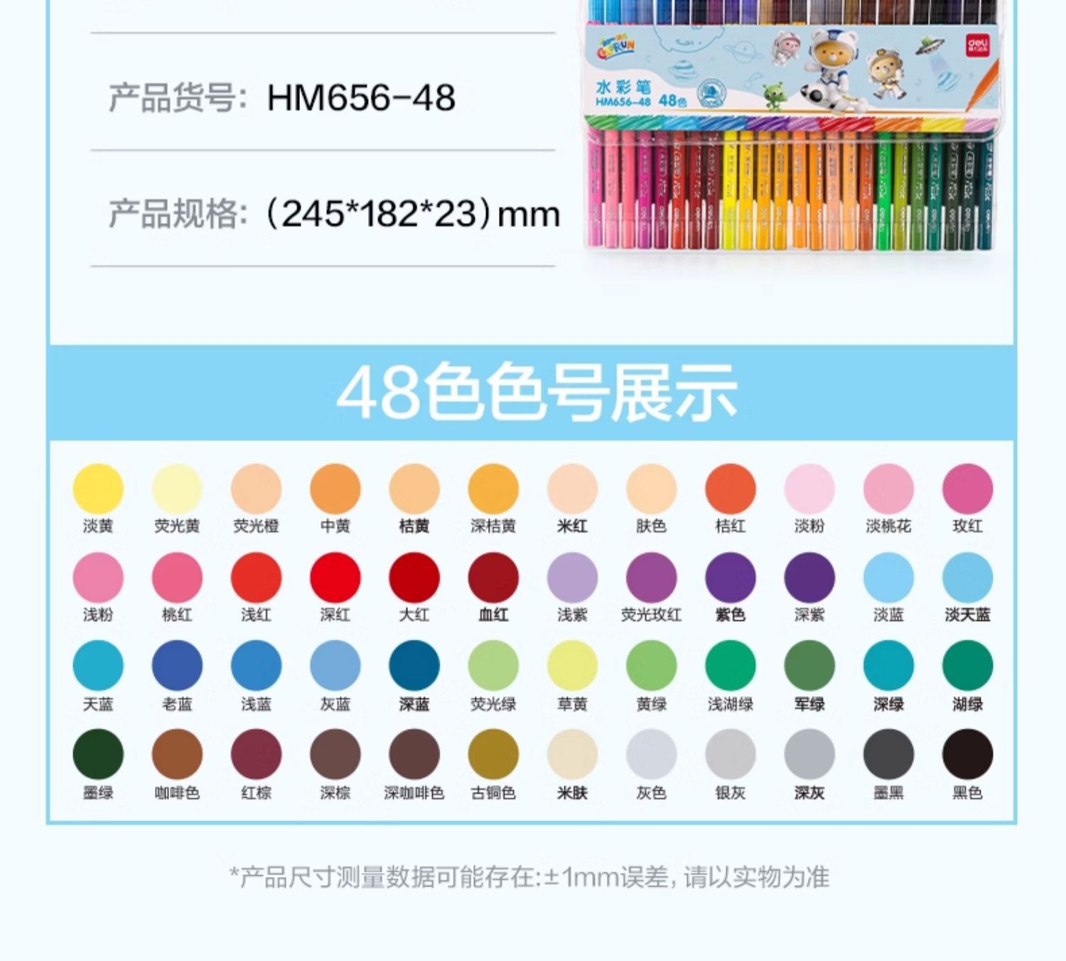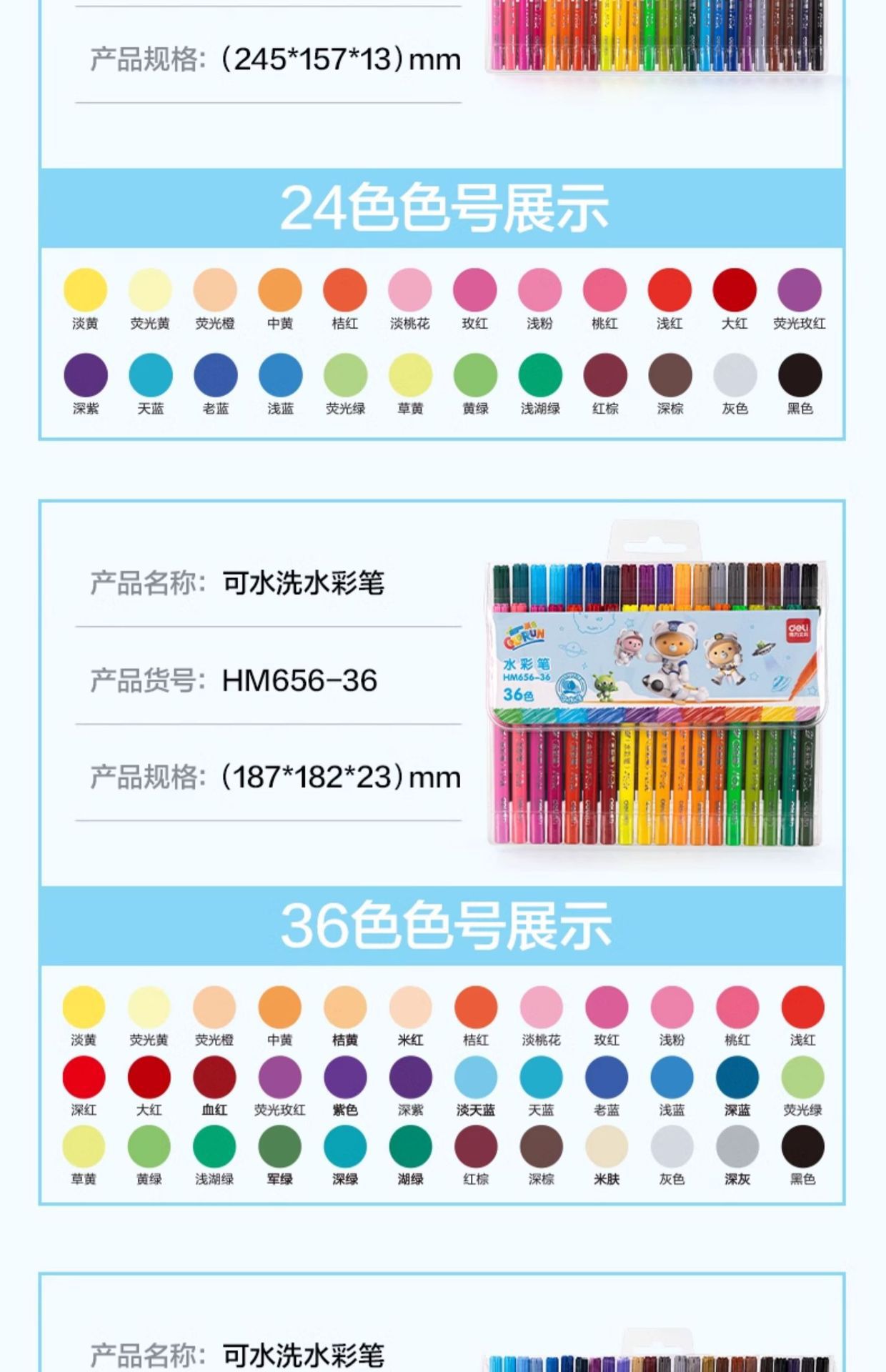 「水彩笔!48色」得力水彩笔可水洗48色袋装彩虹不脏手小学生手抄报绘画水笔文具