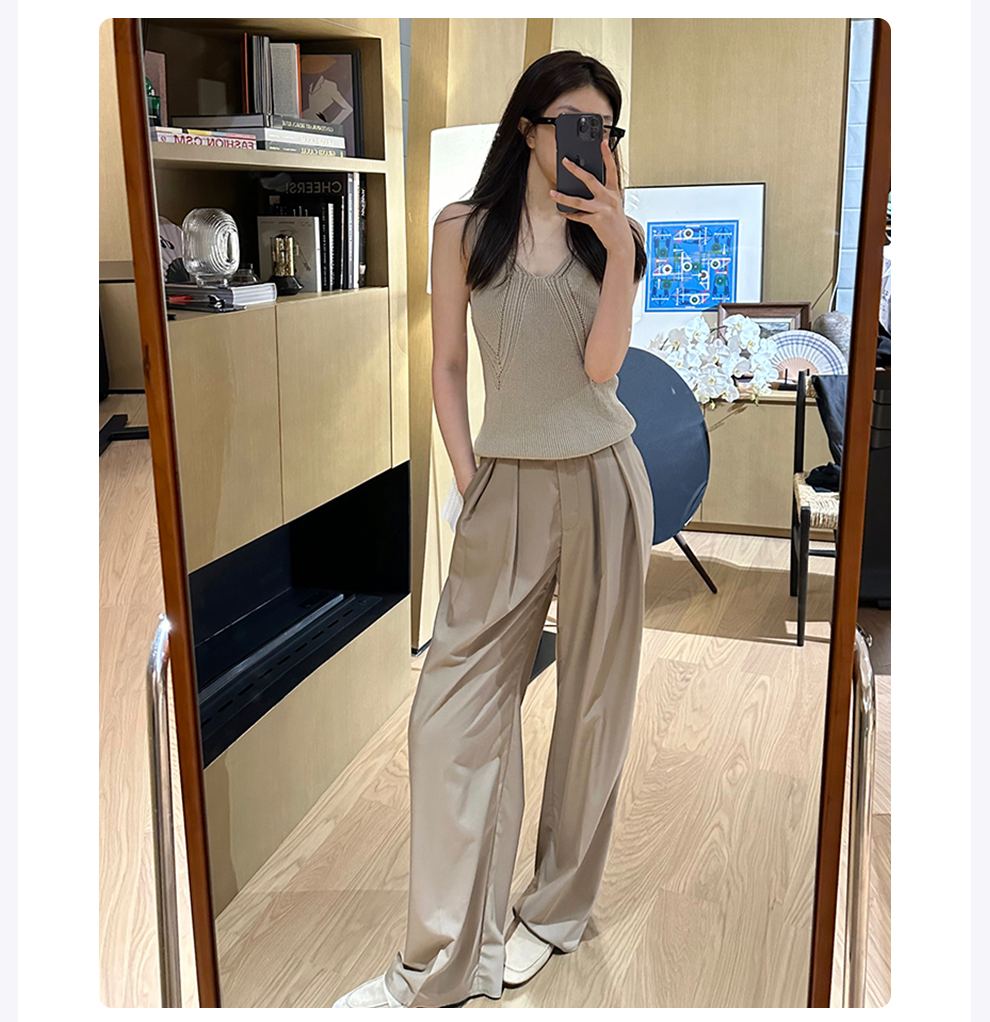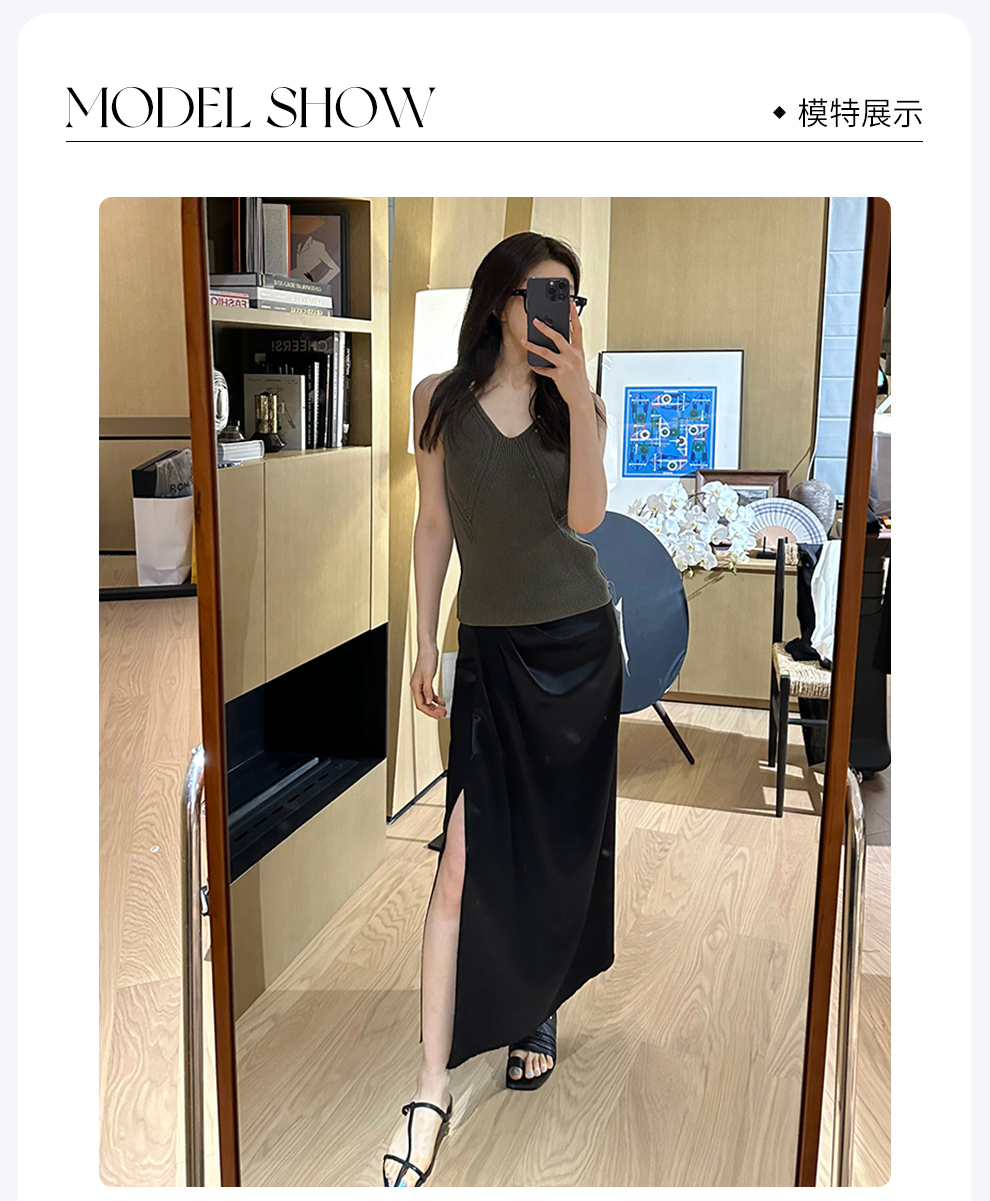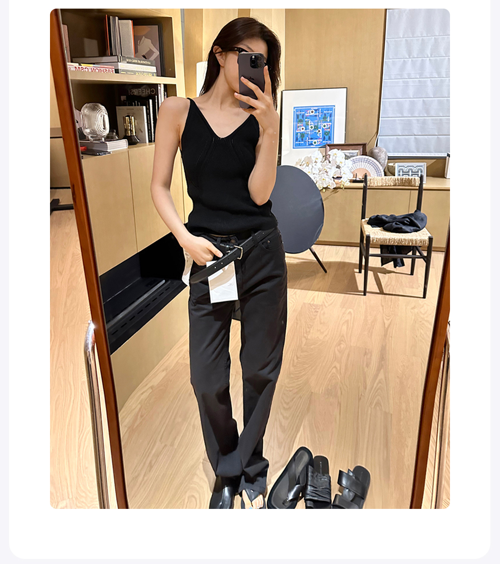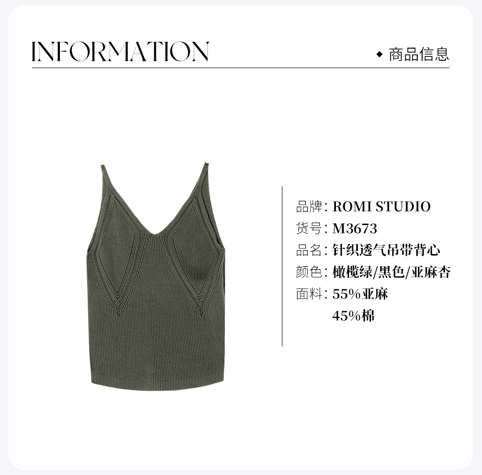 ROMI STUDIO“内外兼备”亚麻坑条修身V领针织透气吊带背心 M3673