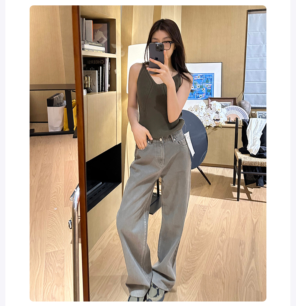 ROMI STUDIO“桃心牛仔”水洗石磨美式高腰垂坠牛仔长裤 RWCAX87047