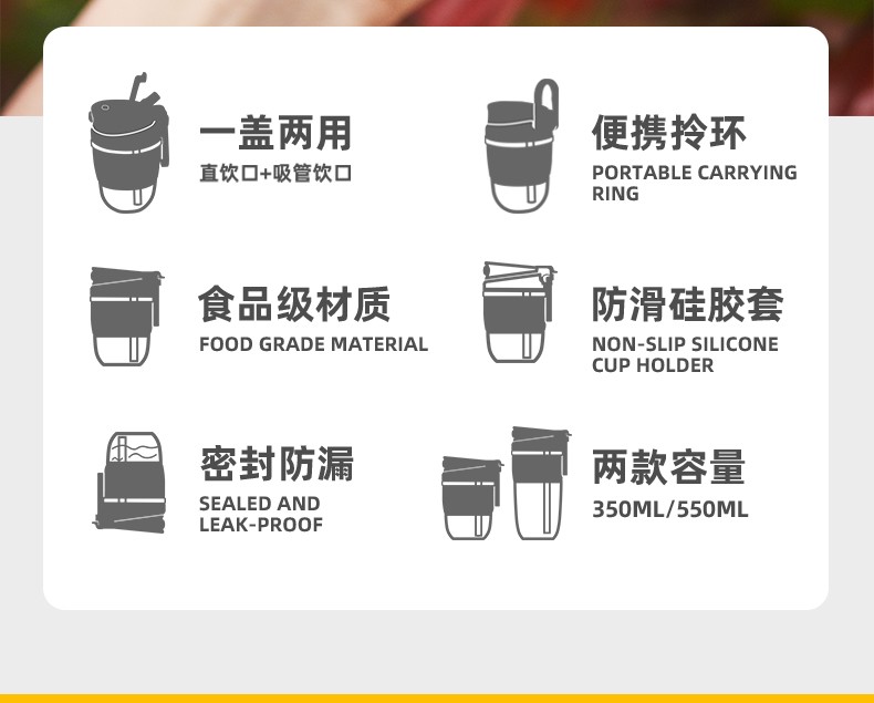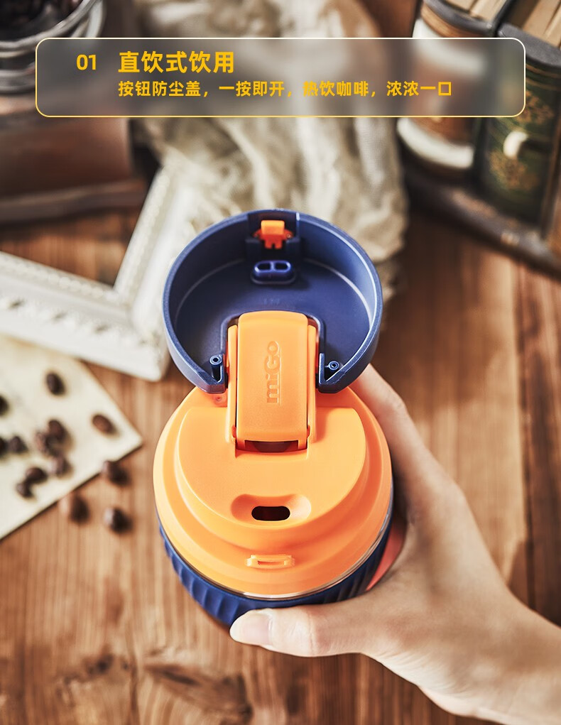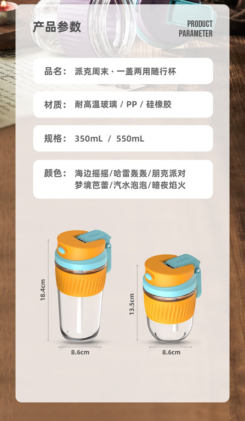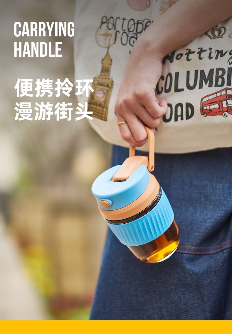miGo咖啡杯手持玻璃杯便携吸管杯男女士学生水杯情侣泡茶杯子 派克周末· 一盖两用随行杯
