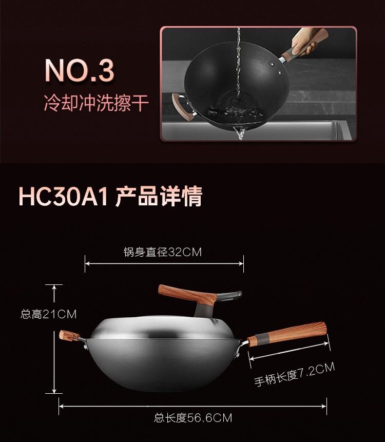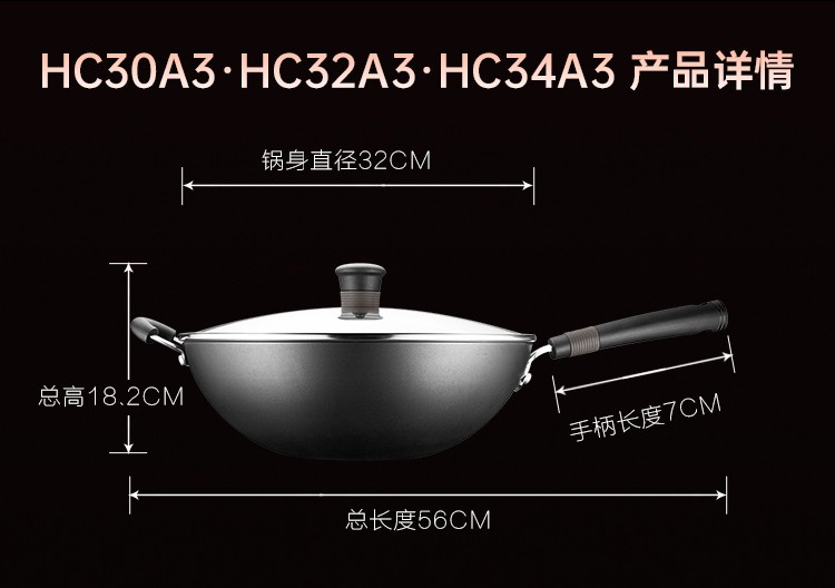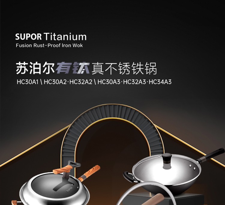 苏泊尔(SUPOR)炒锅 铁锅有钛真不锈燃气煤气平底炒菜锅家用无涂层少油烟 【超市旗舰款】30cm 钢化玻璃盖 HC30A3