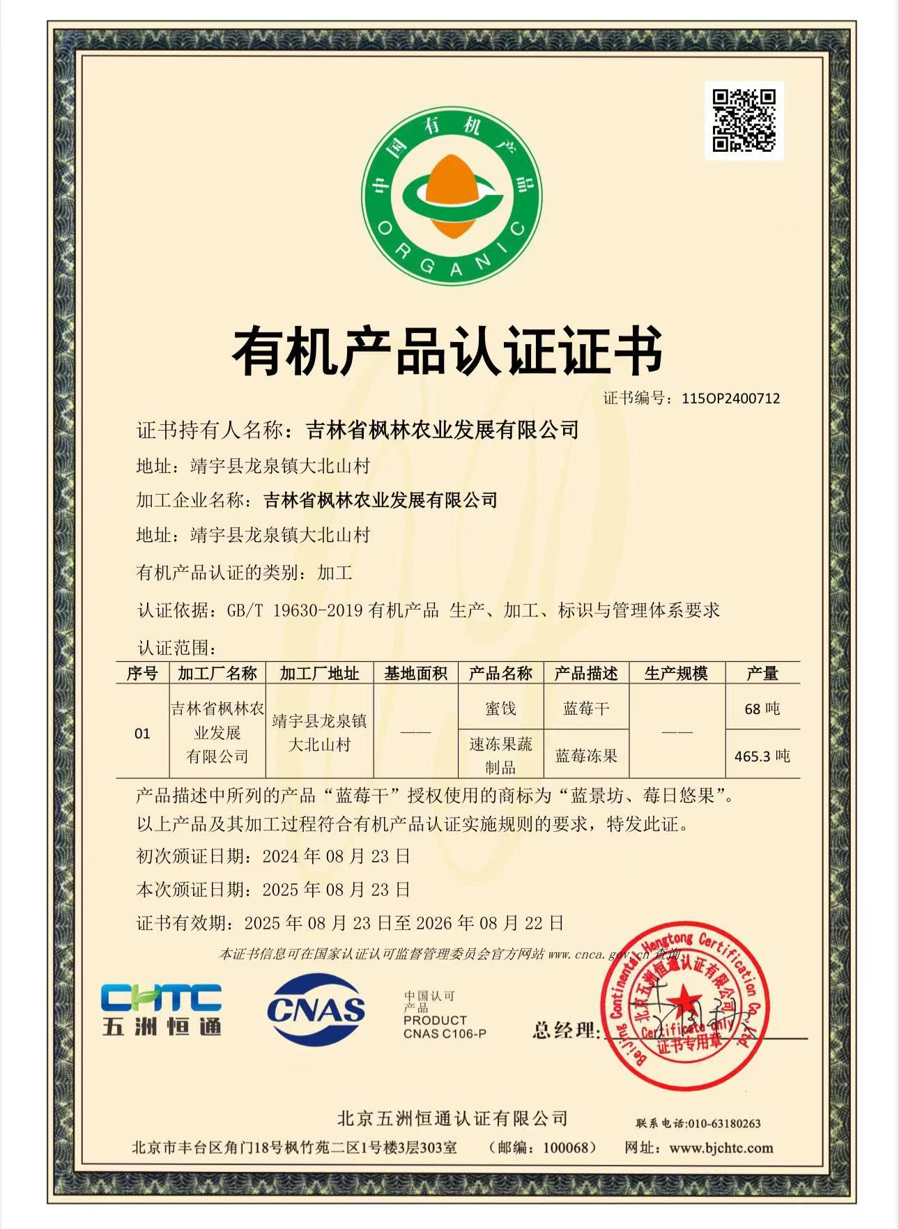 莓日悠果有机果汁蓝莓干有机认证配料干净小包装125g