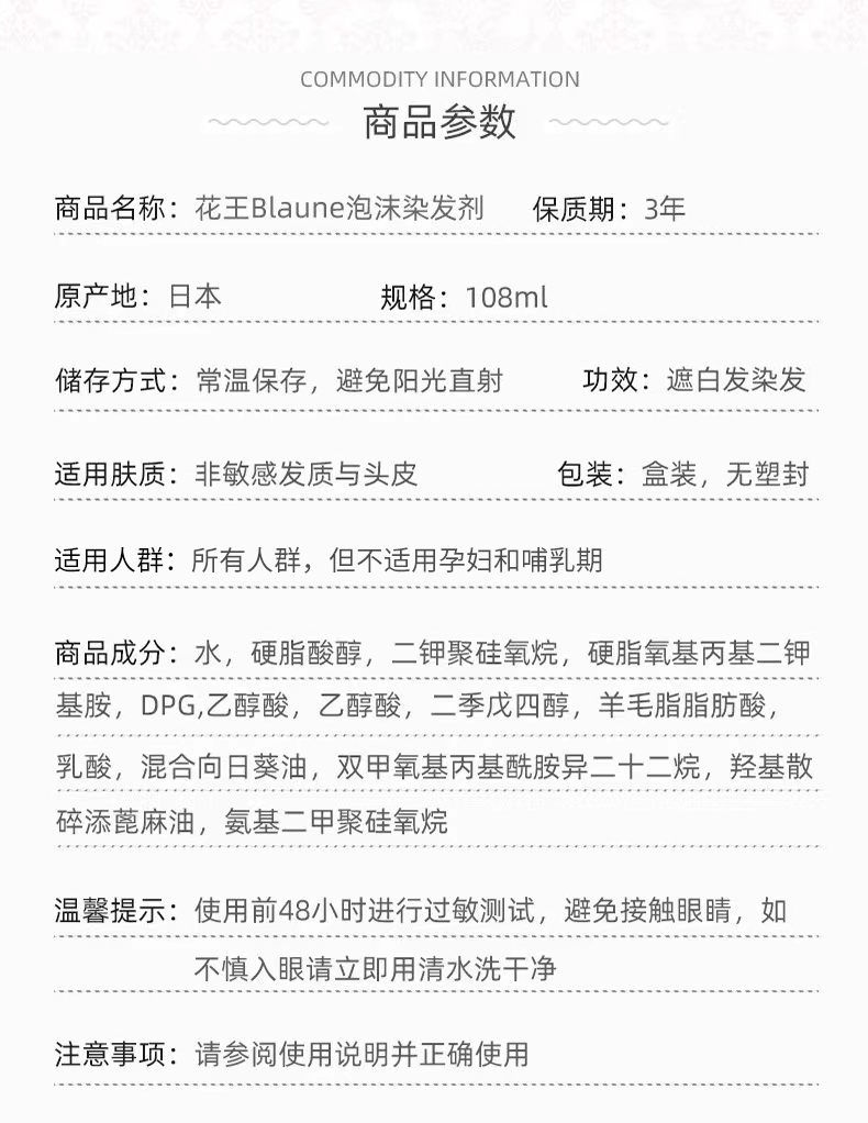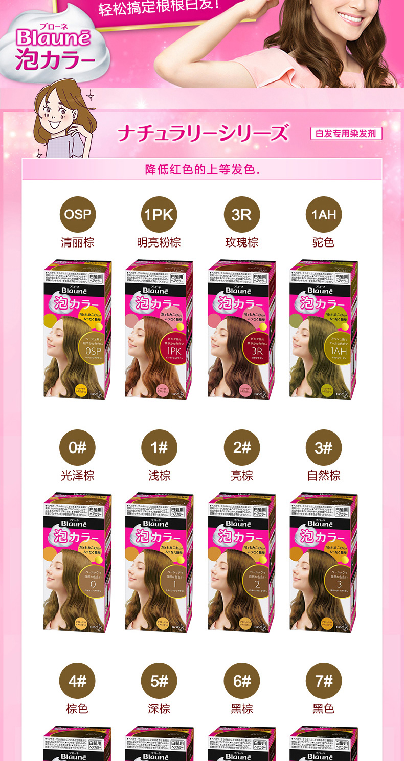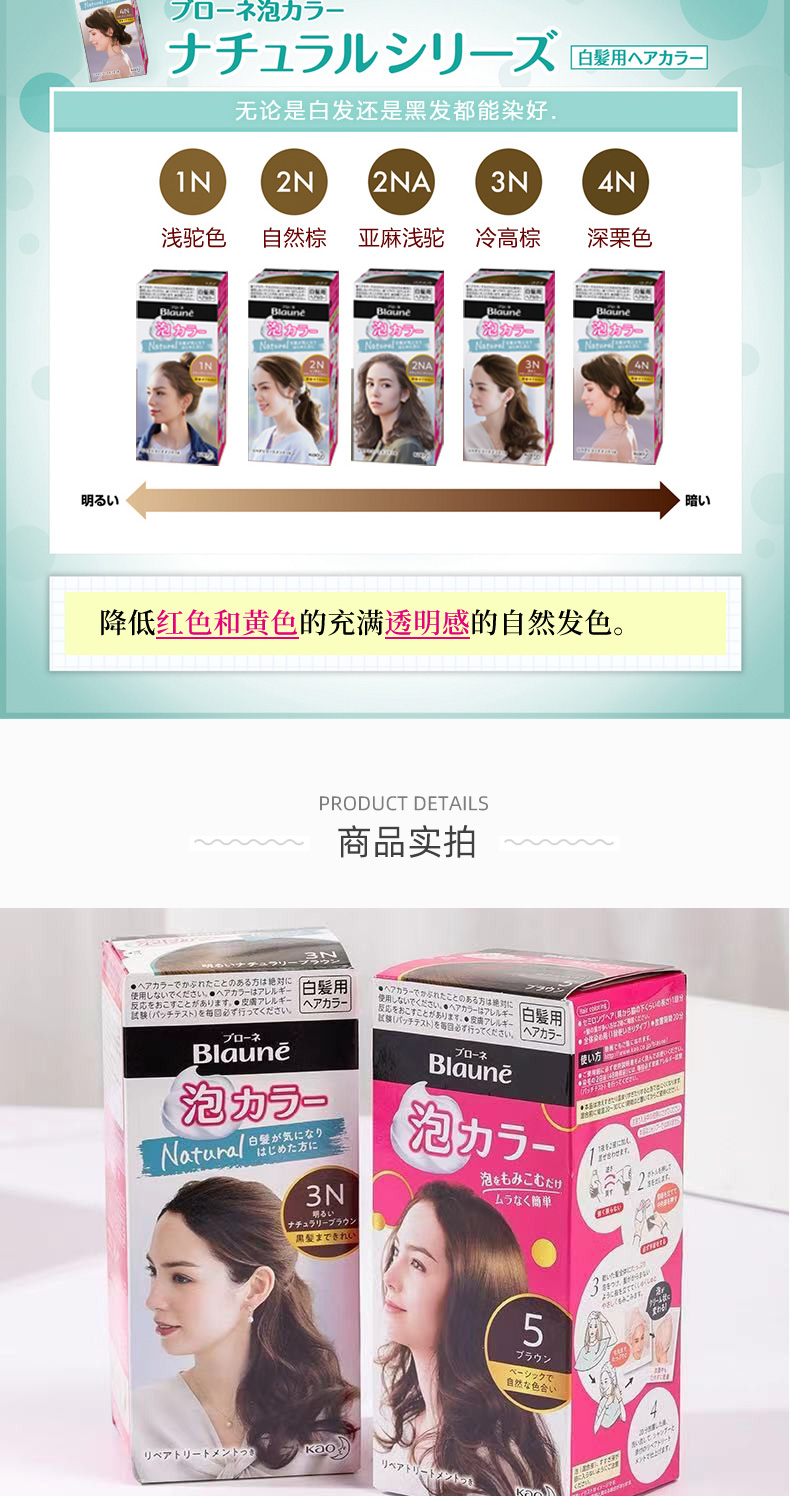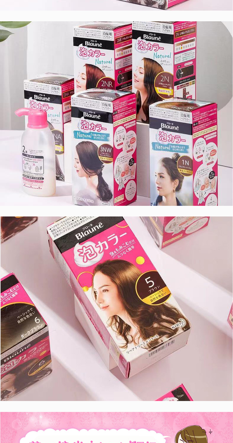 【保税仓】KAO/花王Balune泡沫染发剂遮盖白发1NS天然纯灰108ml/盒